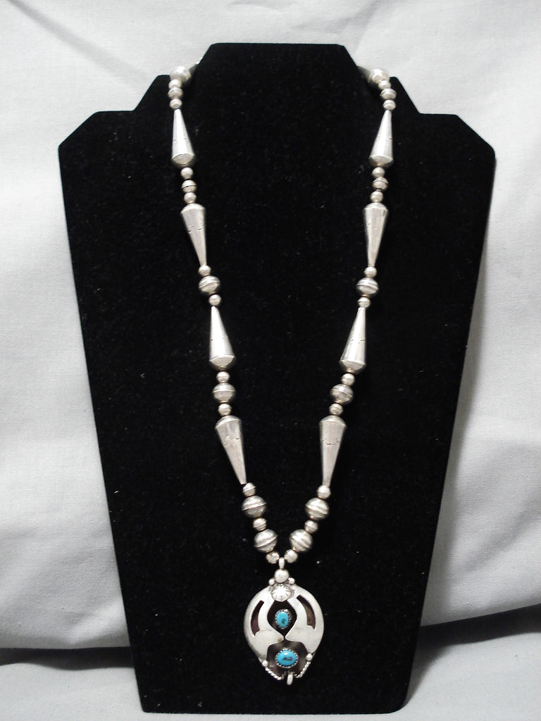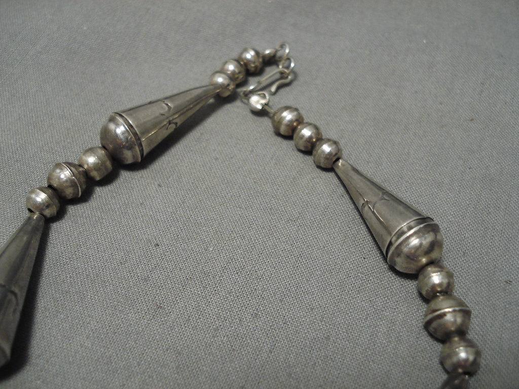 Incredible Vintage Native American Navajo Hand Tooled Cone Sterling Silver Necklace Old