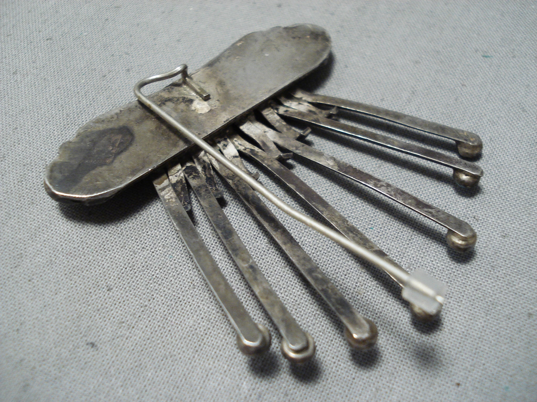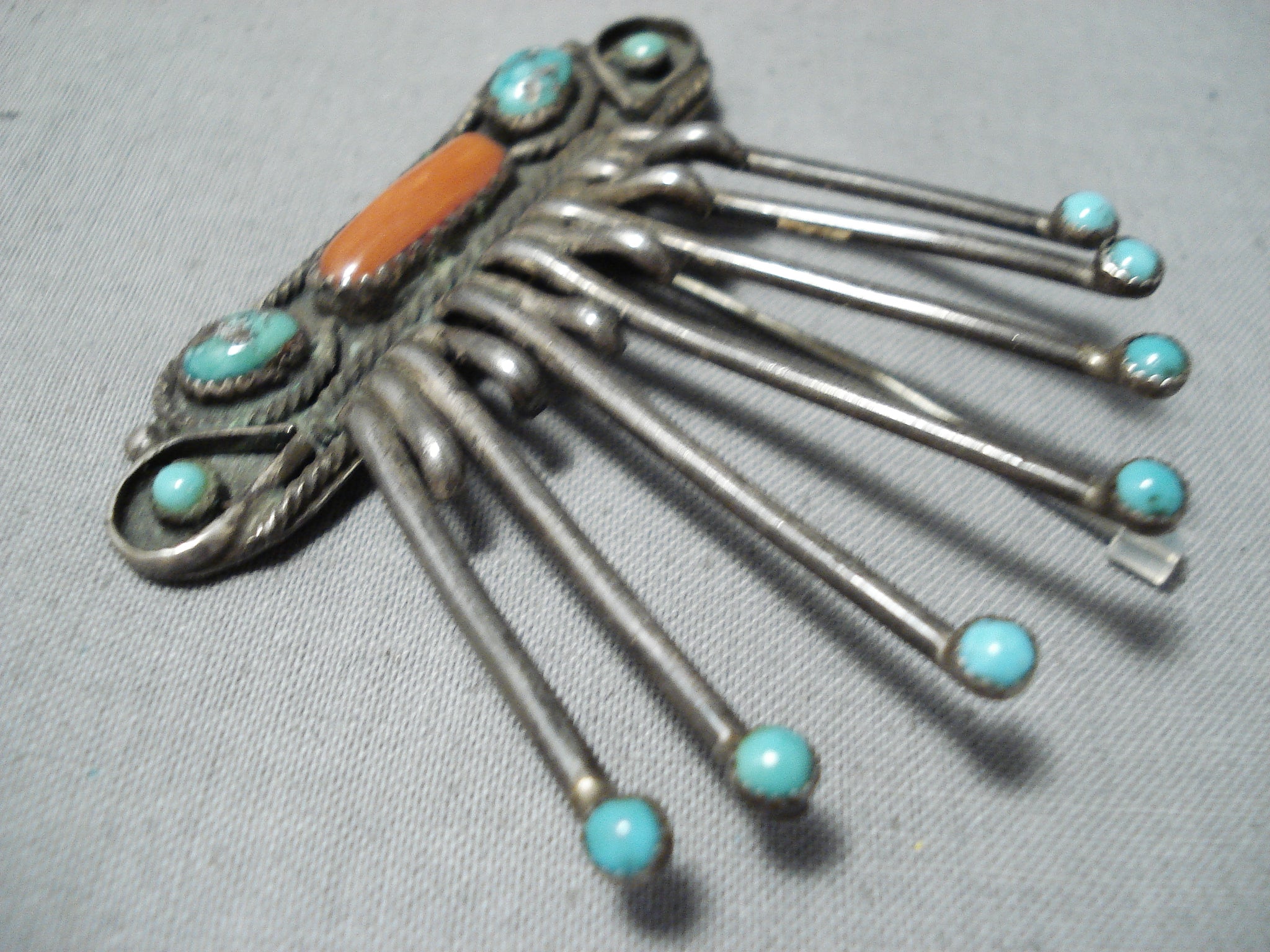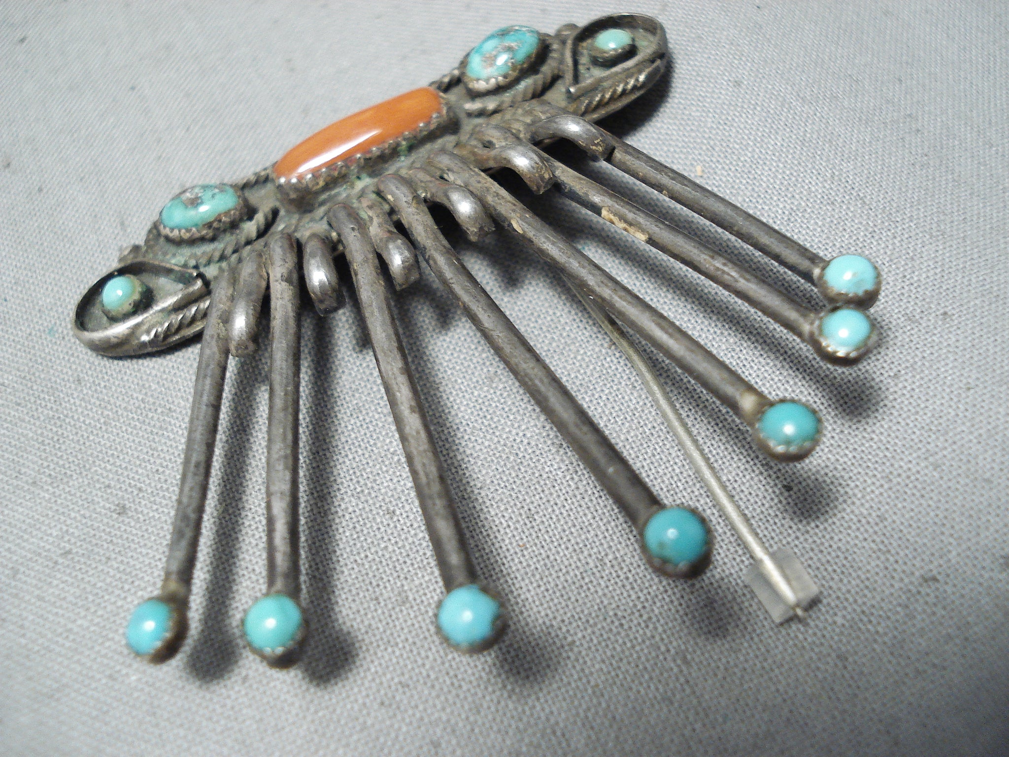 Incredible Vintage Native American Navajo Sleeping Beauty Turquoise Sterling Silver Pin Old