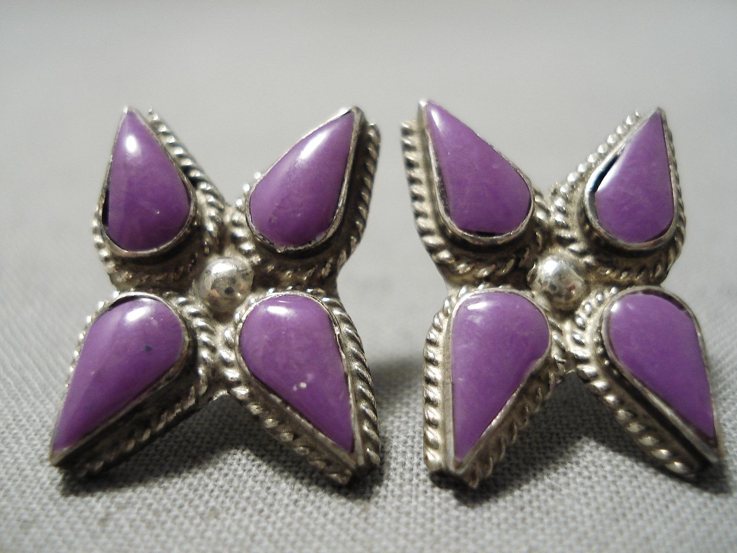 Incredible Vintage Native American Navajo Sugulite Steling Silver Earrings