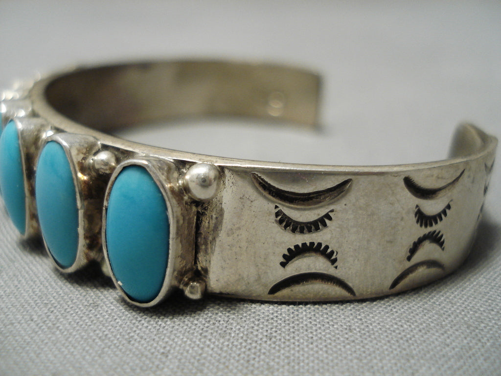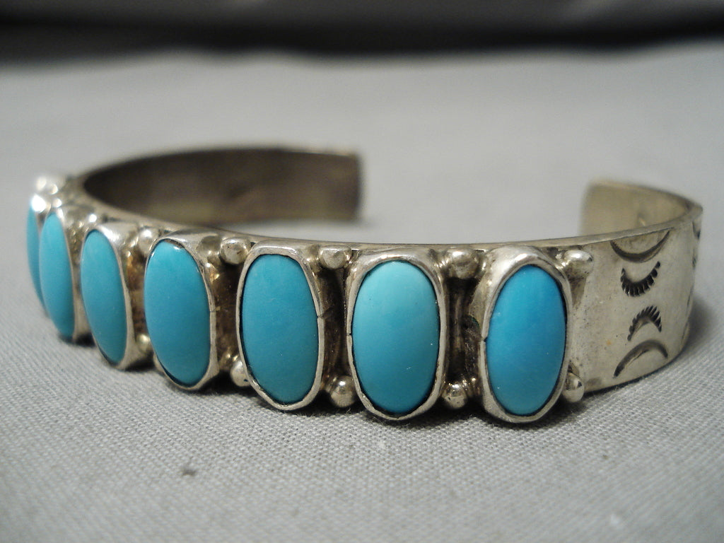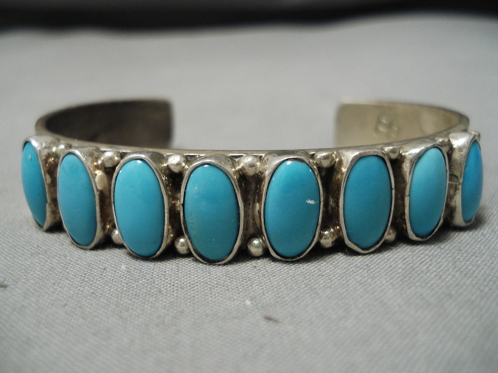 Incredible Vintage Native American Zuni Easter Blue Turquoise Sterling Silver Bracelet