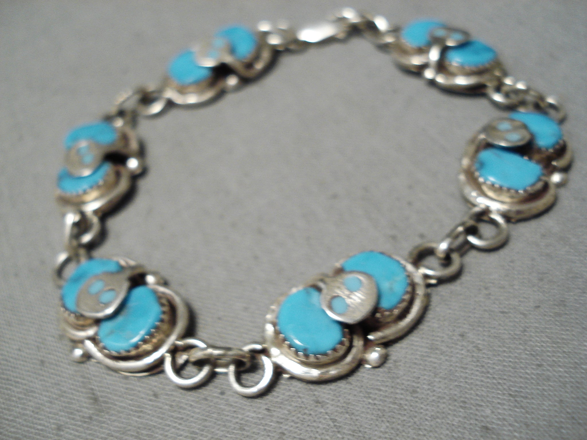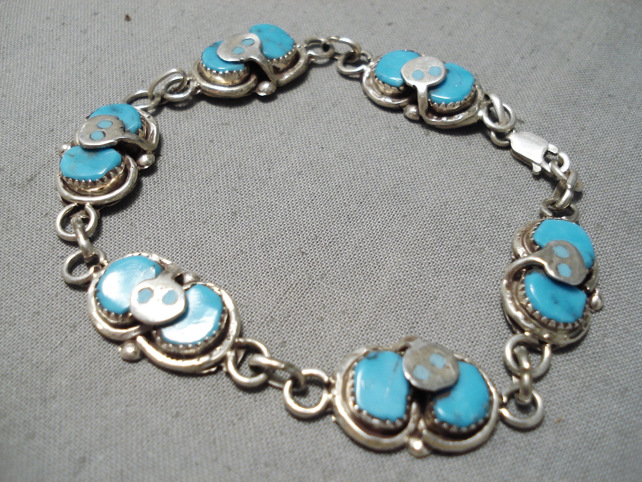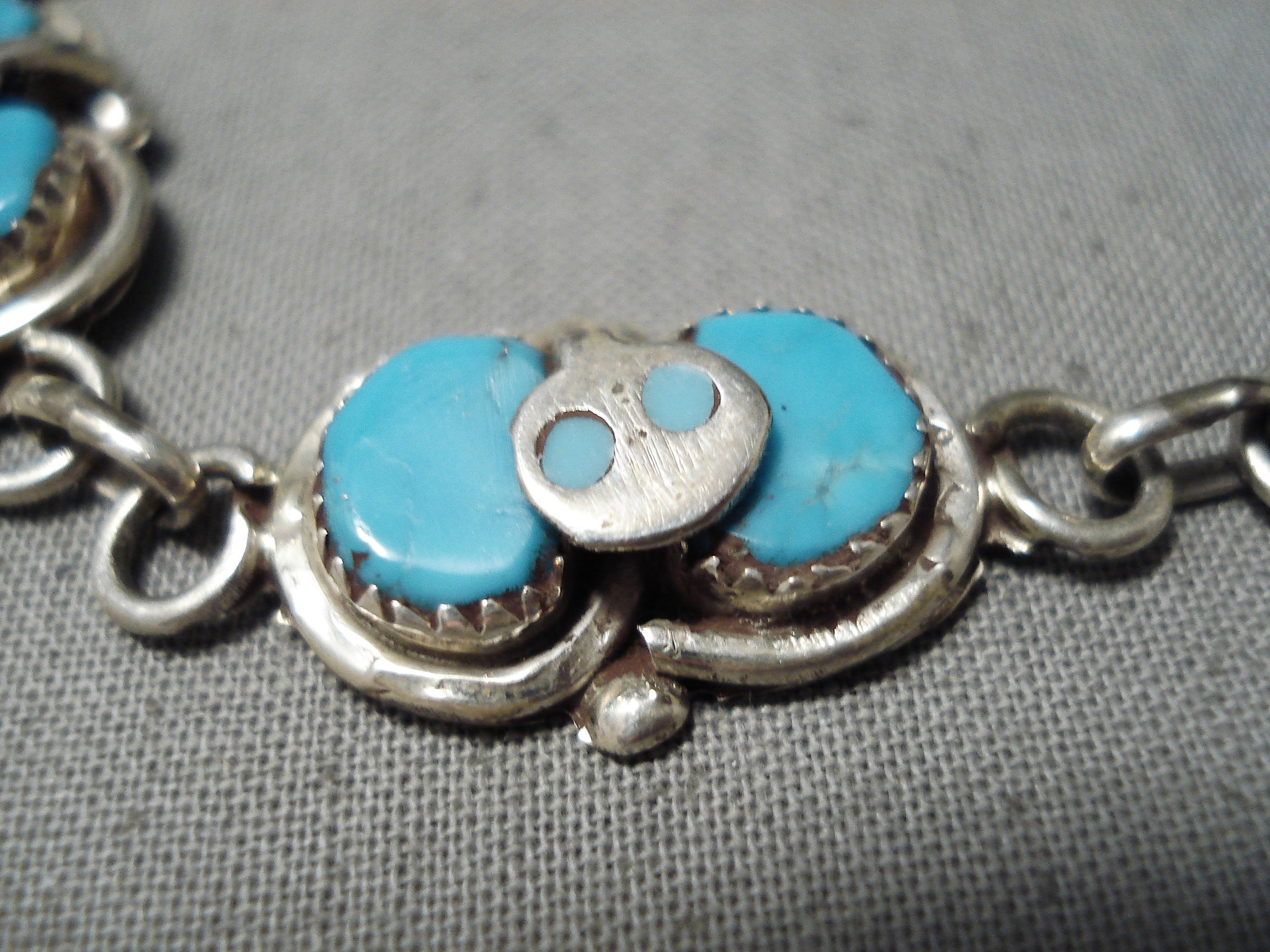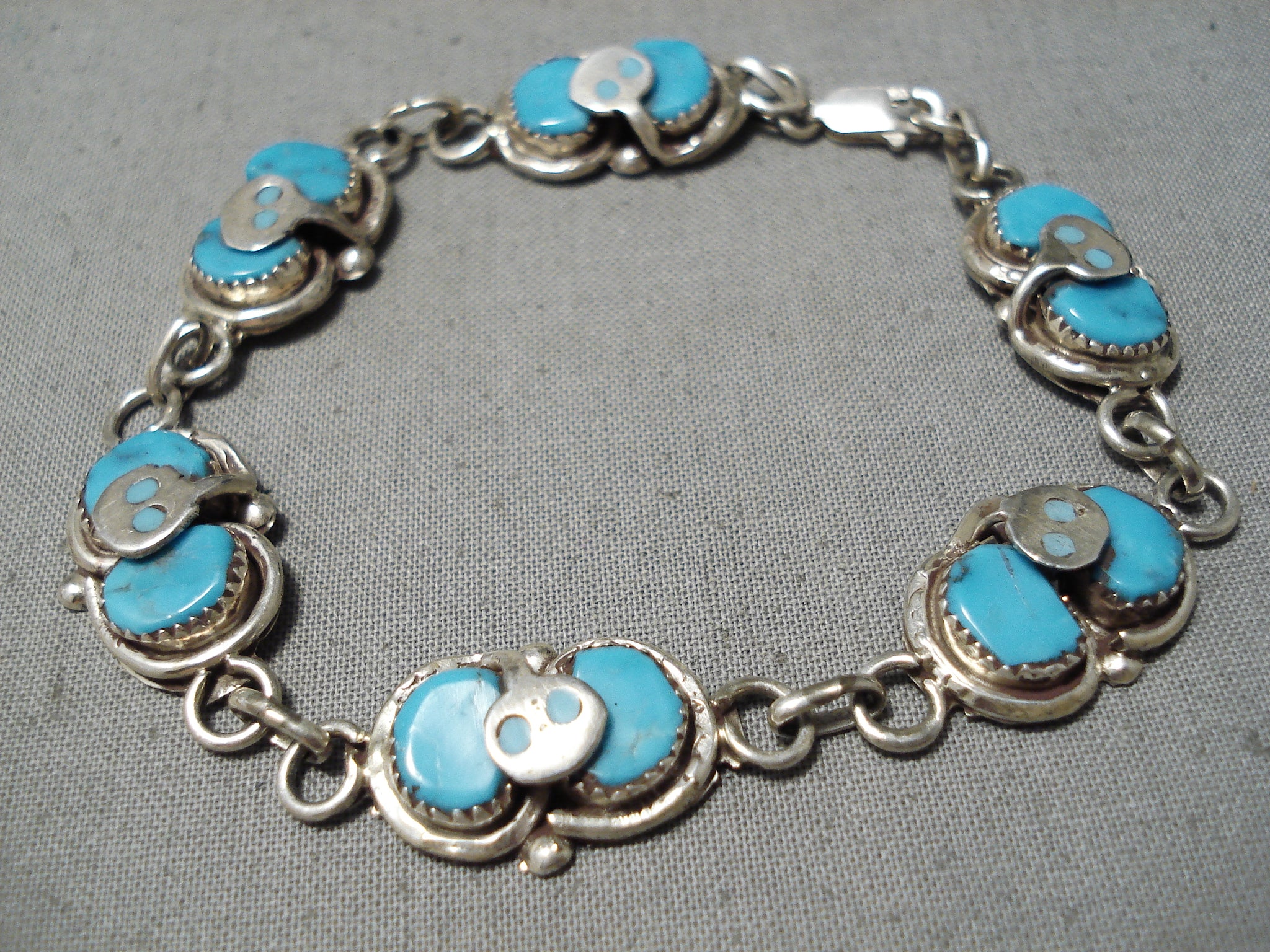 Incredible Vintage Native American Zuni Kingman Turquoise Sterling Silver Snake Bracelet Old