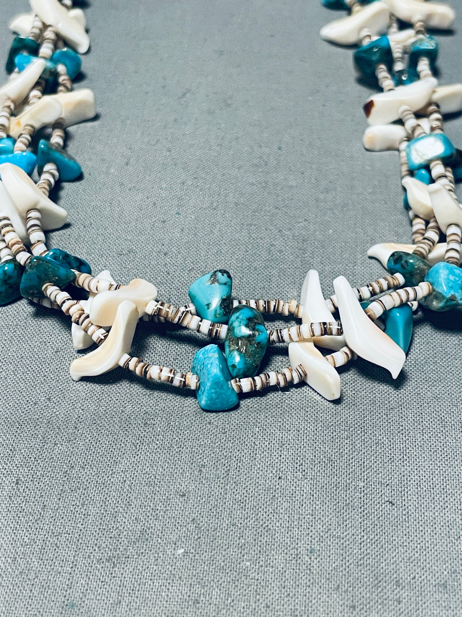 Incredible Vintage Native American Zuni Turquoise Animal Sterling Silver Heishi Necklace