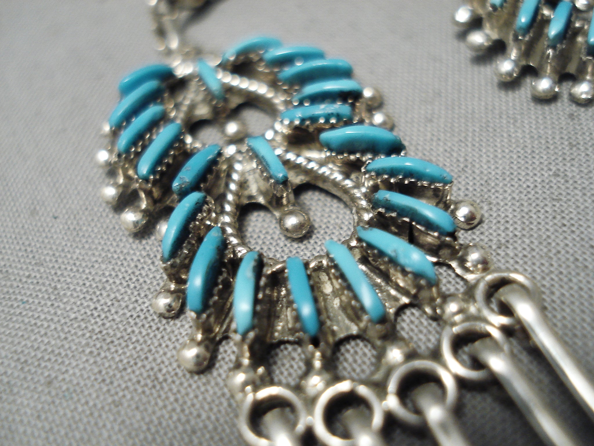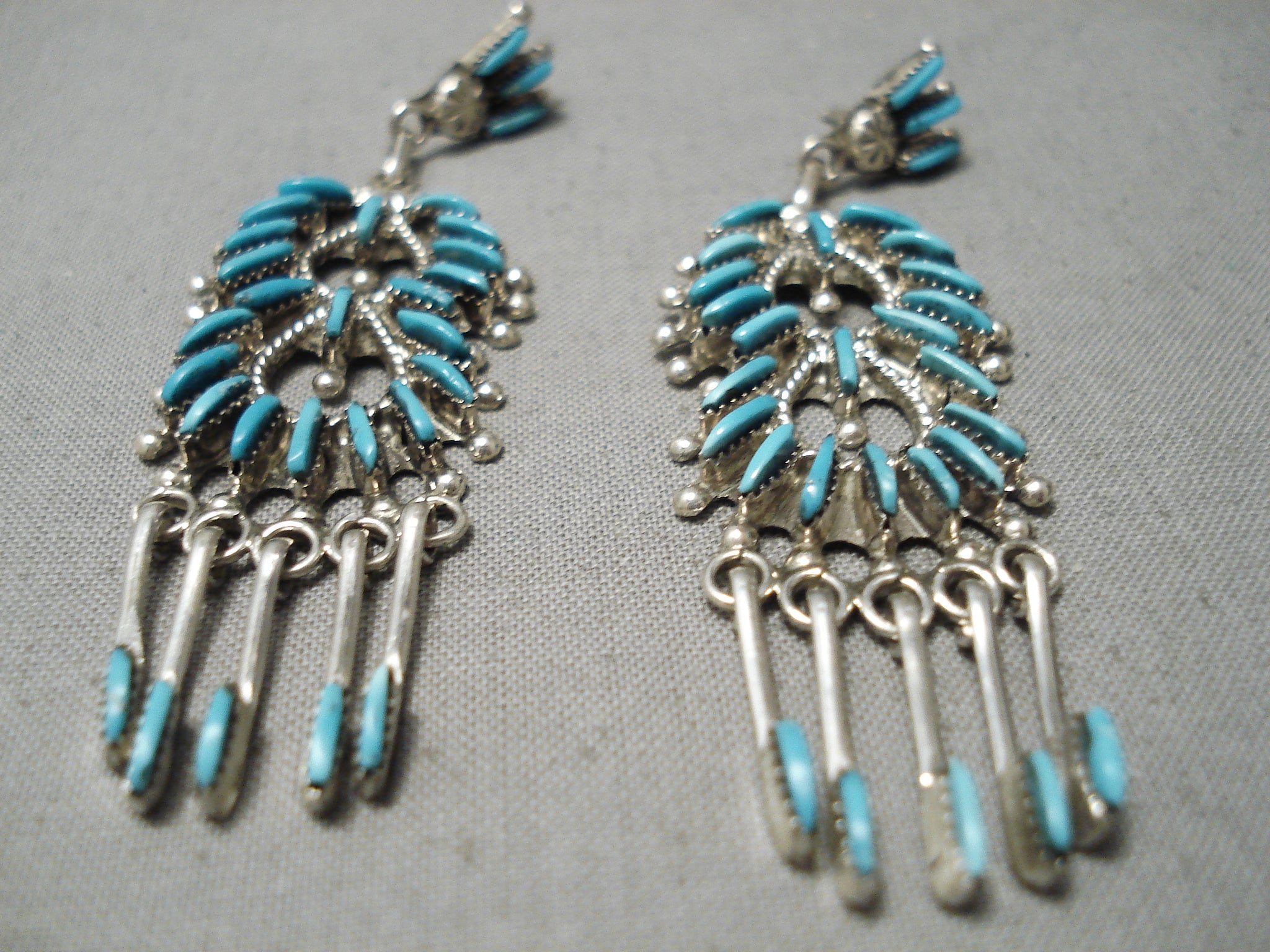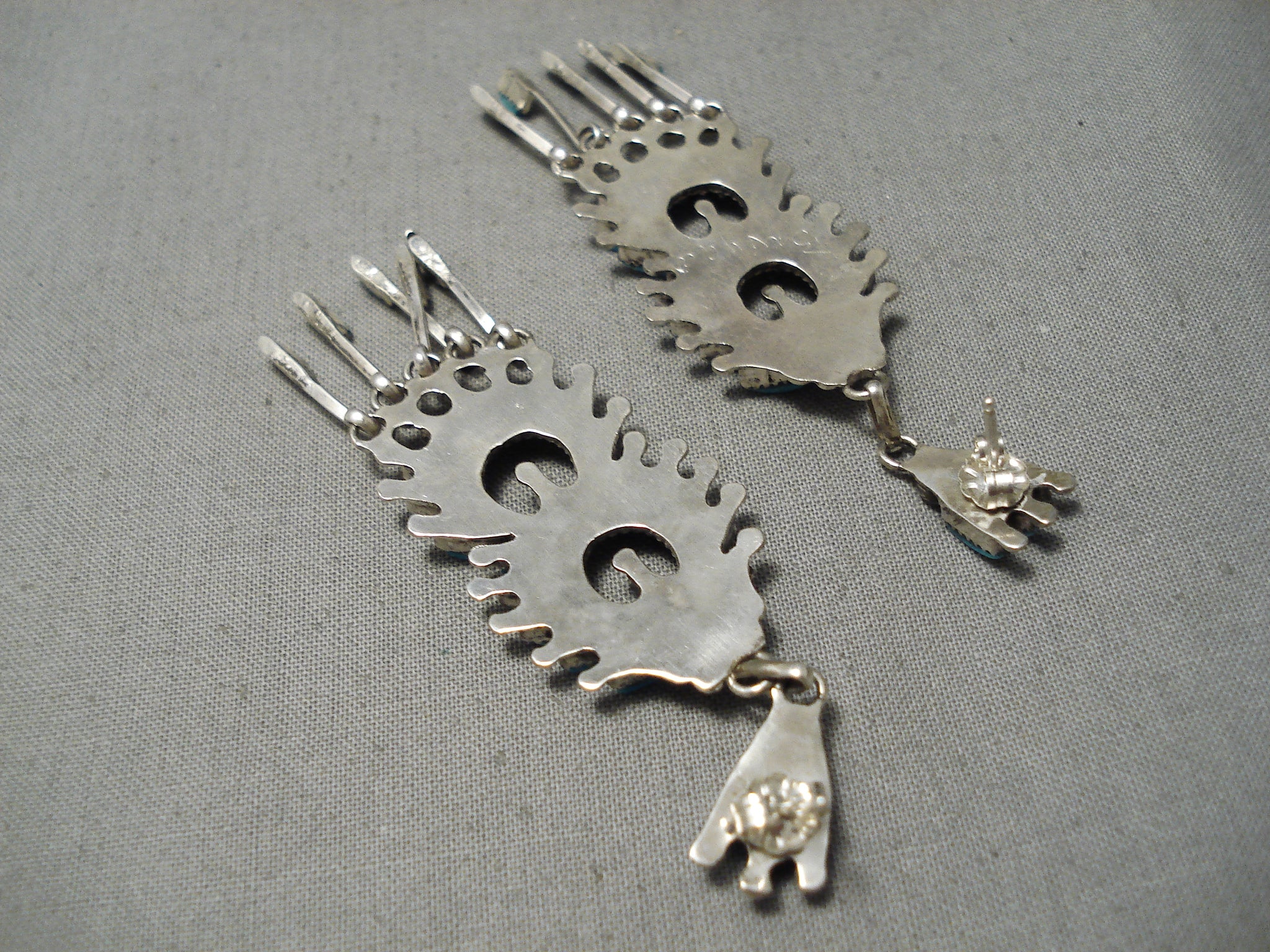 Incredible Vintage Zuni Native American Long Turquoise Sterling Silver Earrings