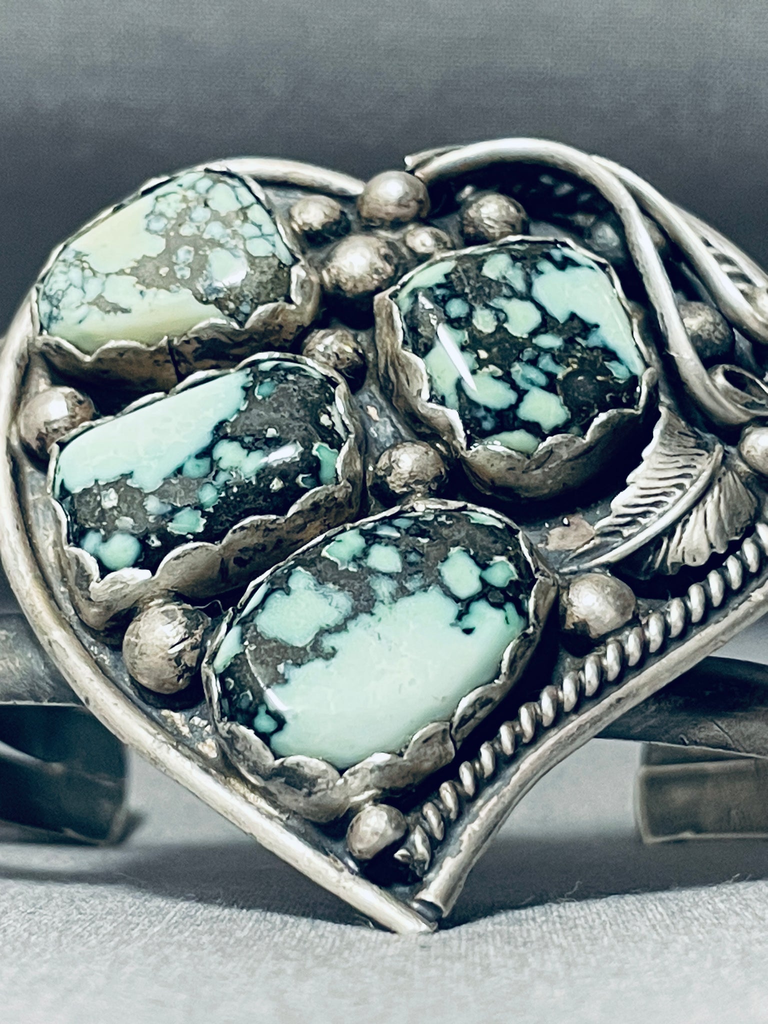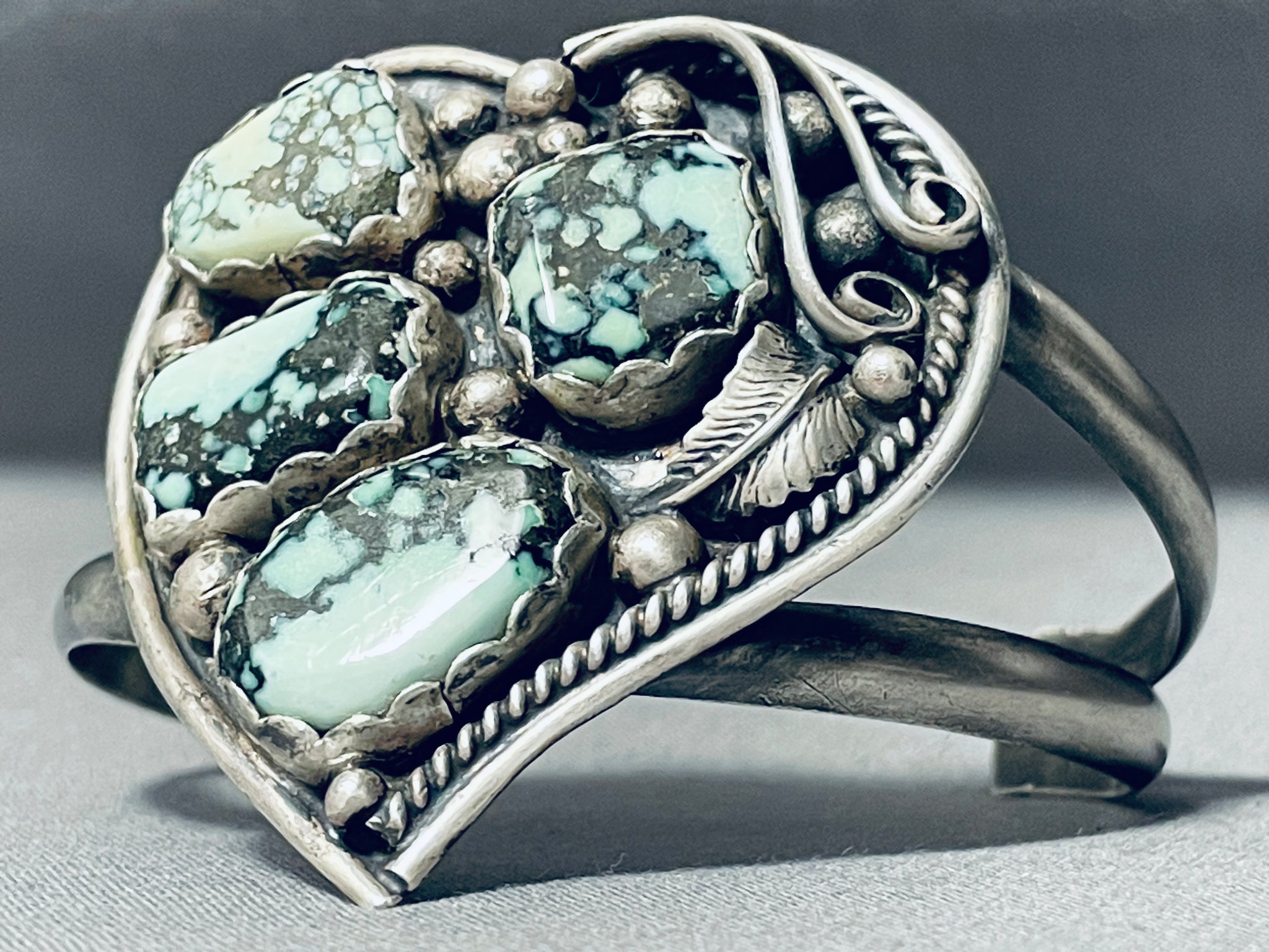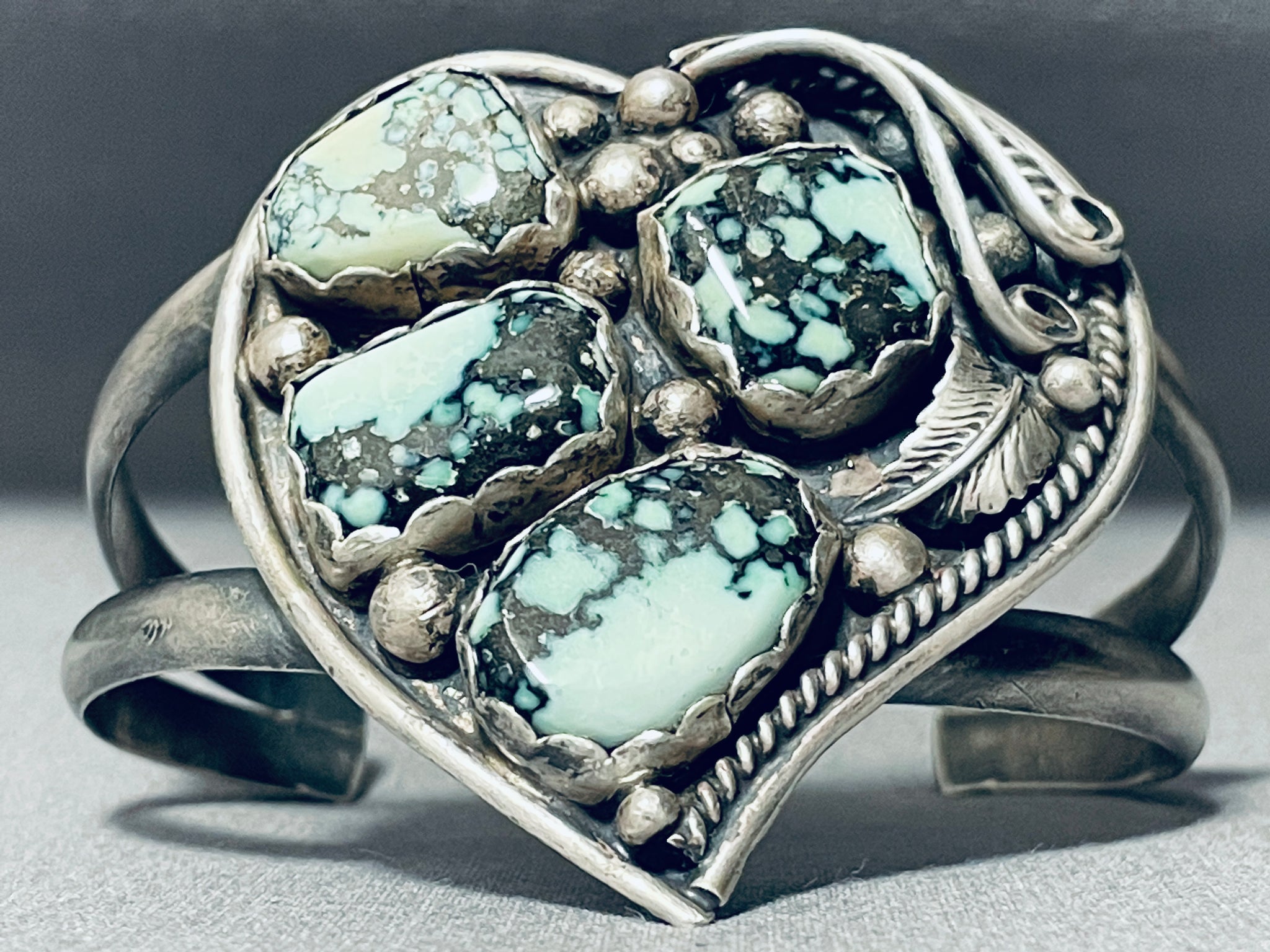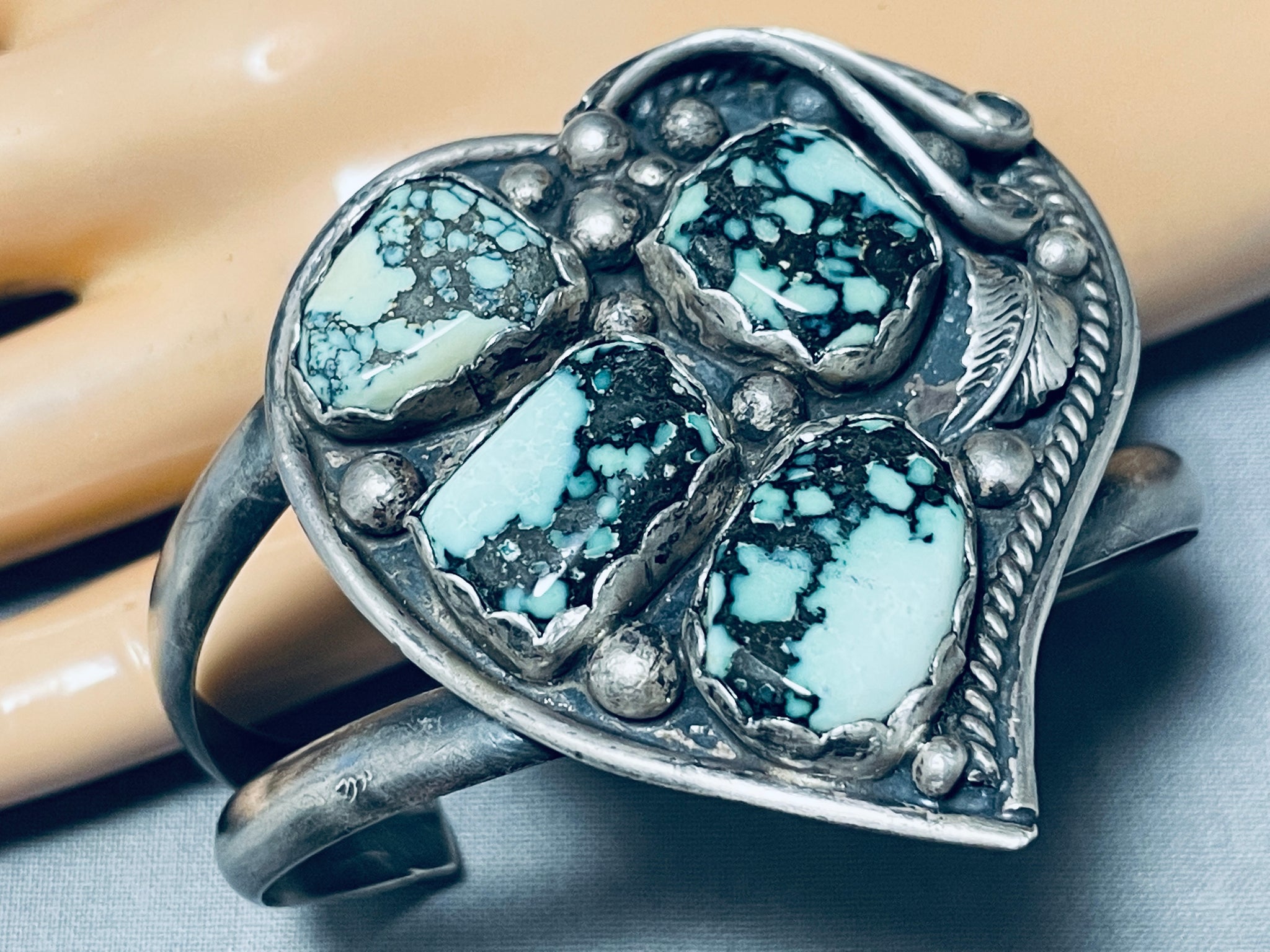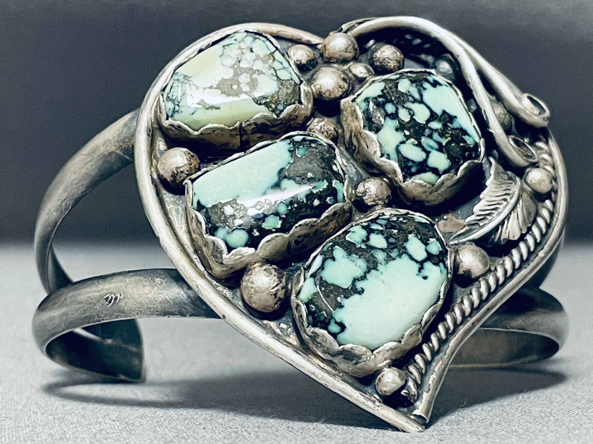 Incredibly Rare Vintage Native American Navajo Turquoise Heart Sterling Silver Bracelet Old