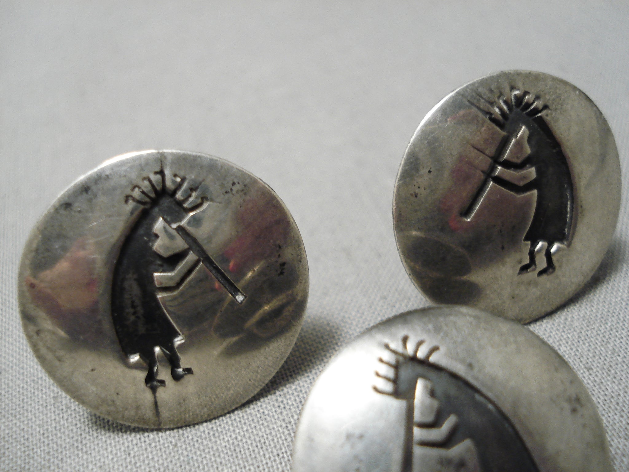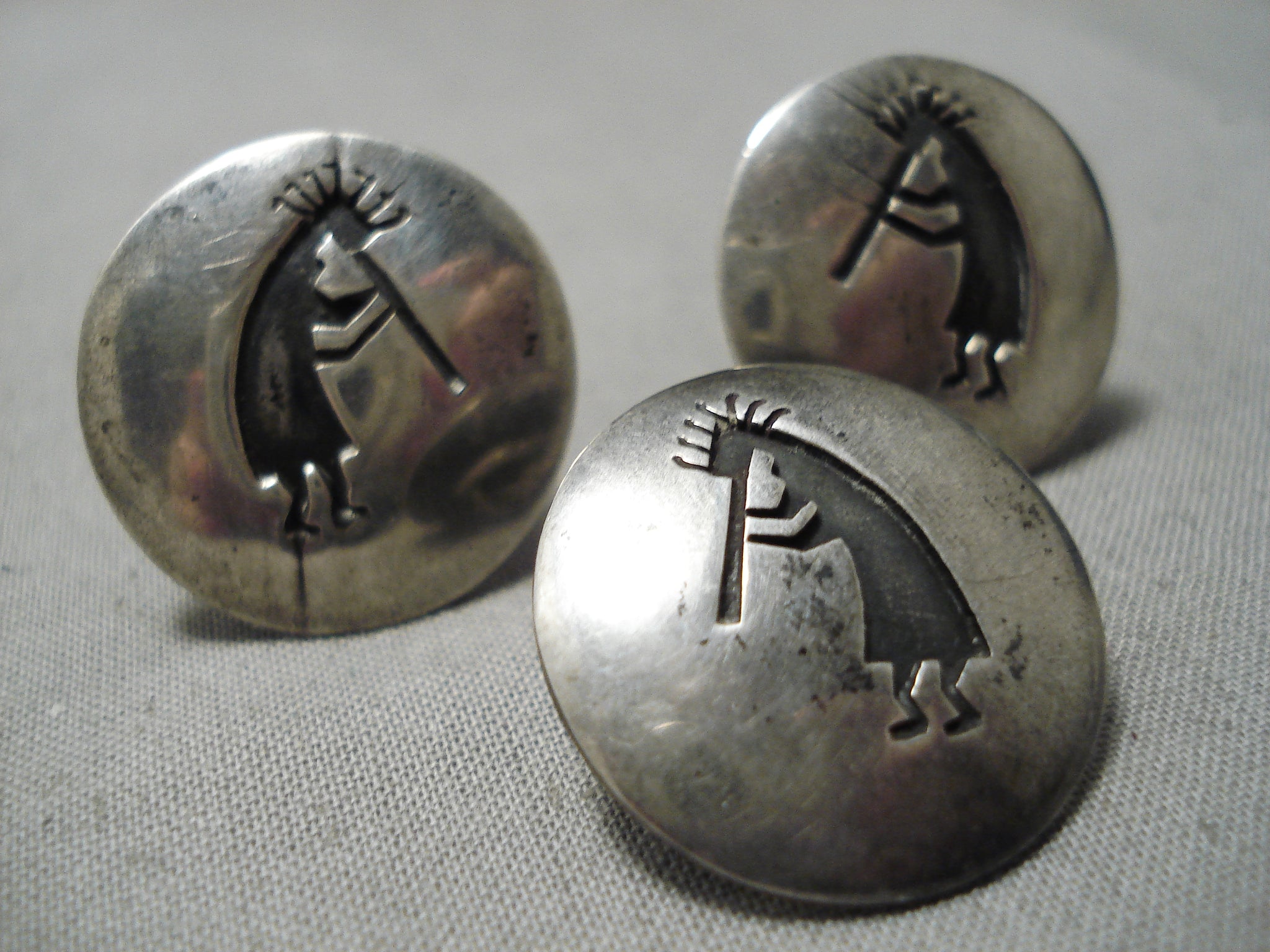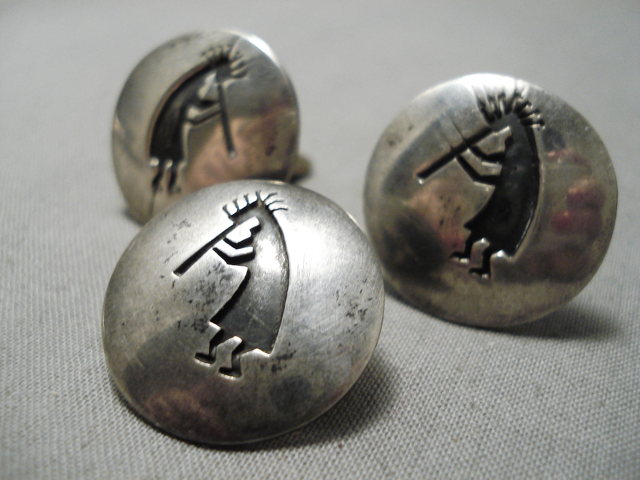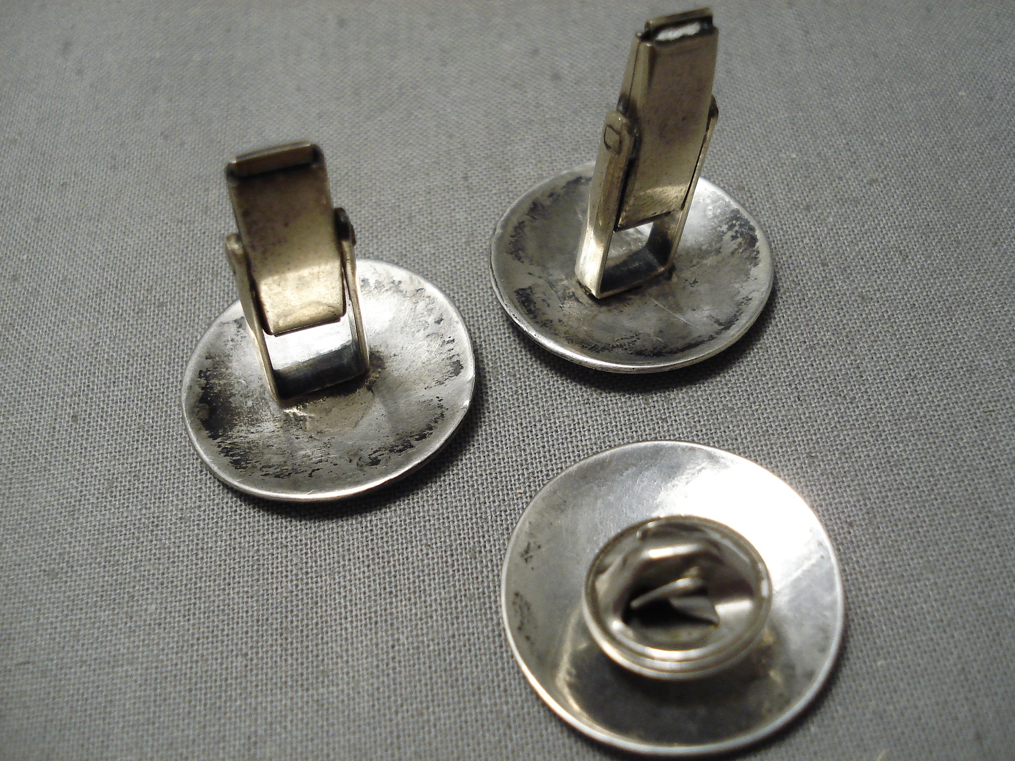 Inctricate And Old Vintage Native American Navajo Sterling Silver Cufflinks Pin