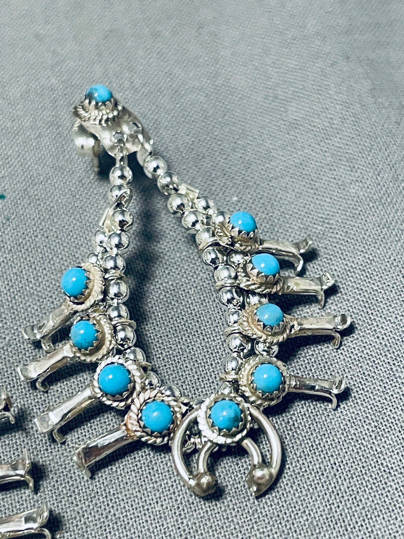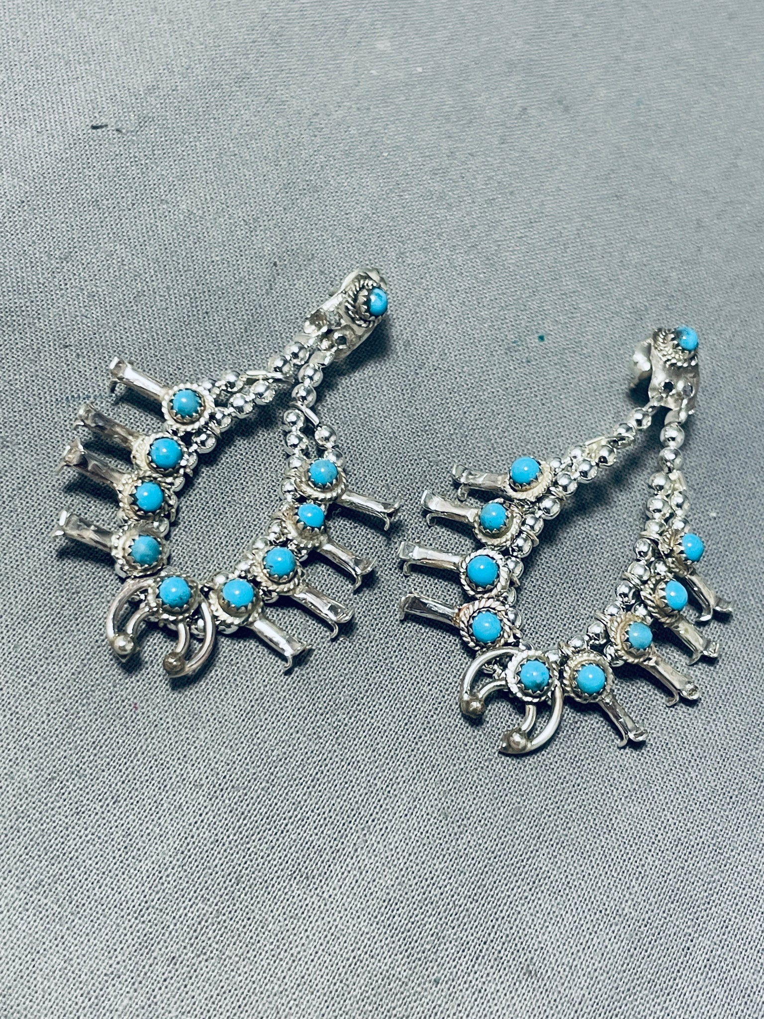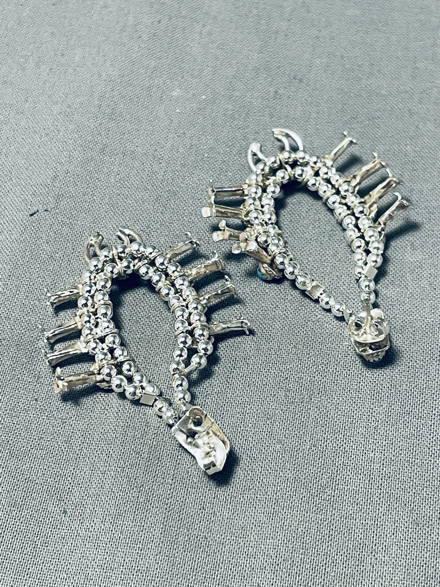 Interesting Native American Navajo Turquoise Sterling Silver Squash Earrings
