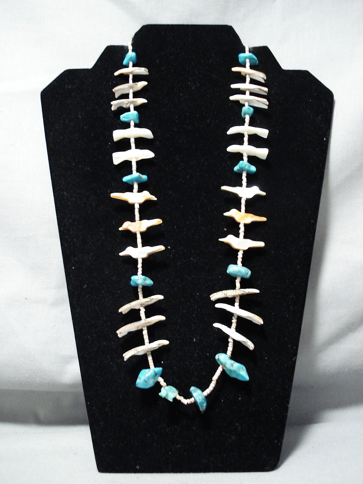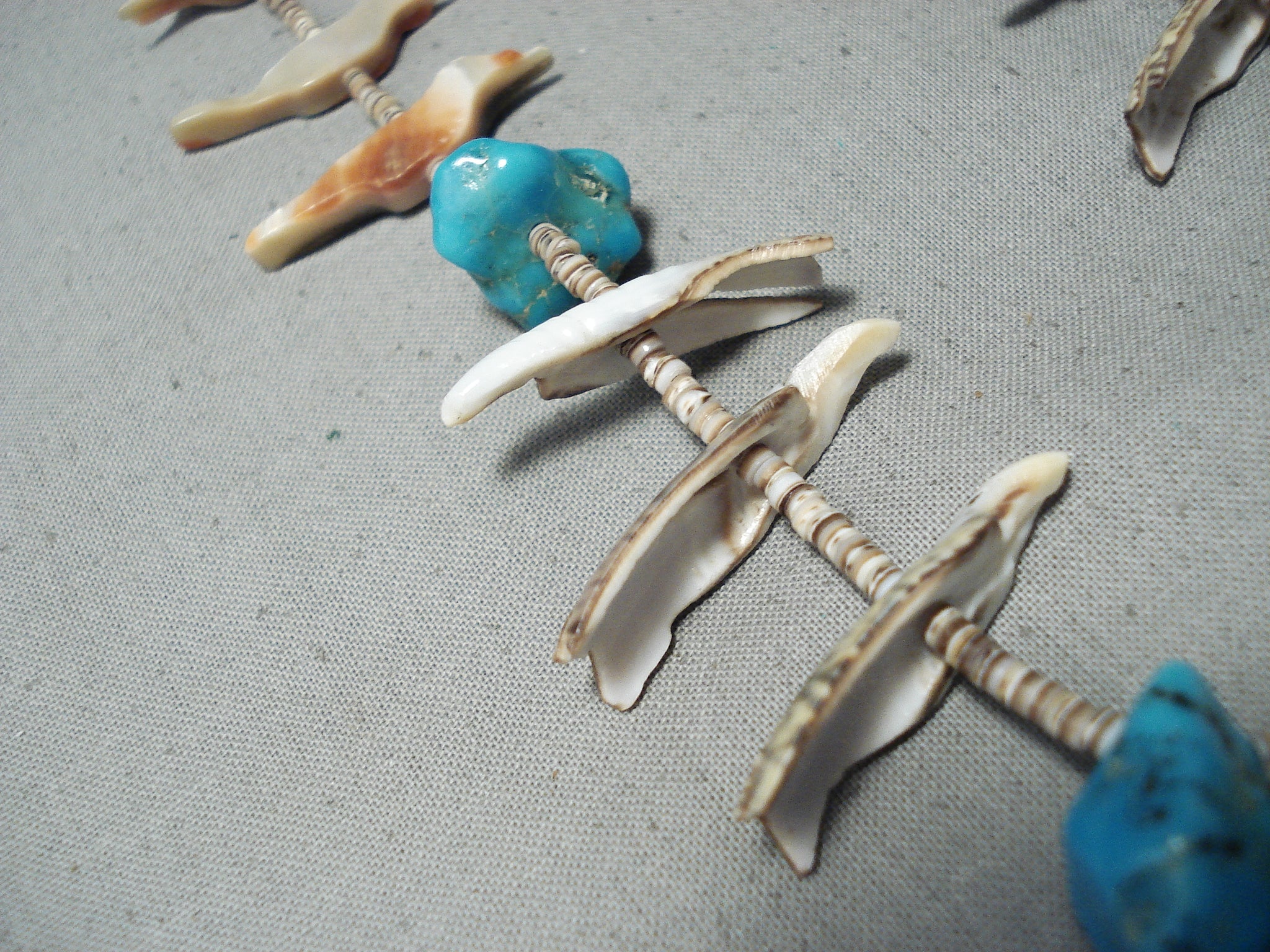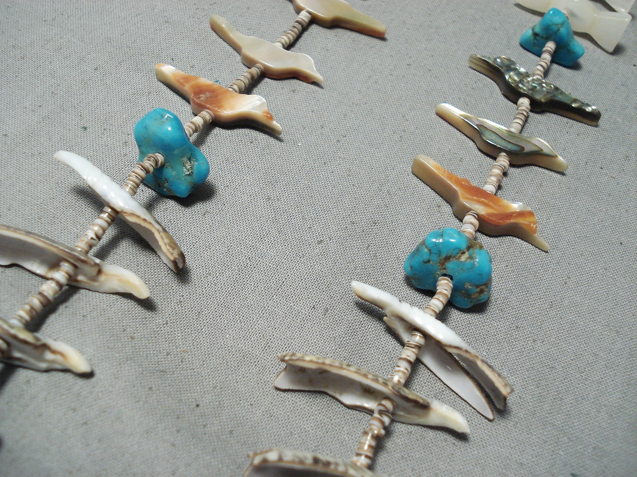 Interesting Vintage Native American Zuni Turquoise Fetish Sterling Silver Necklace Old