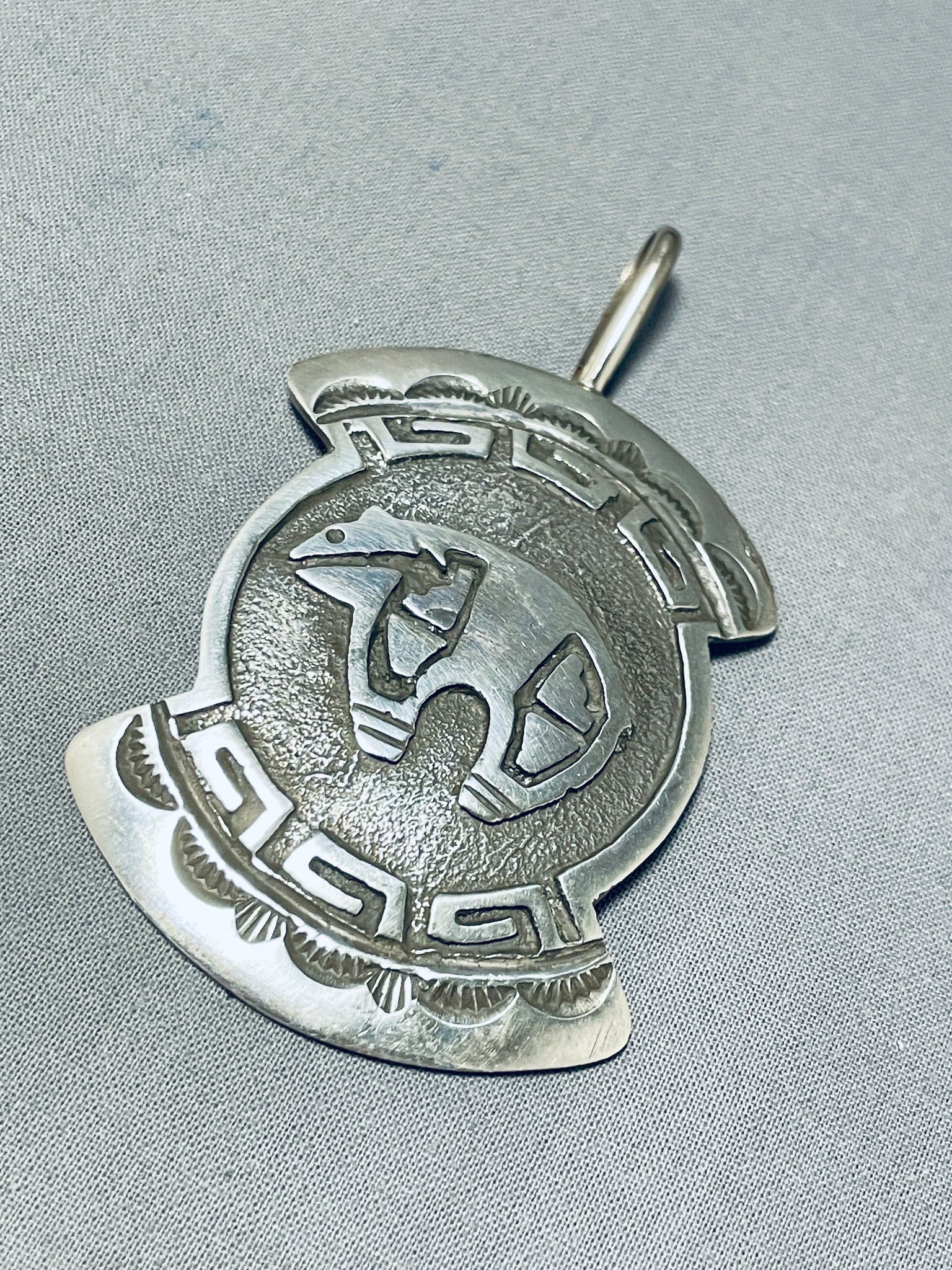 Interesting Vintage Signed Native American Navajo Sterling Silver Bear Pendant