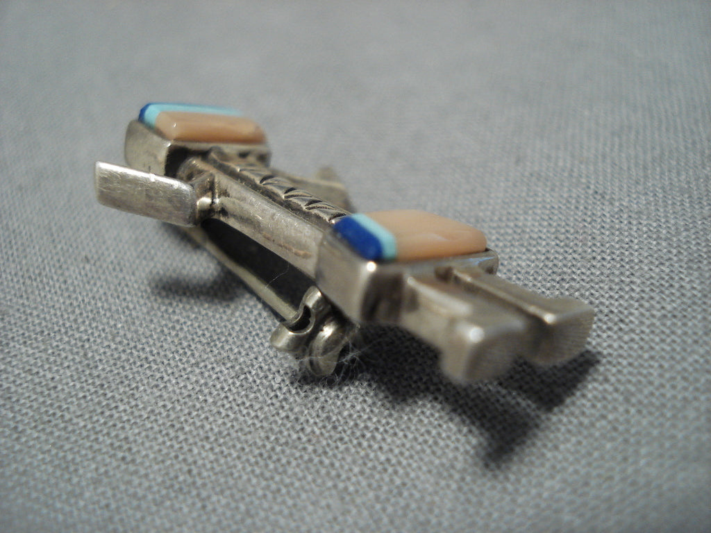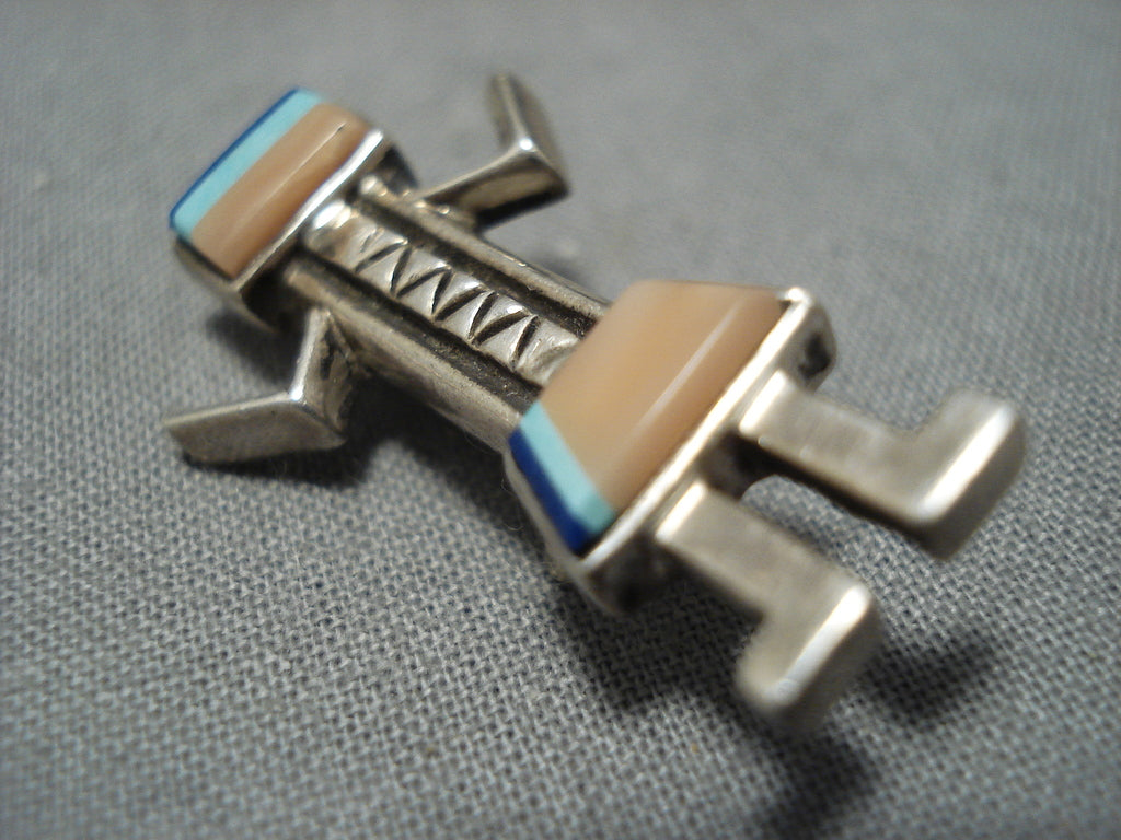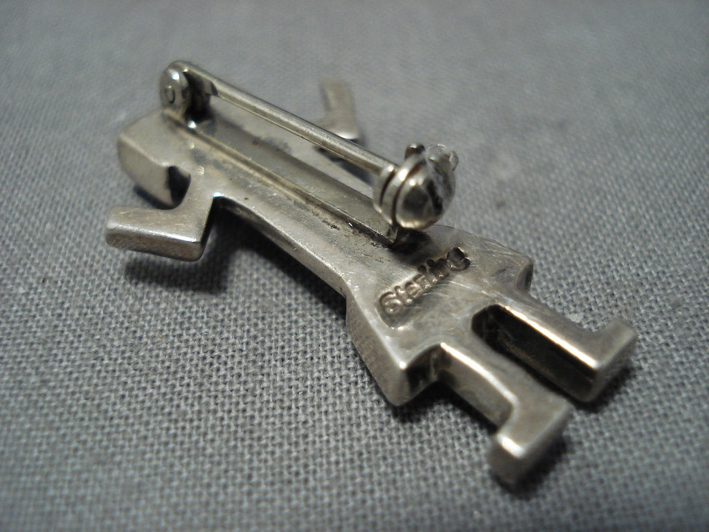 Intrciate!! Vintage Navajo Kachina Turquoise Native American Sterling Silver Pin