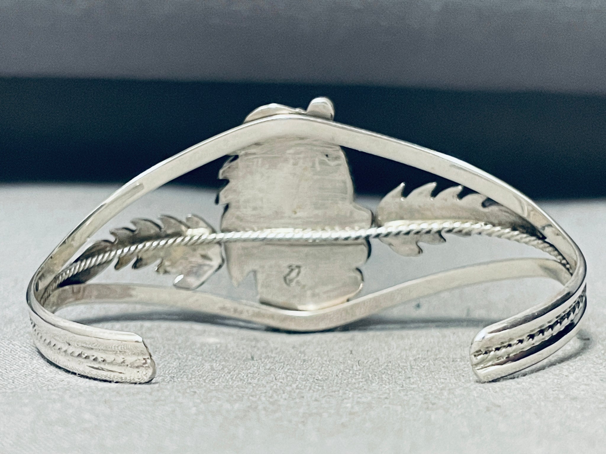 Intricate Leaf Vintage Native American Navajo Royston Turquoise Sterling Silver Bracelet