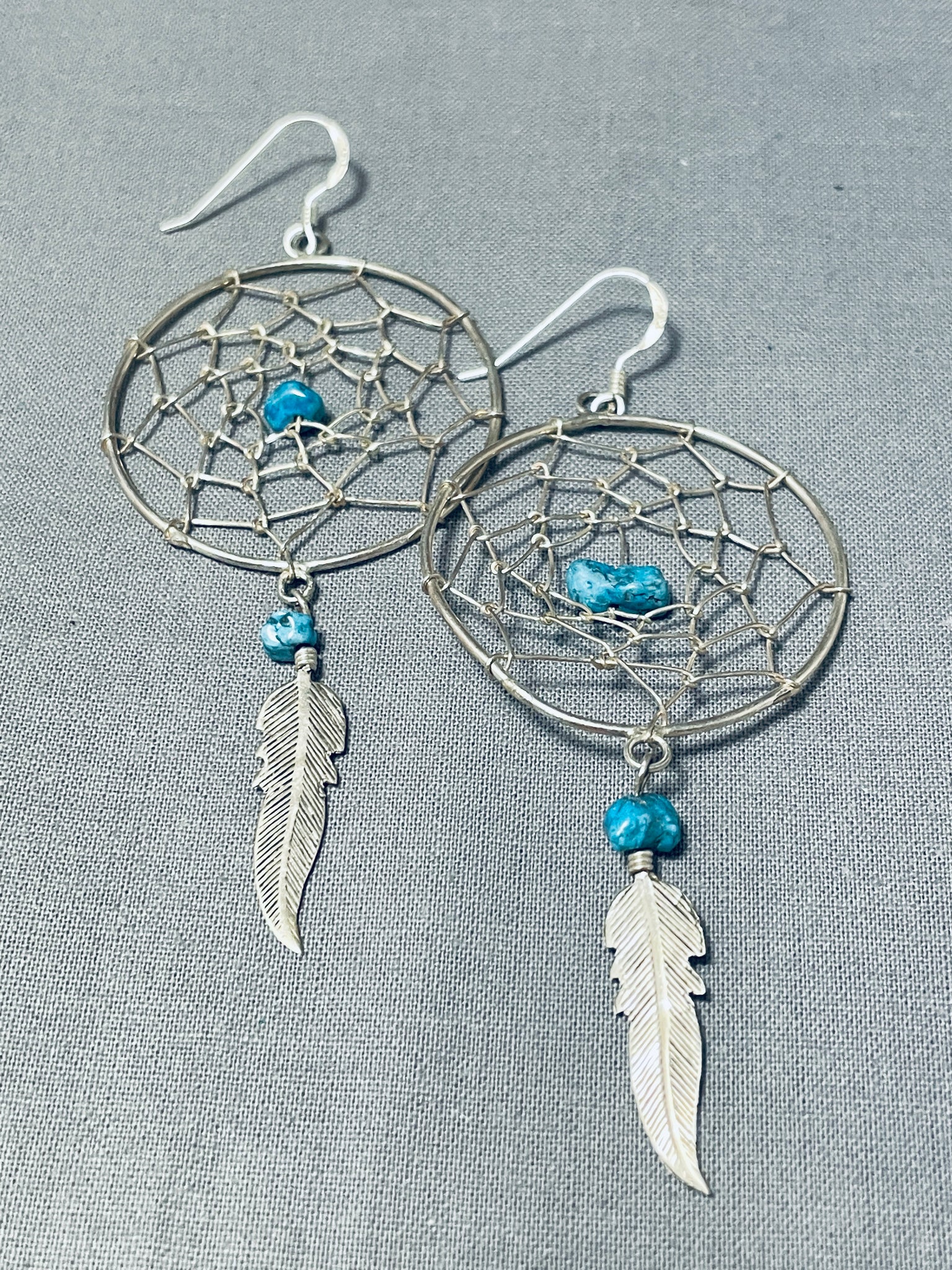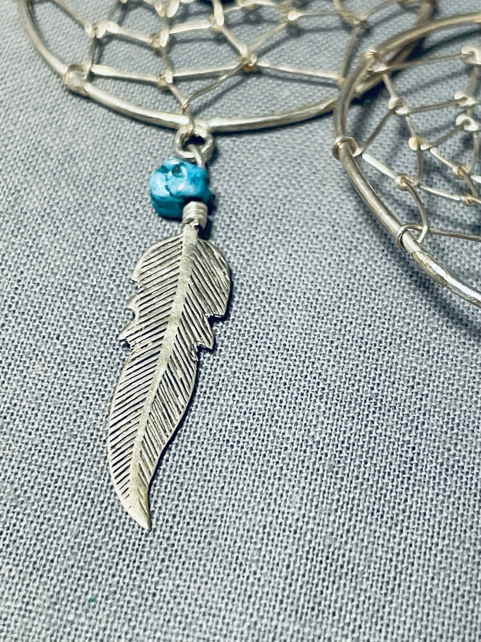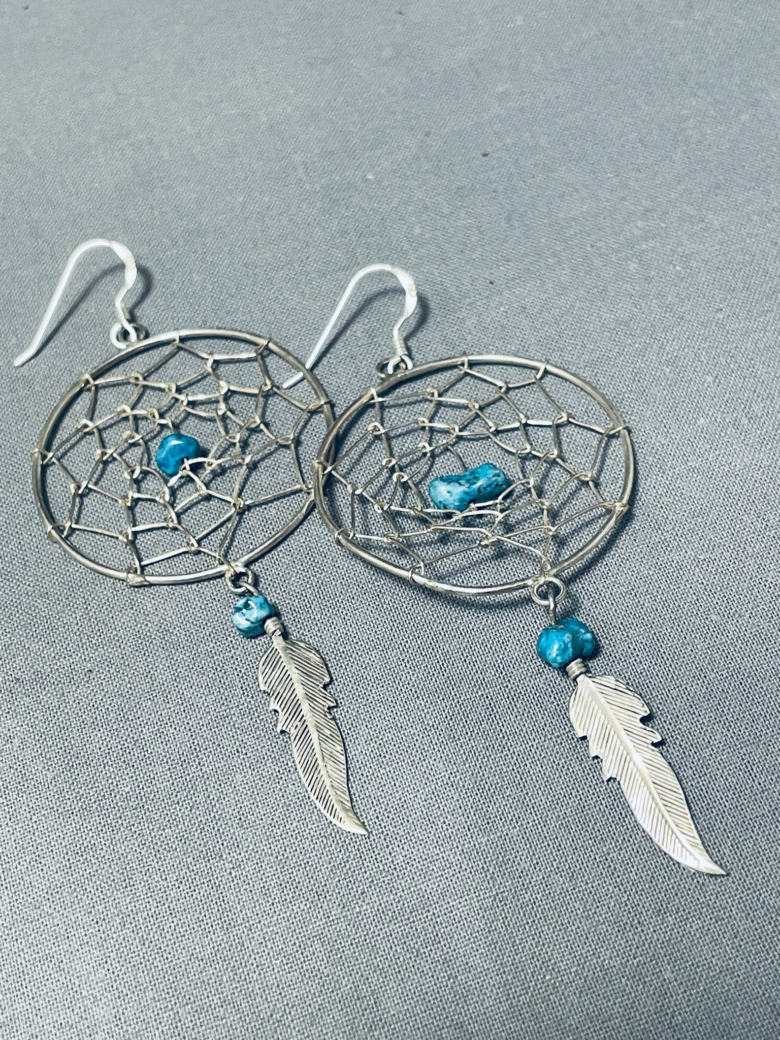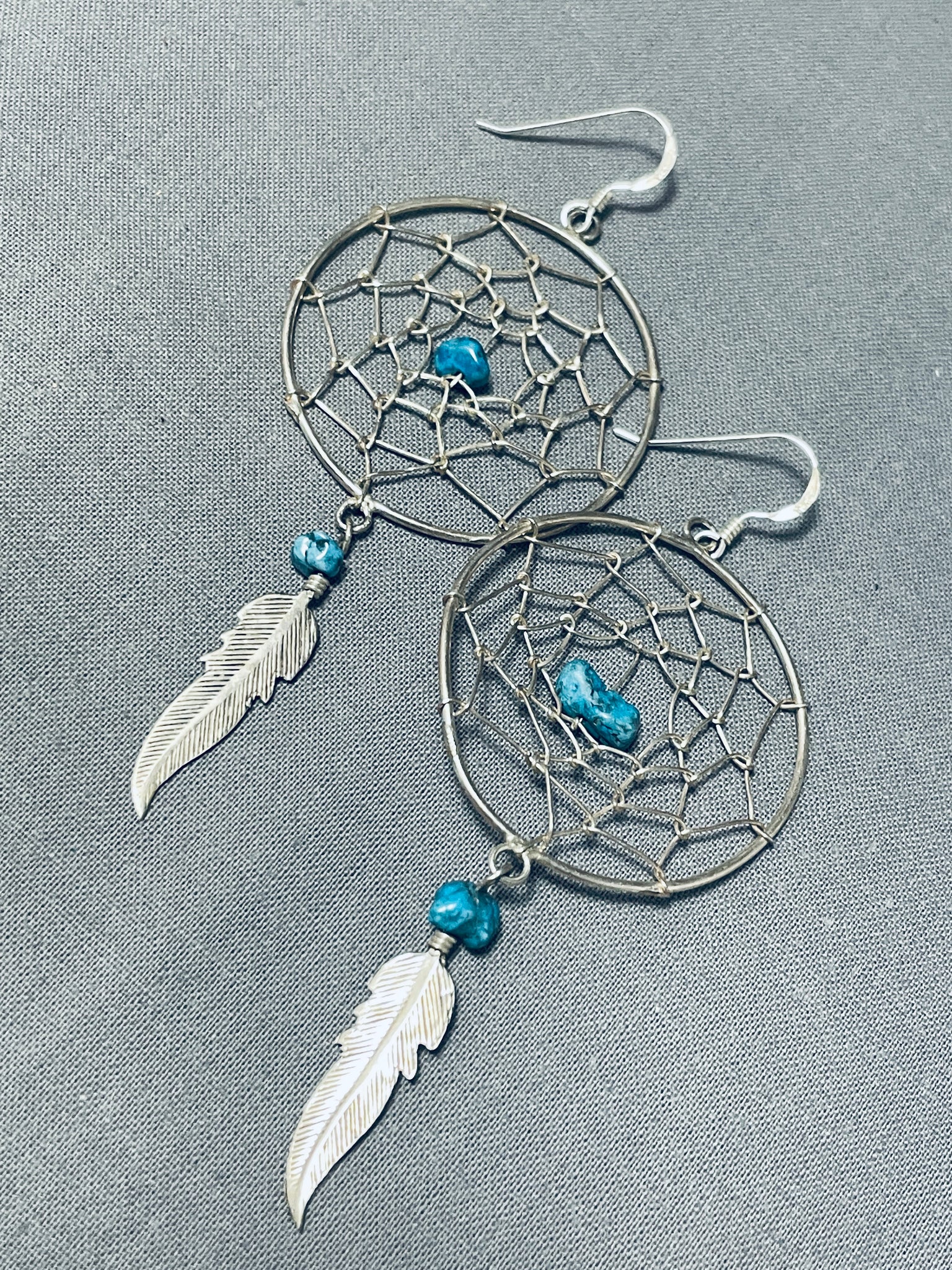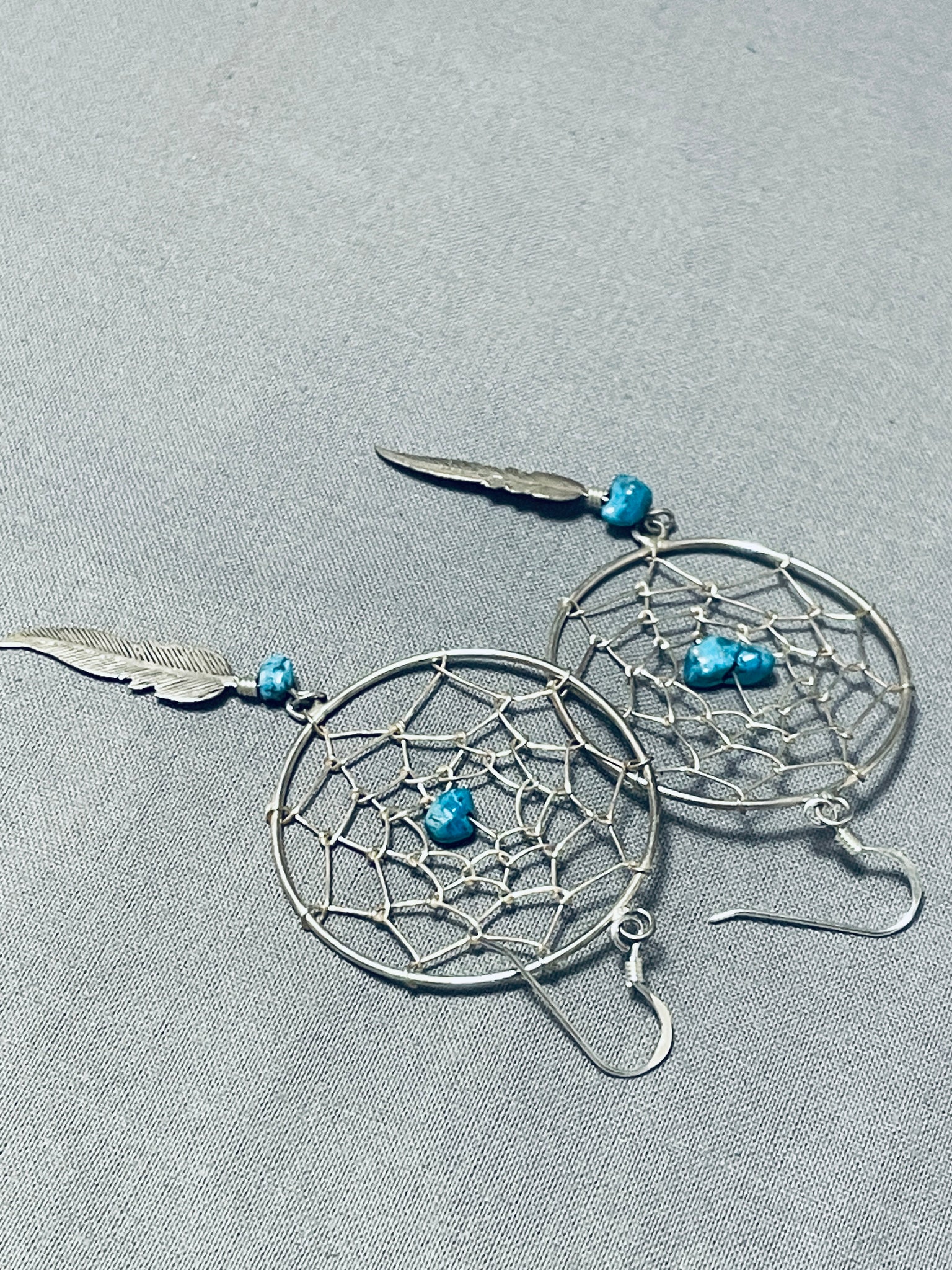 Intricate Vintage Native American Navajo Dreamcatcher Sterling Silver Earrings