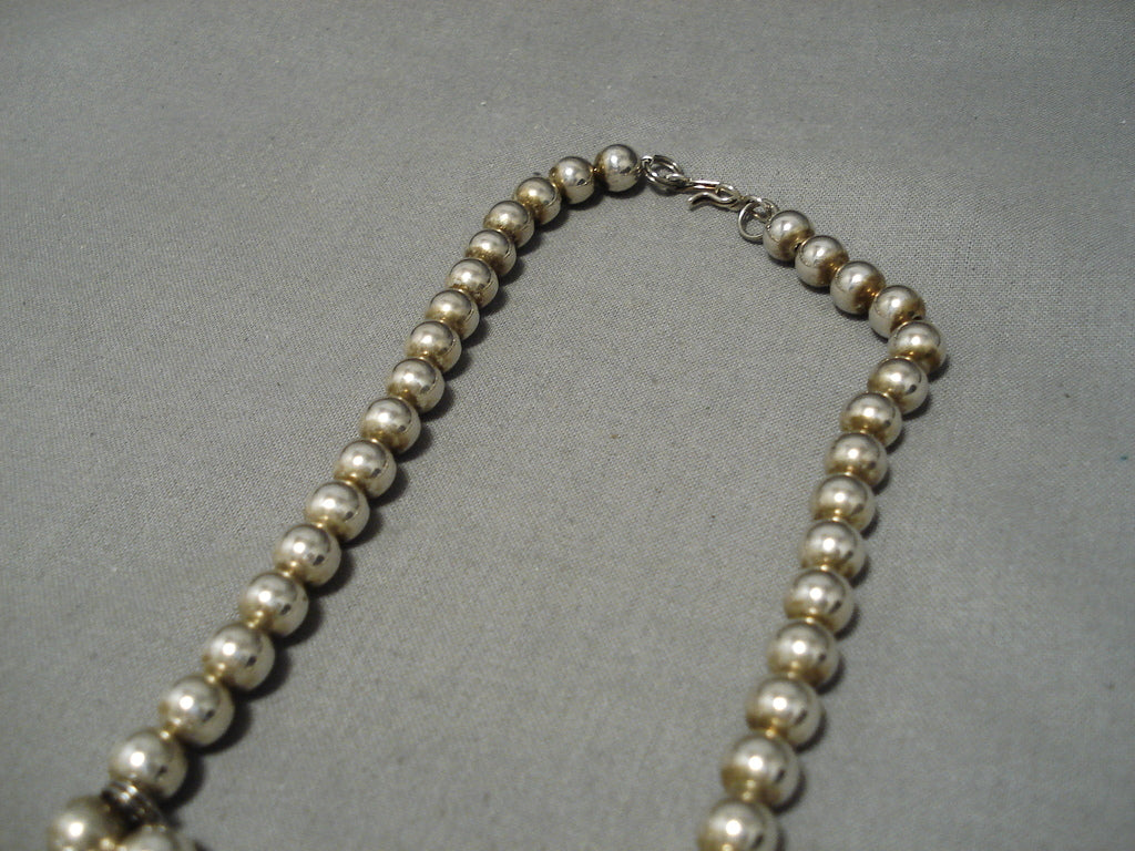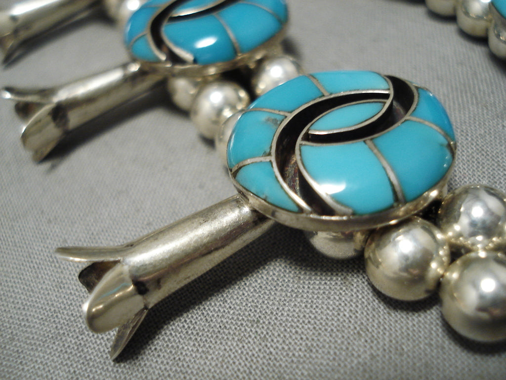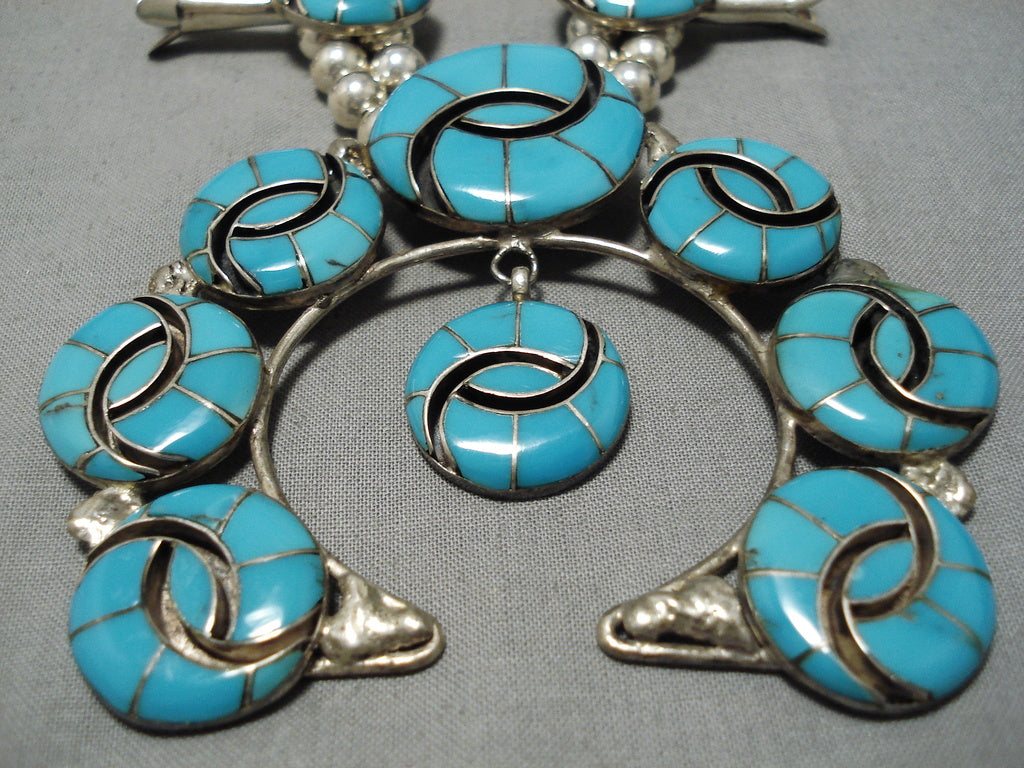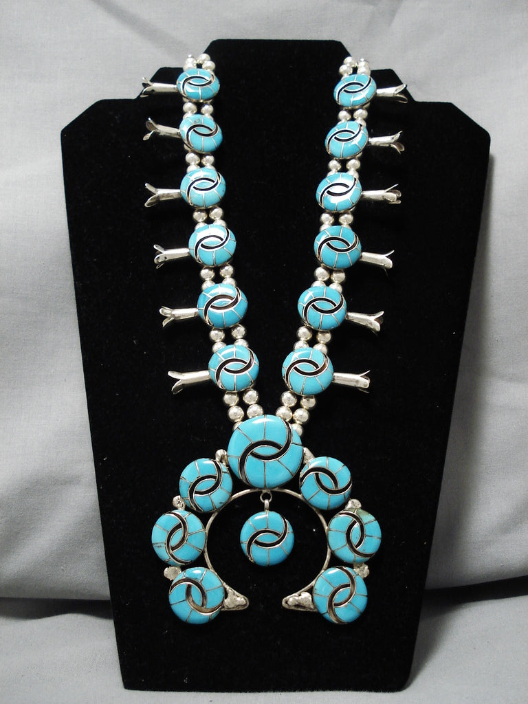 Intricate Vintage Native American Navajo Turquoise Sterling Silver Squash Blossom Necklace
