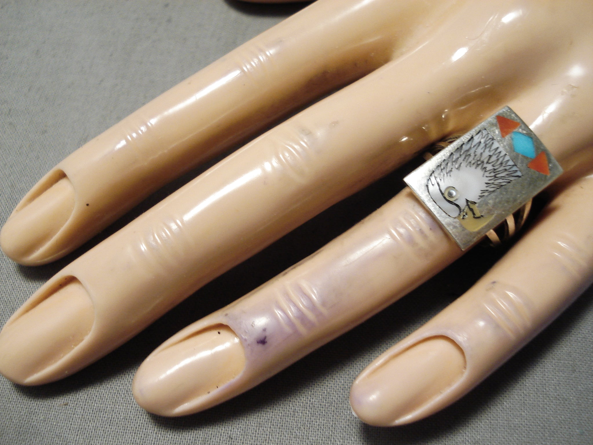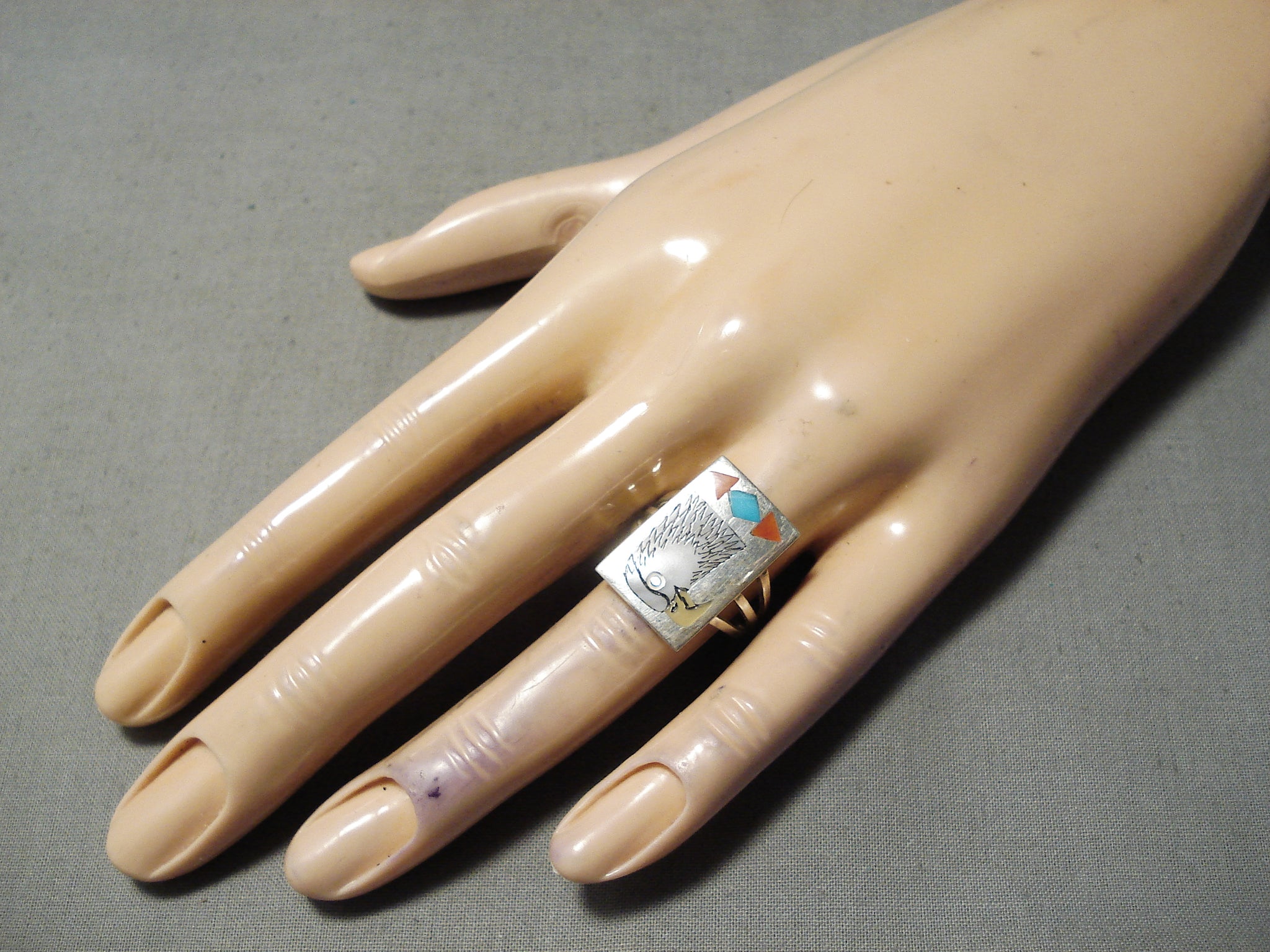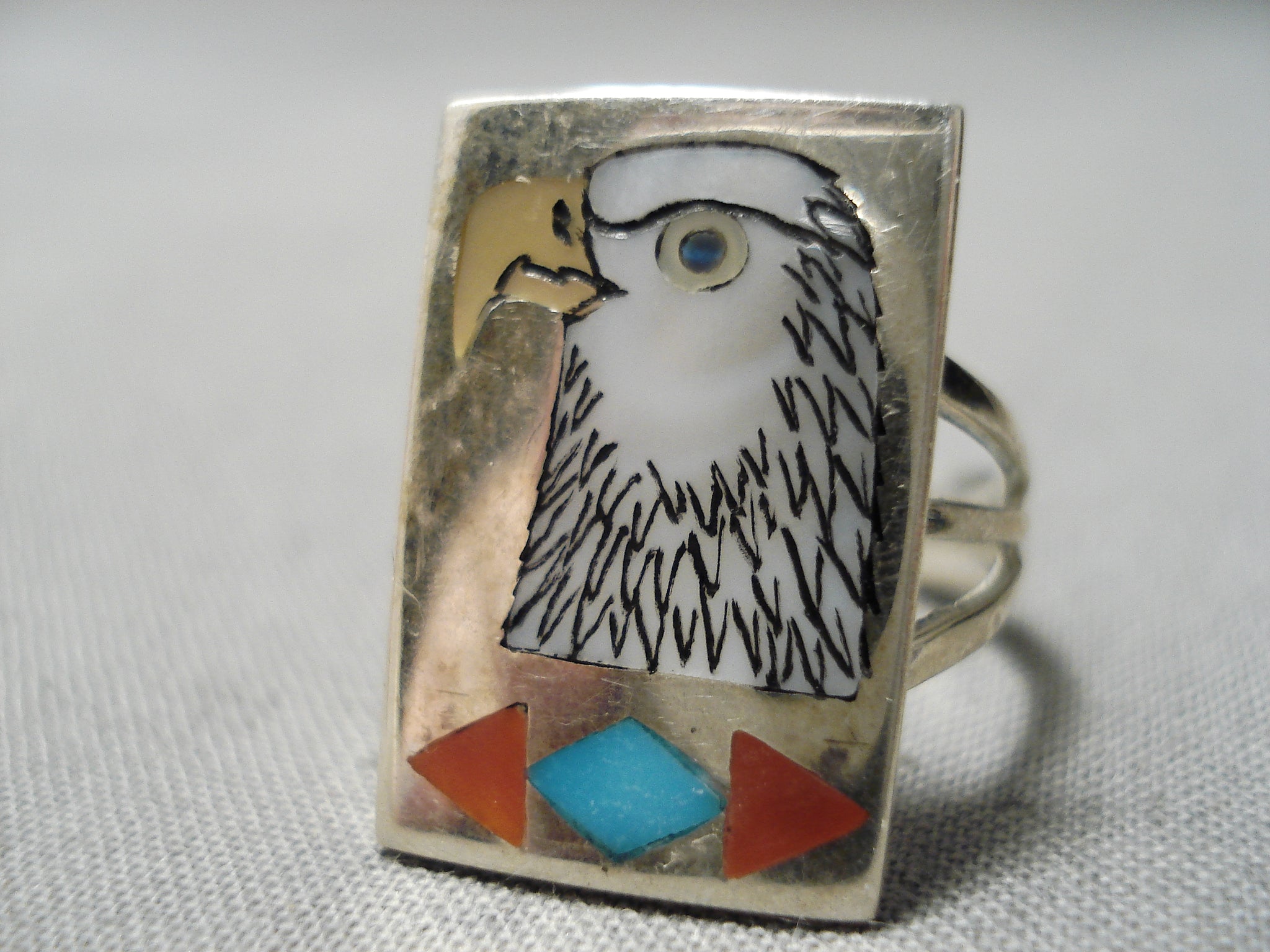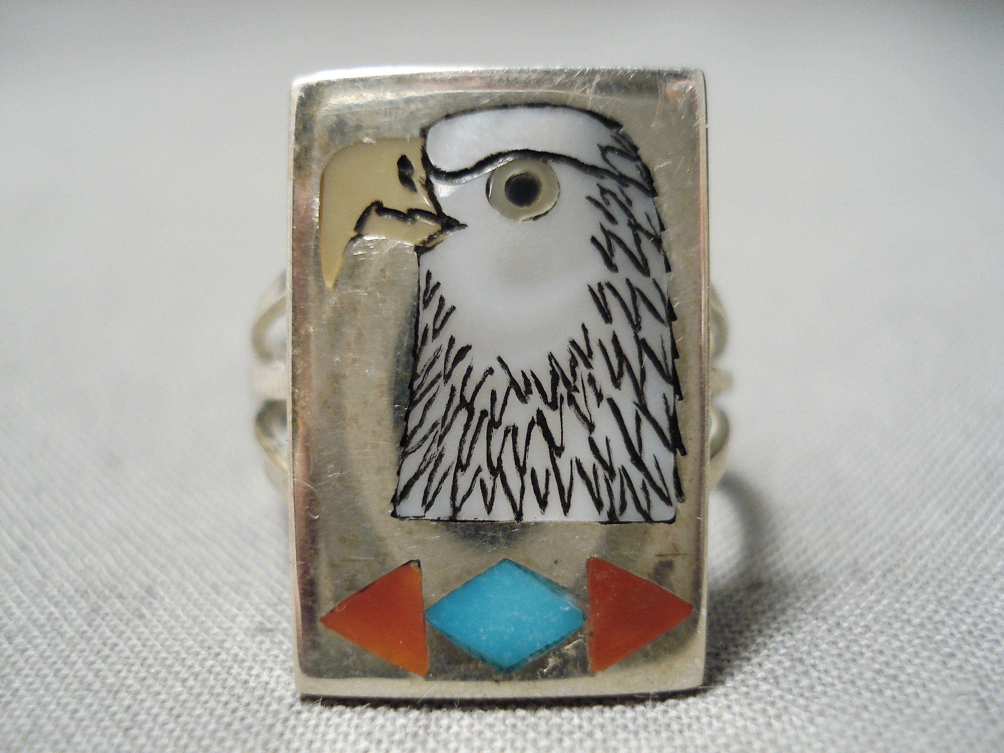 Intricate!! Vintage Zuni Native American Turquoise Eagle Sterling Silver Ring