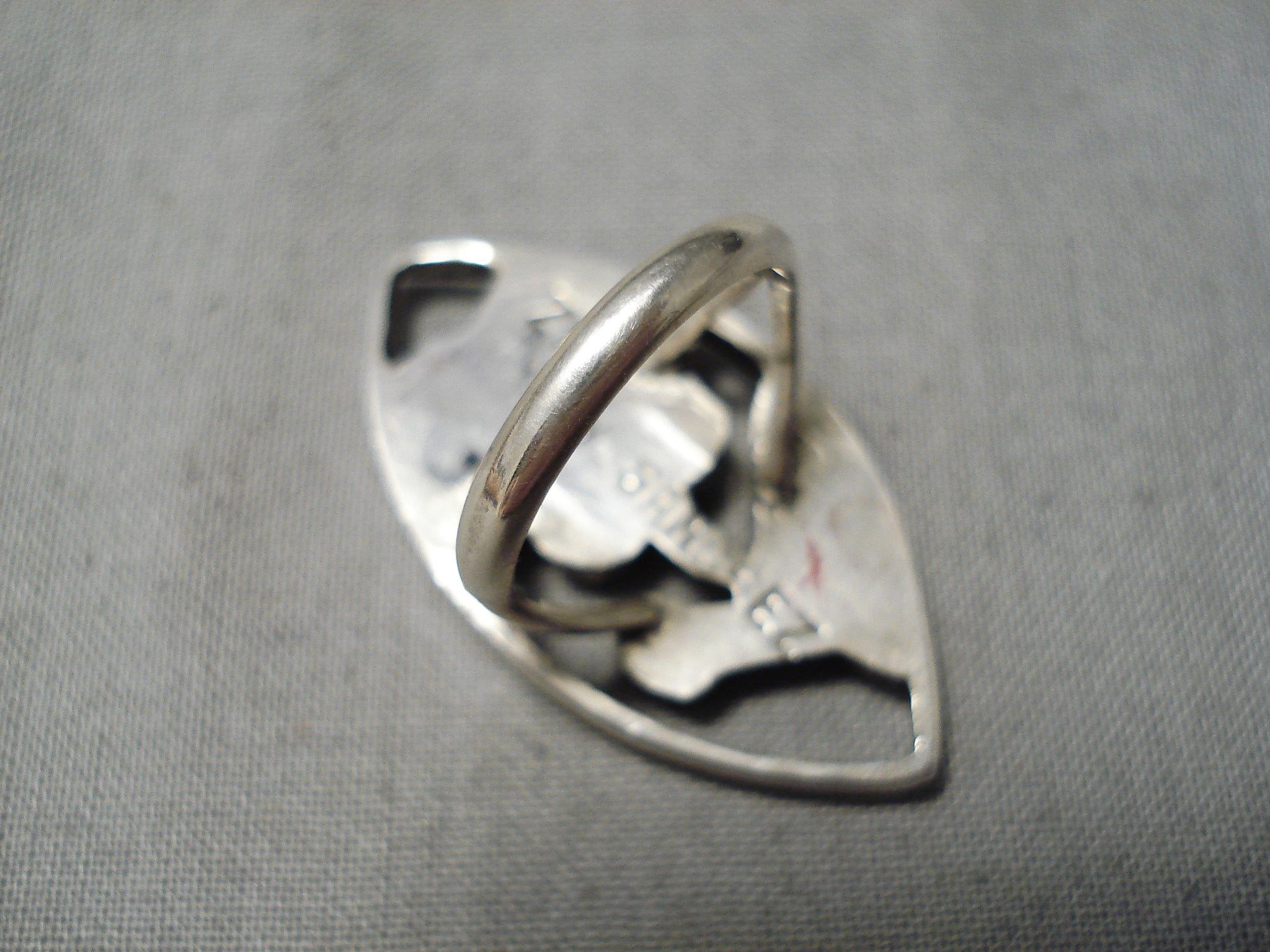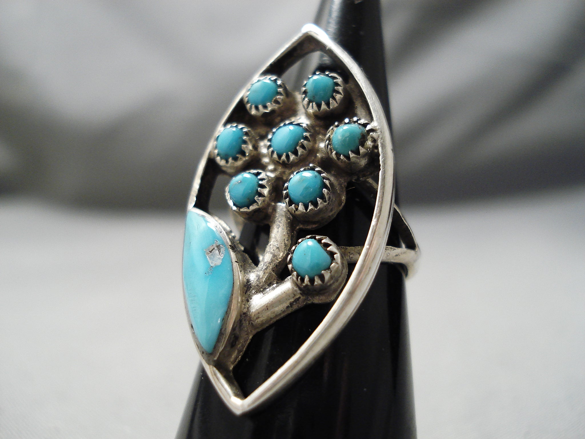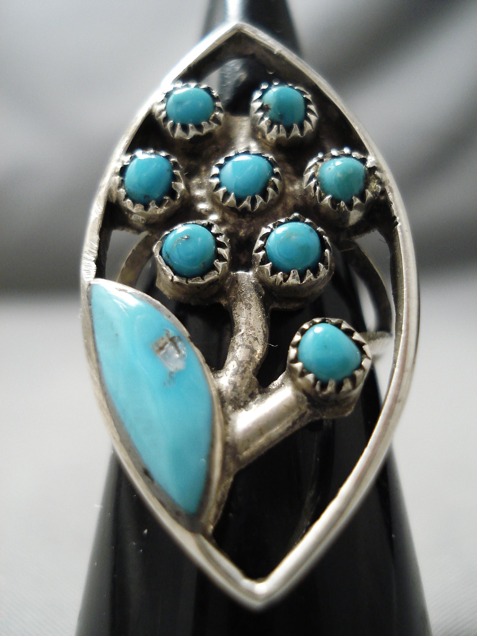 Intricate!! Vintage Zuni Native American Turquoise Flower Sterling Silver Ring