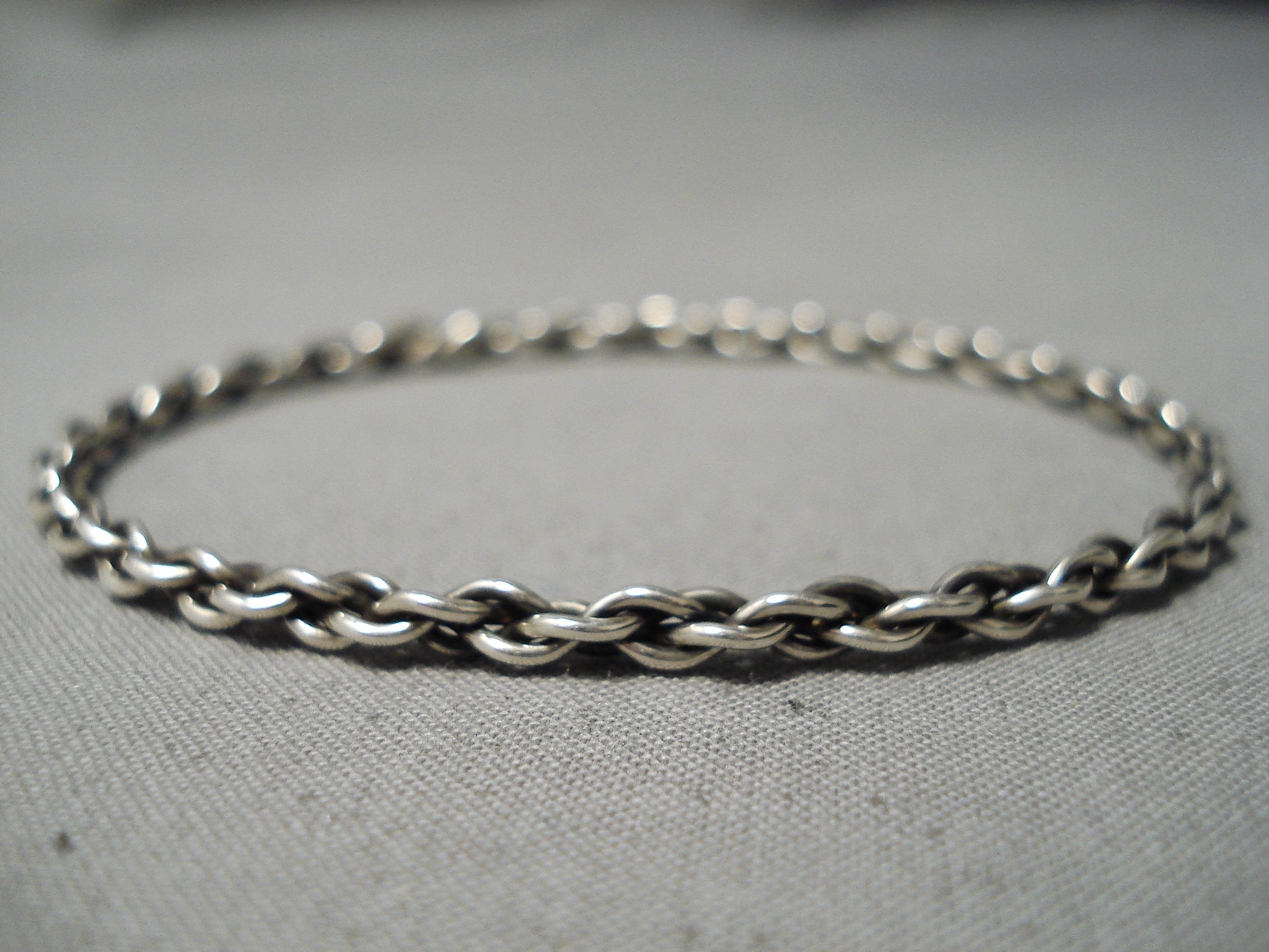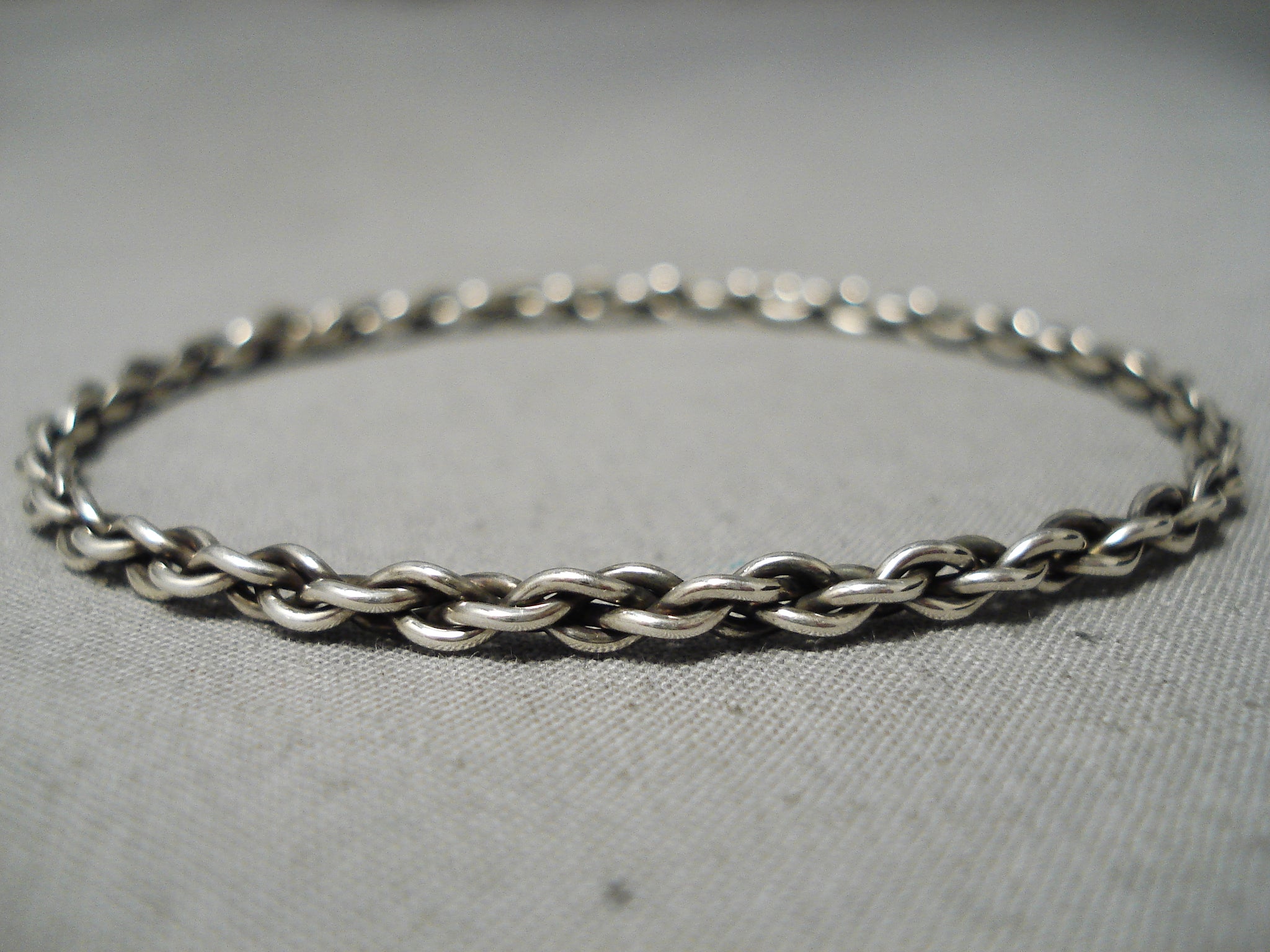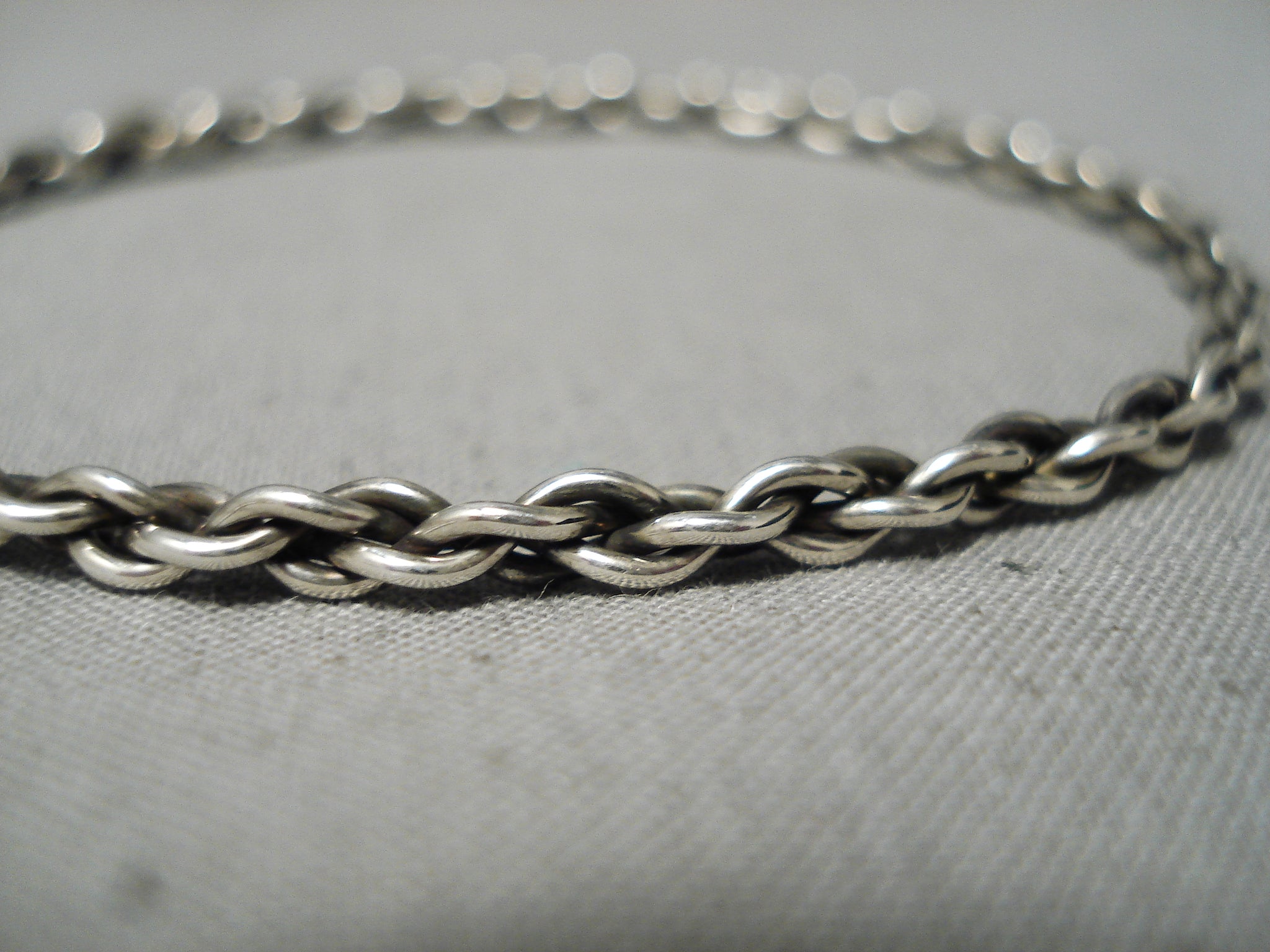 Intricately Hand Woven Vintage Native American Navajo Sterling Silver Rope Bangle Bracelet Old