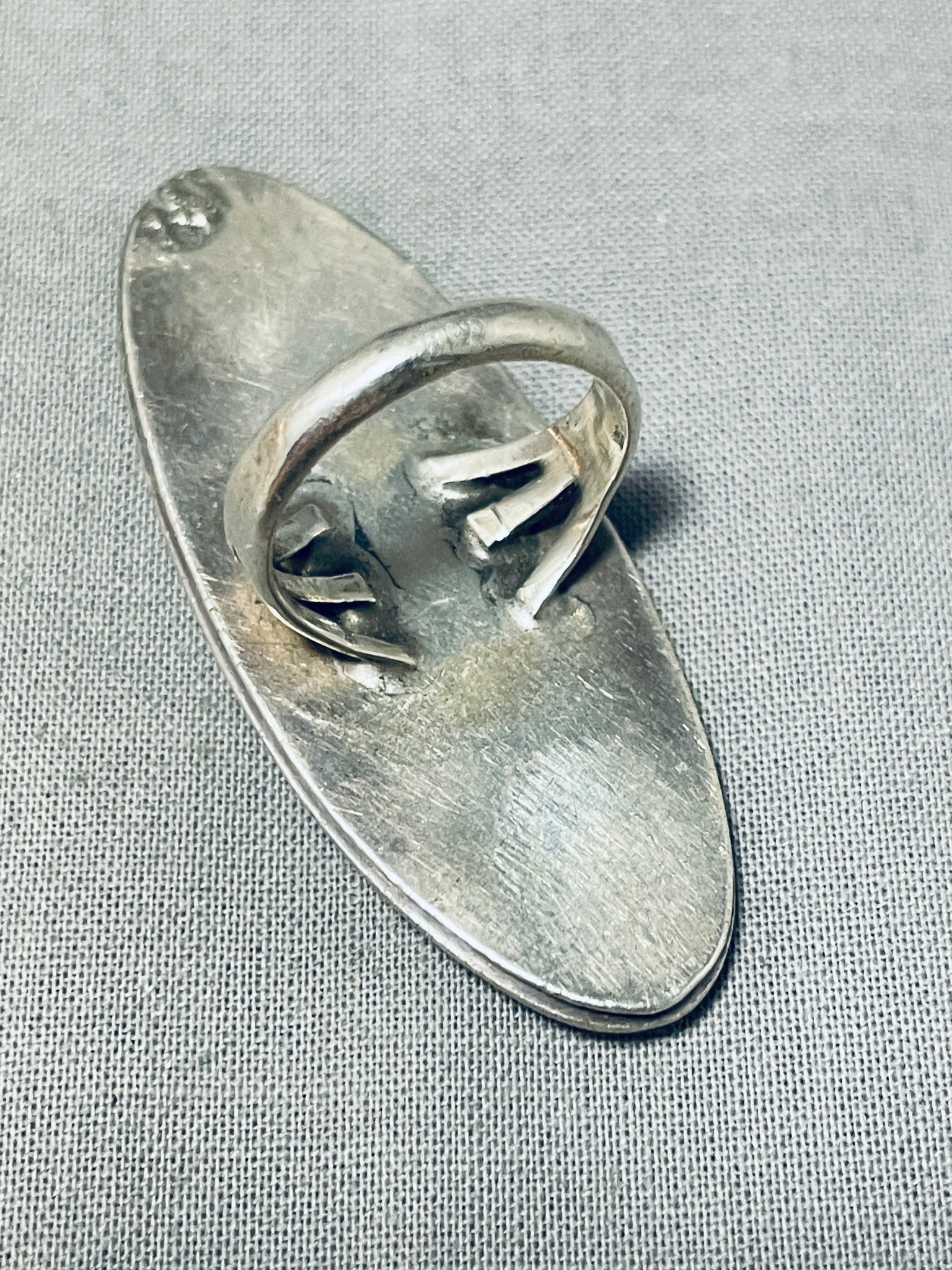 Intriguing Vintage Native American Navajo Pilot Mountain Turquoise Sterling Silver Ring