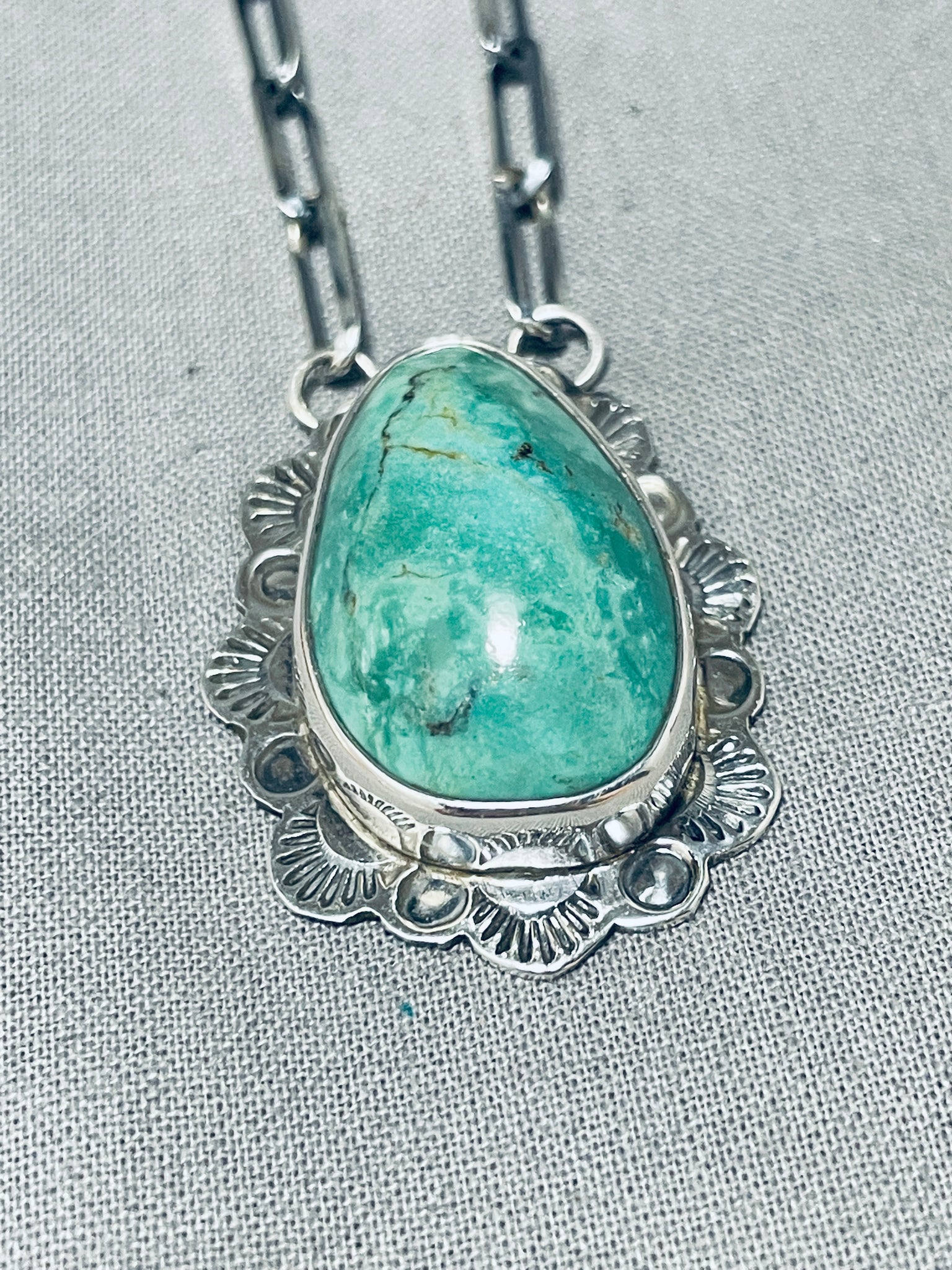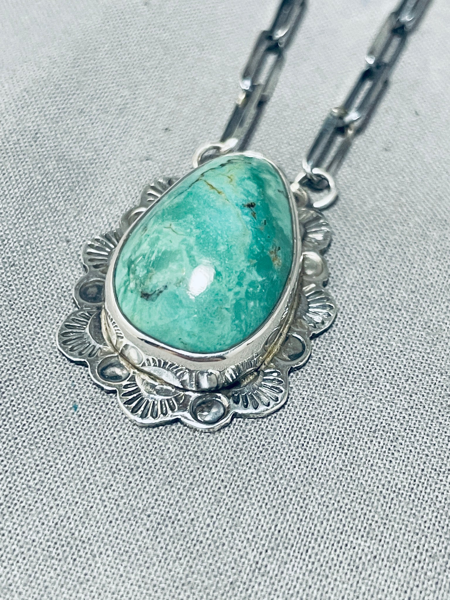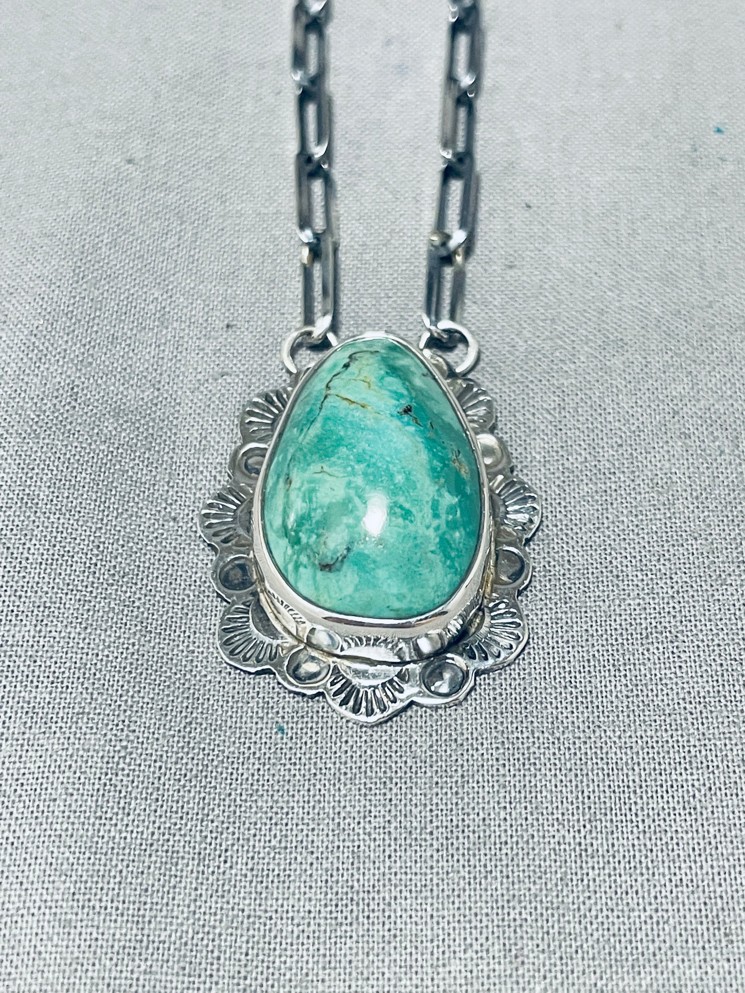 Jake Francosa San Felipe Green Old Kingman Turquoise Sterling Silver Necklace