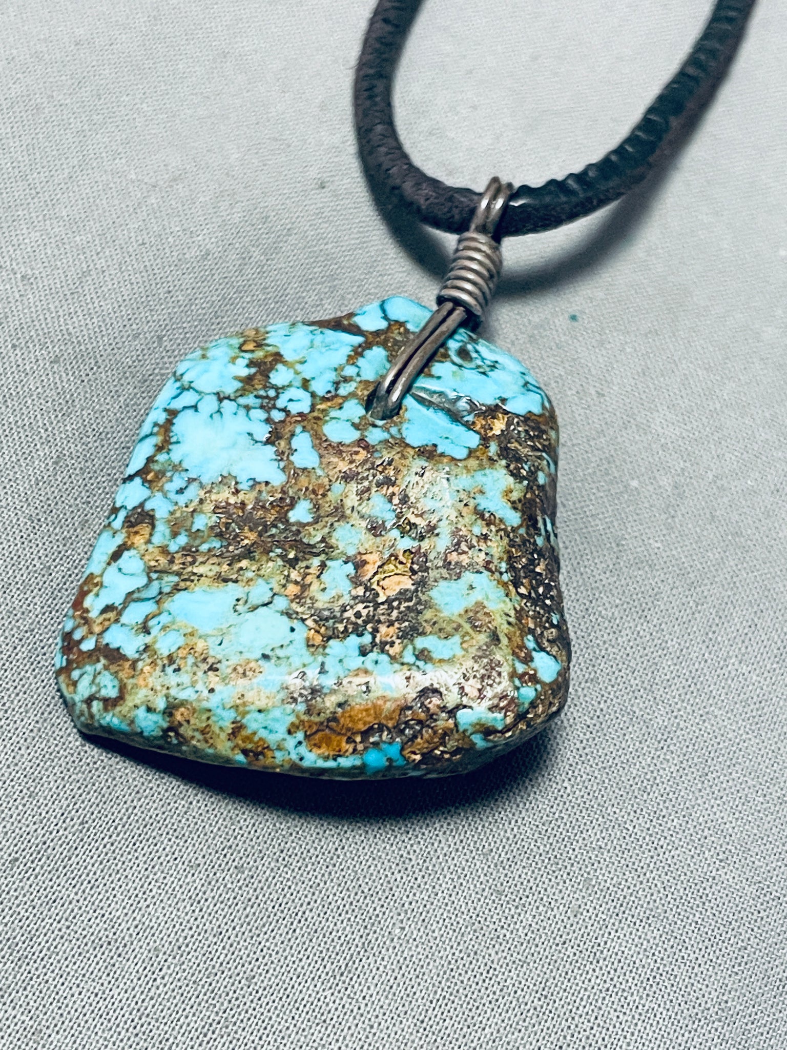 Jaw-dropping Vintage Native American Navajo Spiderweb Turquoise Leather Necklace