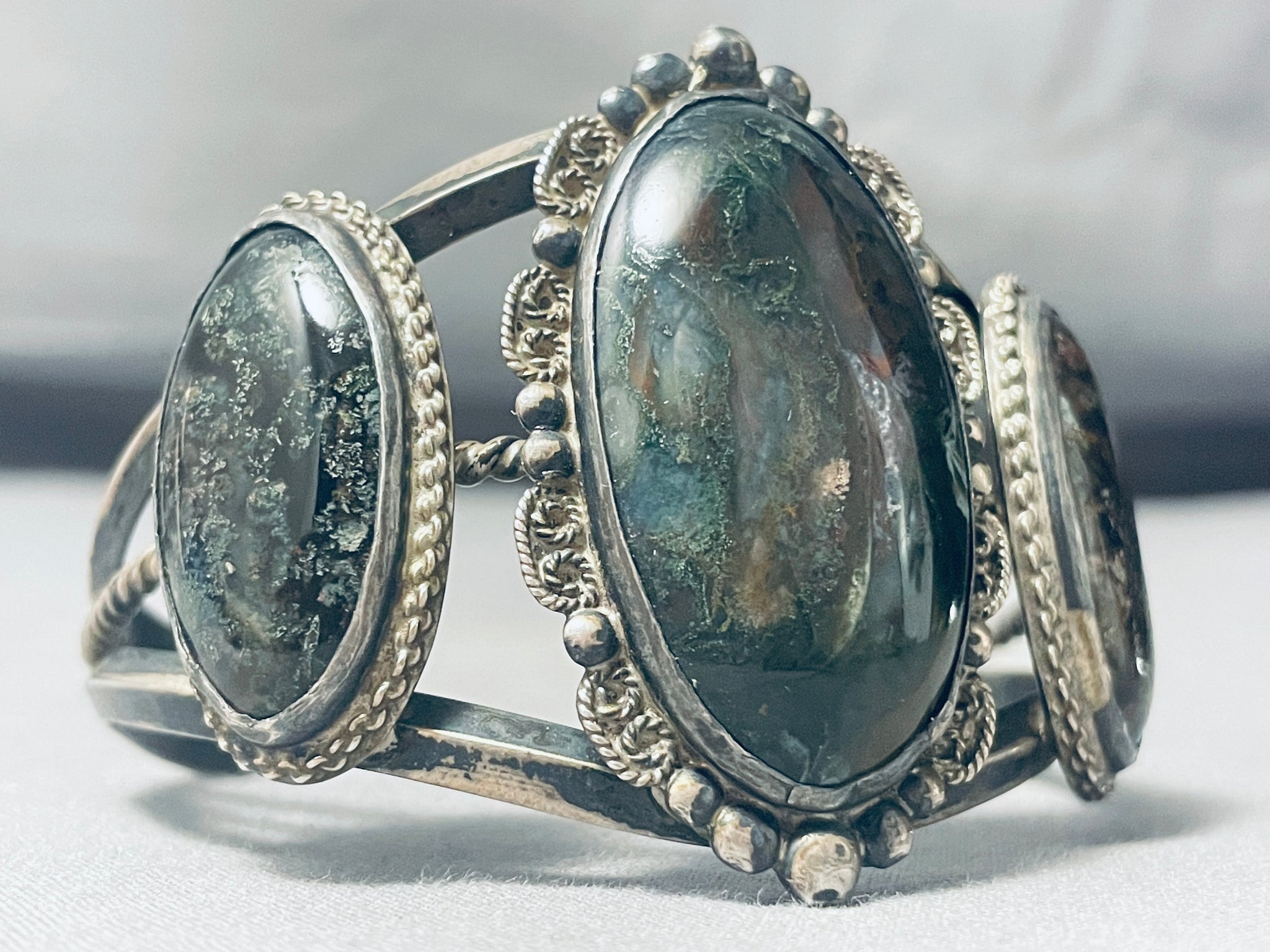 Jawdropping Dark Petrified Wood Vintage Native American Navajo Sterling Silver Bracelet Cuff Old