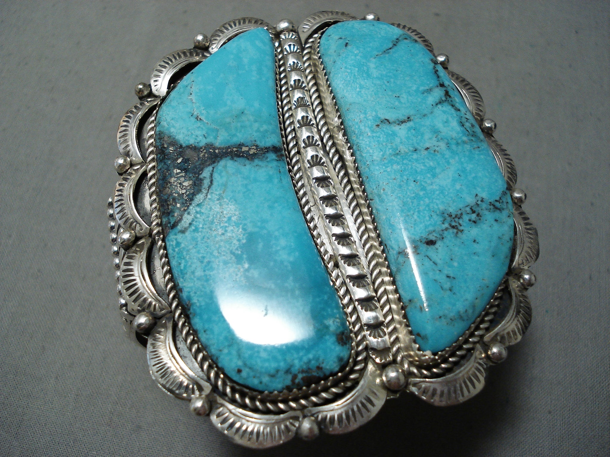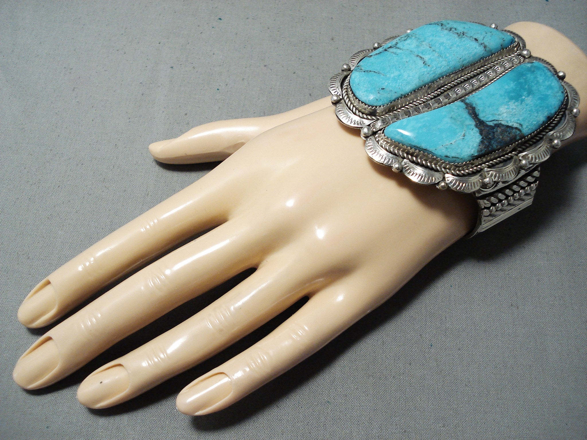 Joe Tso Huge Native American Navajo Blue Diamond Turquoise Sterling Silver Bracelet