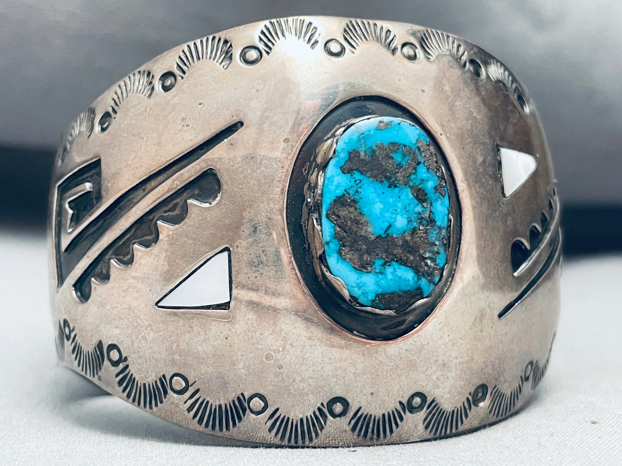 John Frank Vintage Native American Navajo Persin Turquoise Sterling Silver Bracelet