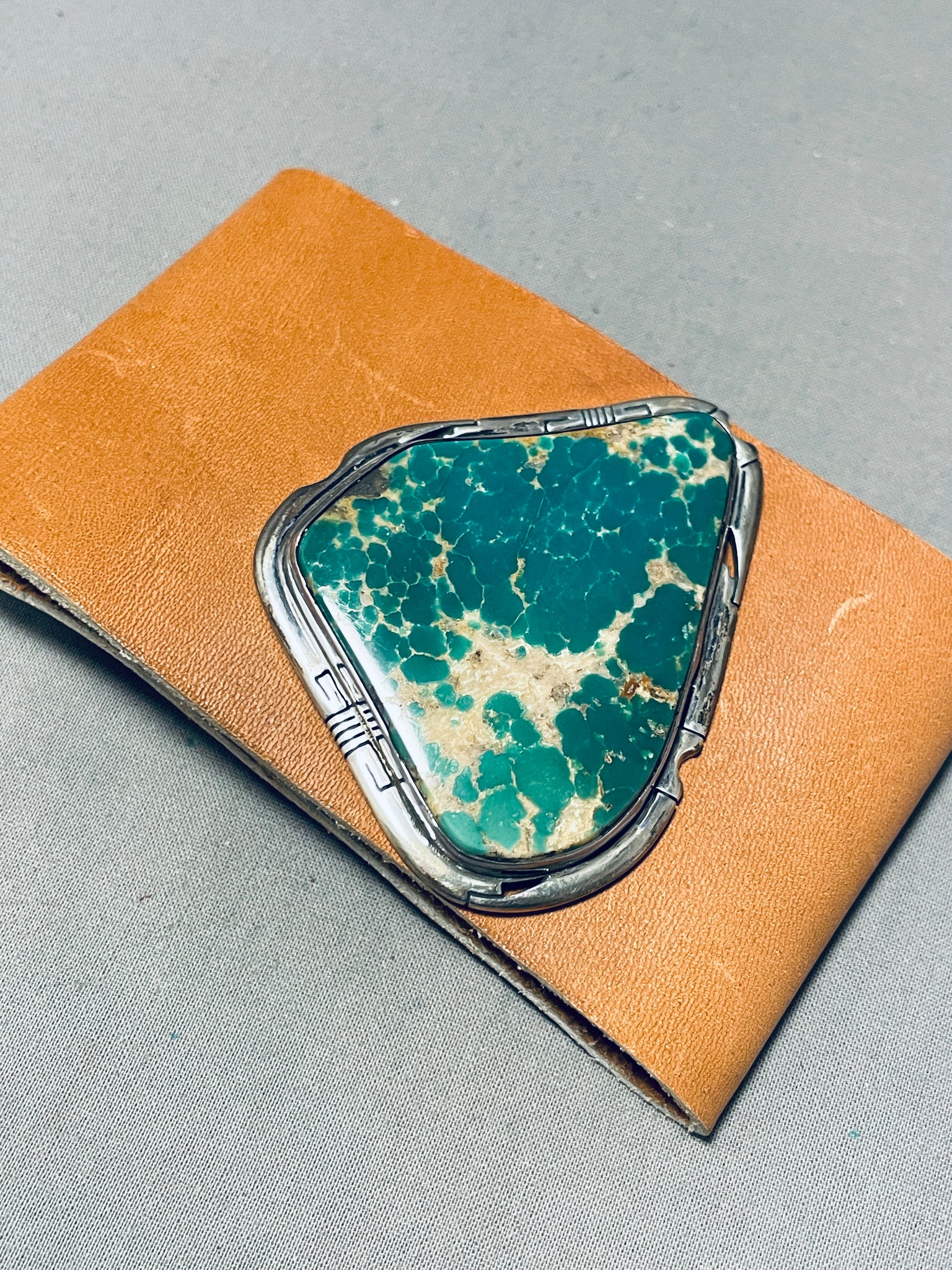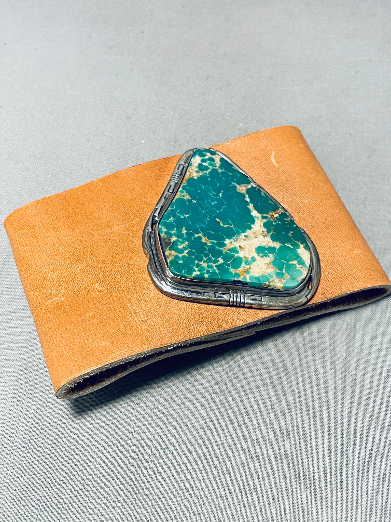 John Platero Huge Vintage Native American Navajo Green Turquoise Sterling Silver Ketoh Bracelet