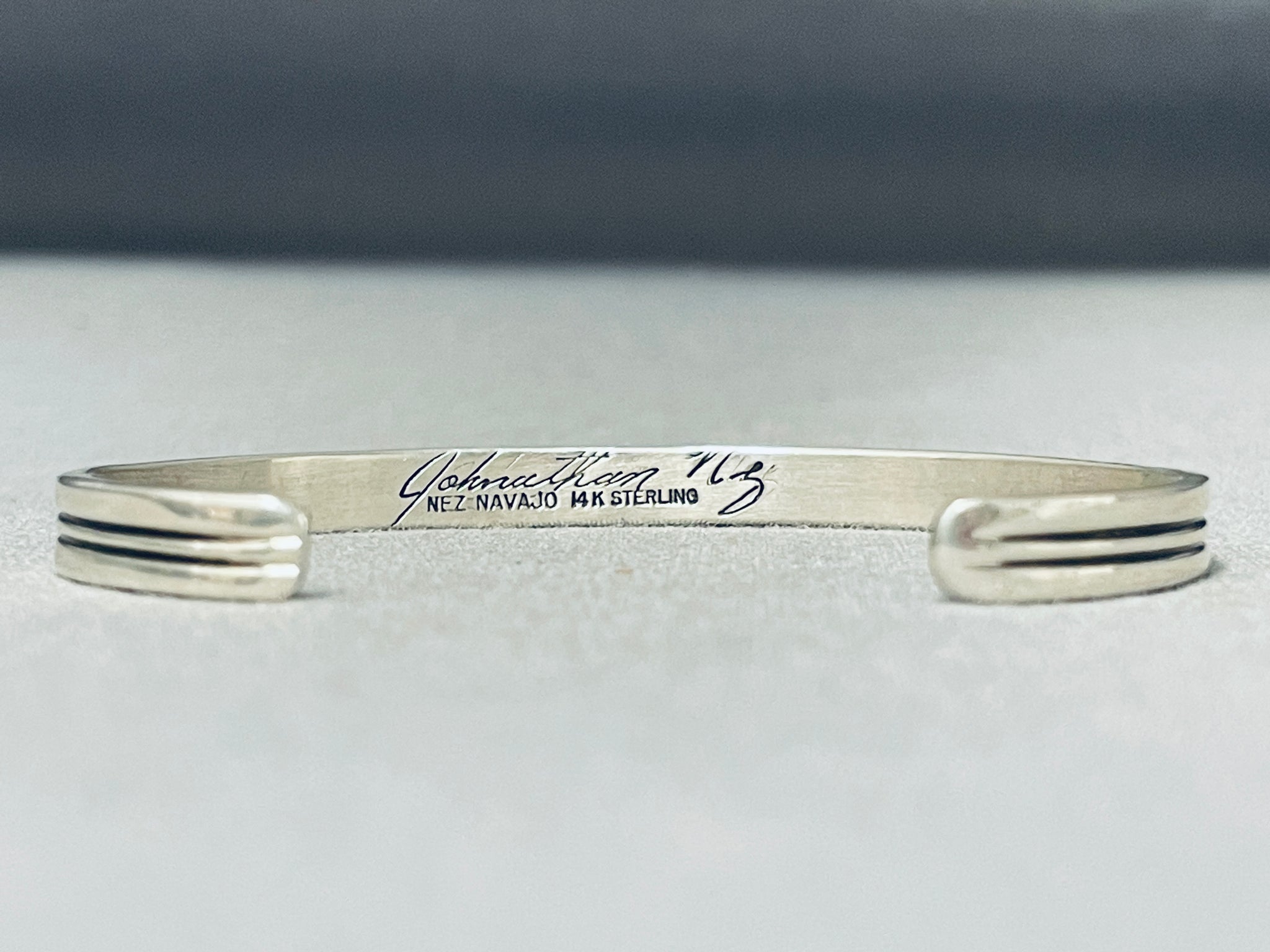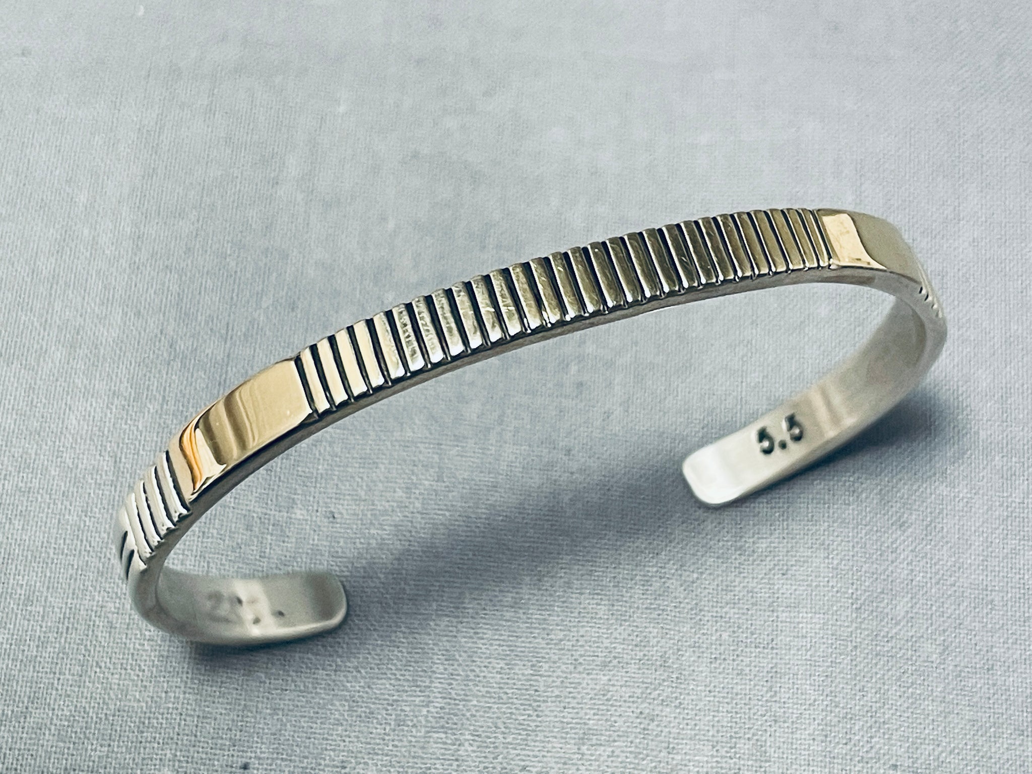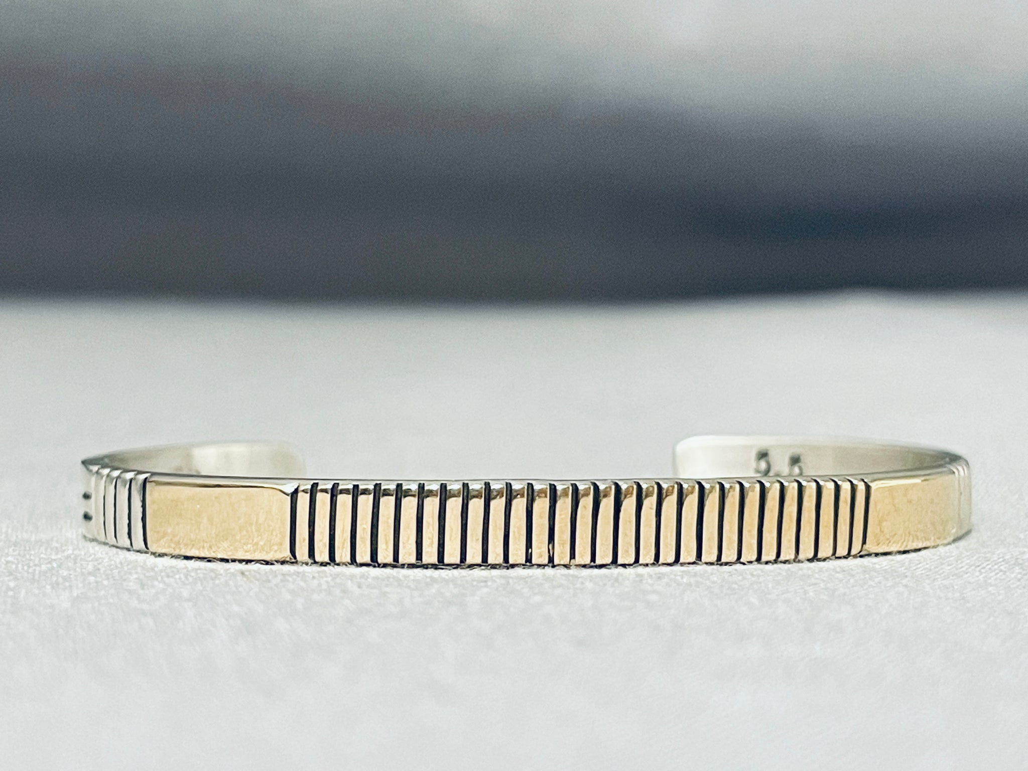 Jonny Nez Native American Navajo Signed Sterling Silver 14k Gold Bracelet