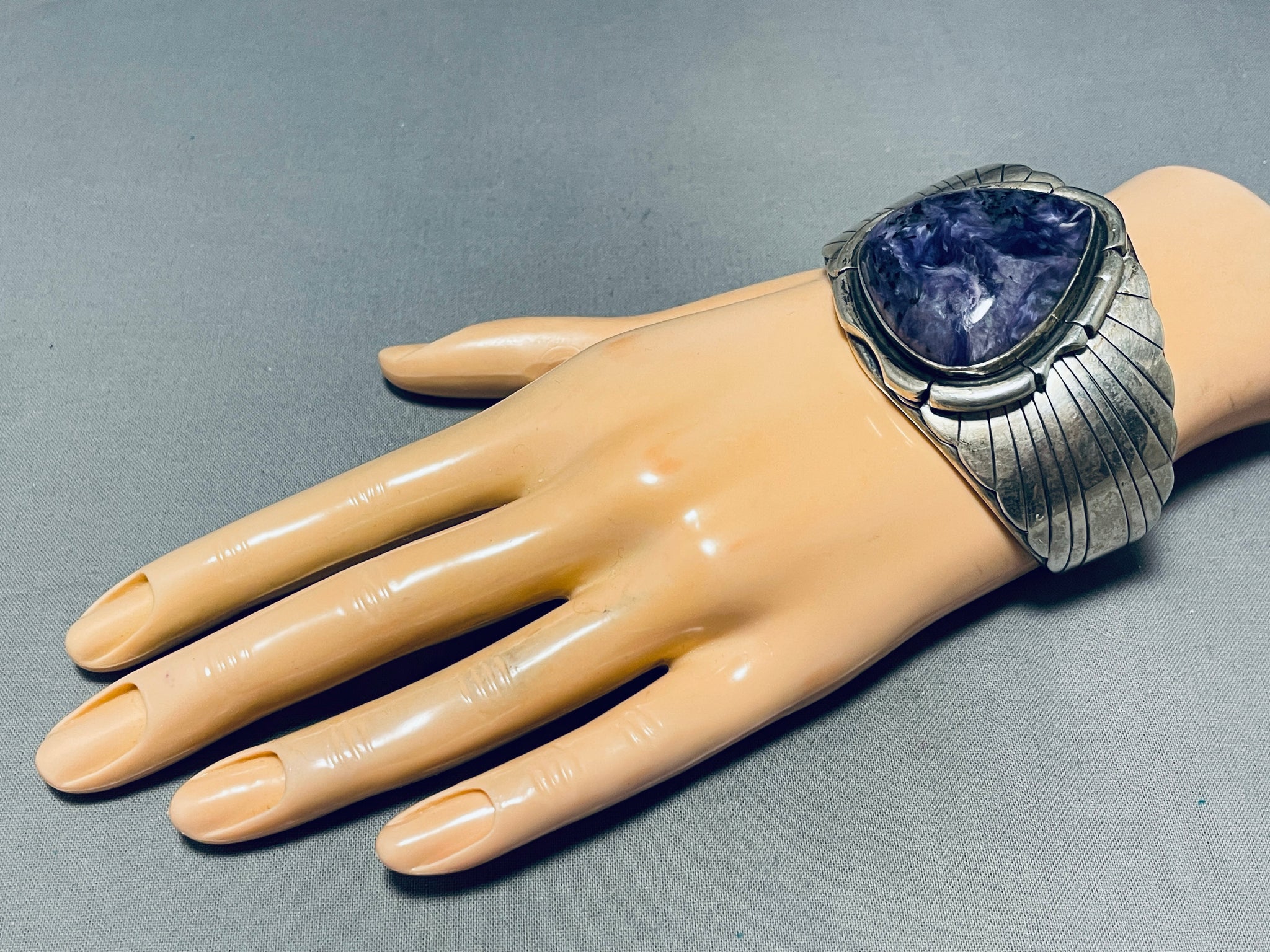 Jonny Peters Vintage Native American Navajo Charoite Sterling Silver Bracelet