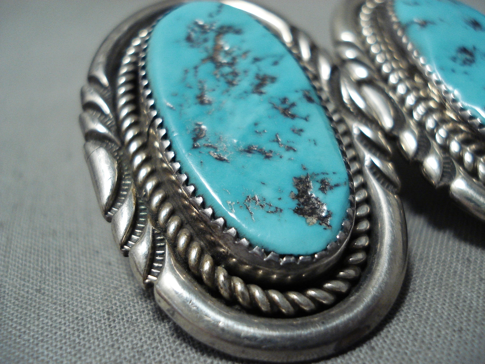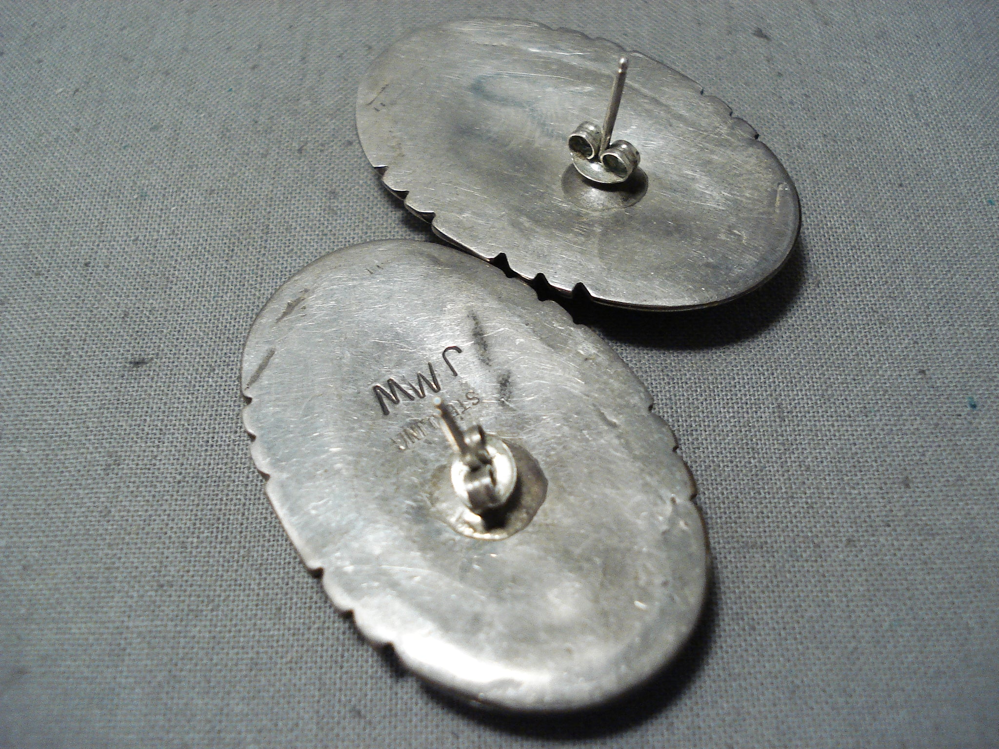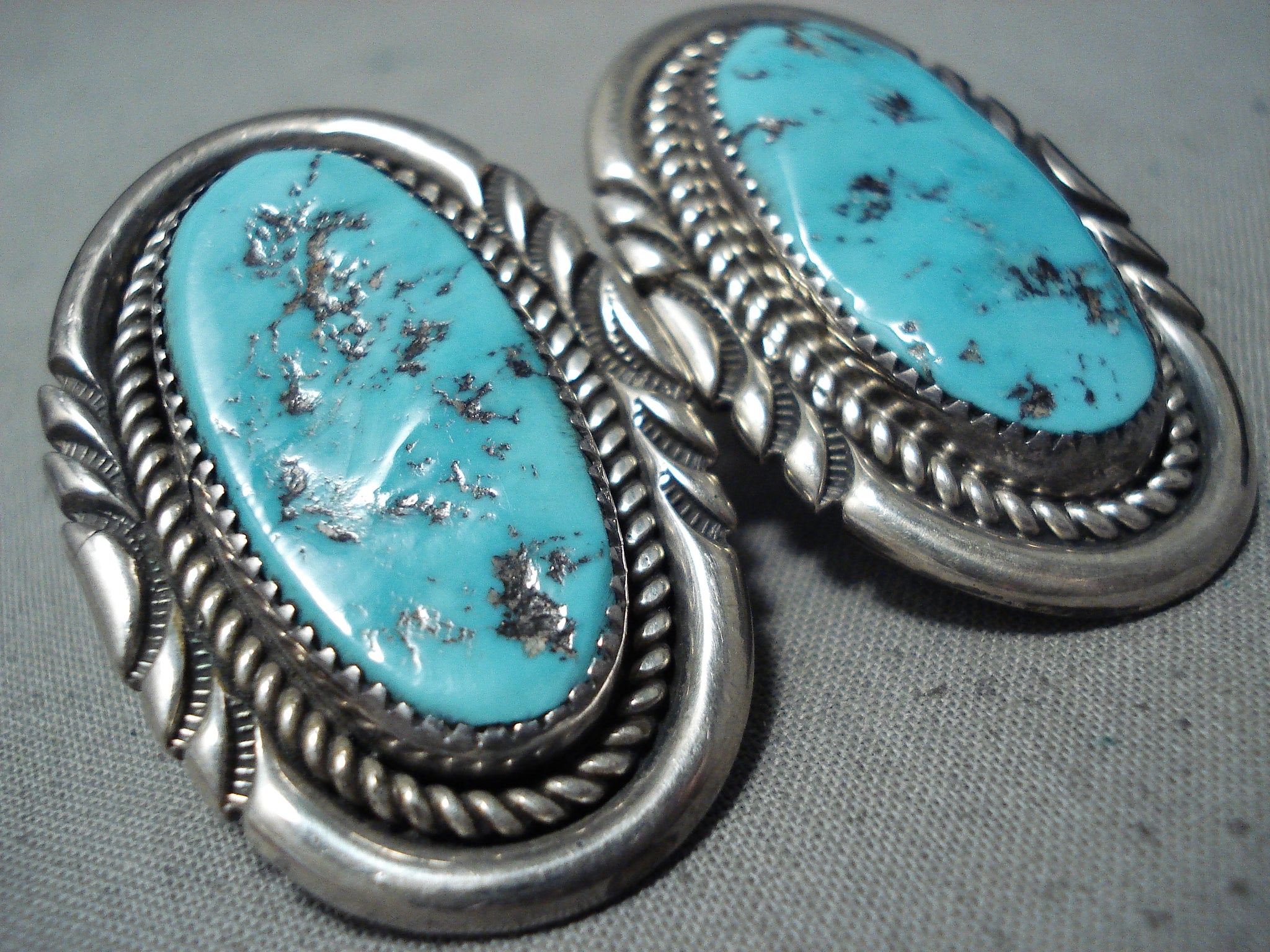 Justin Wilson Vintage Native American Navajo Sleeping Beauty Turquoise Sterling Silver Earrings