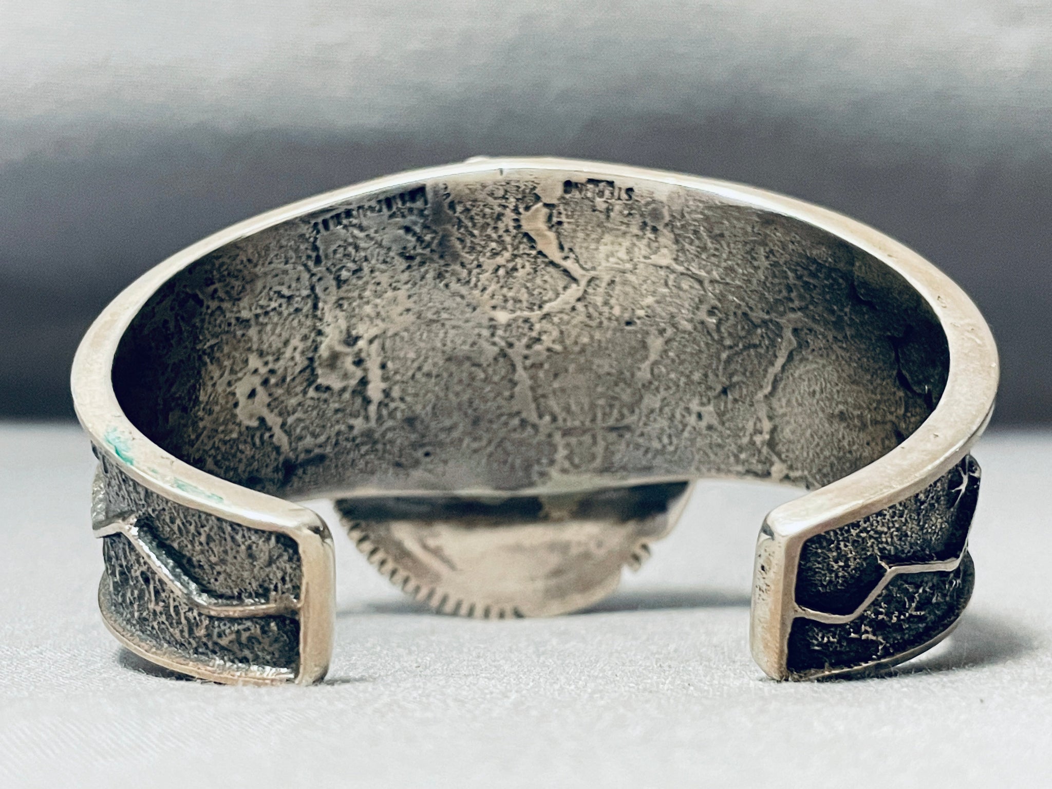 Kachina Master Signed Native American Navajo Turquoise Sterling Silver Heavy Bracelet