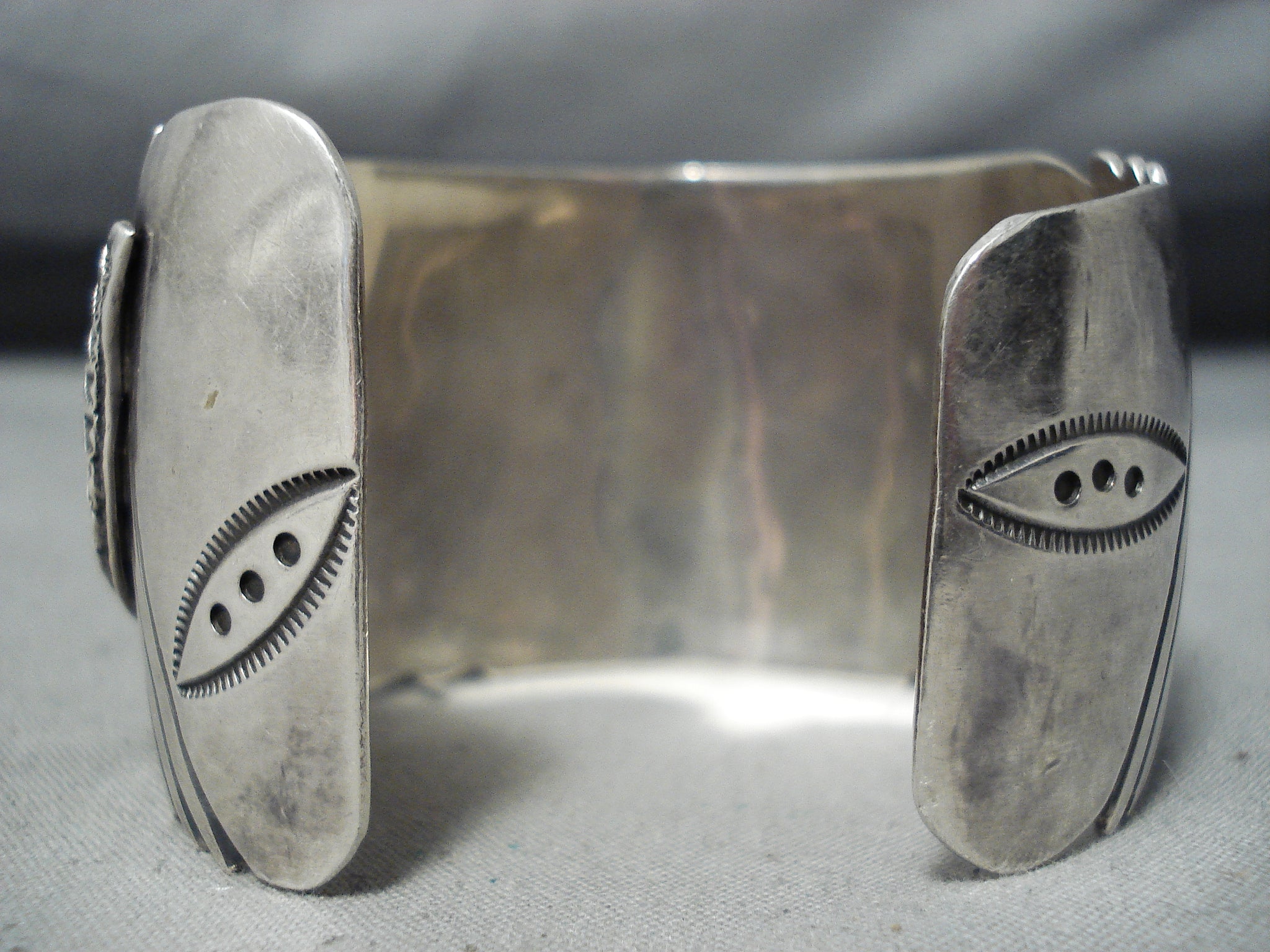 Kachina Yei Vintage Native American Navajo Turquoise Sterling Silver Swirl Bracelet