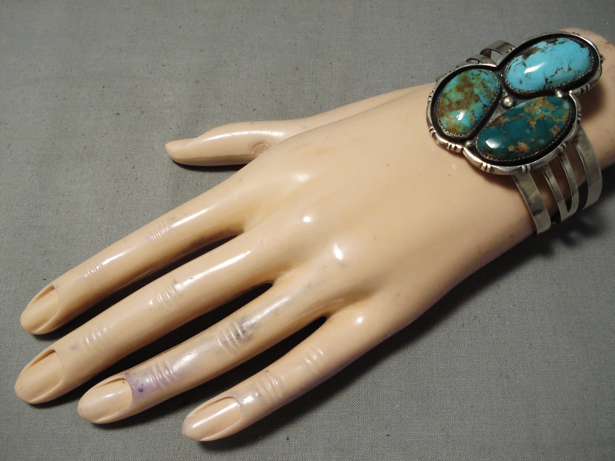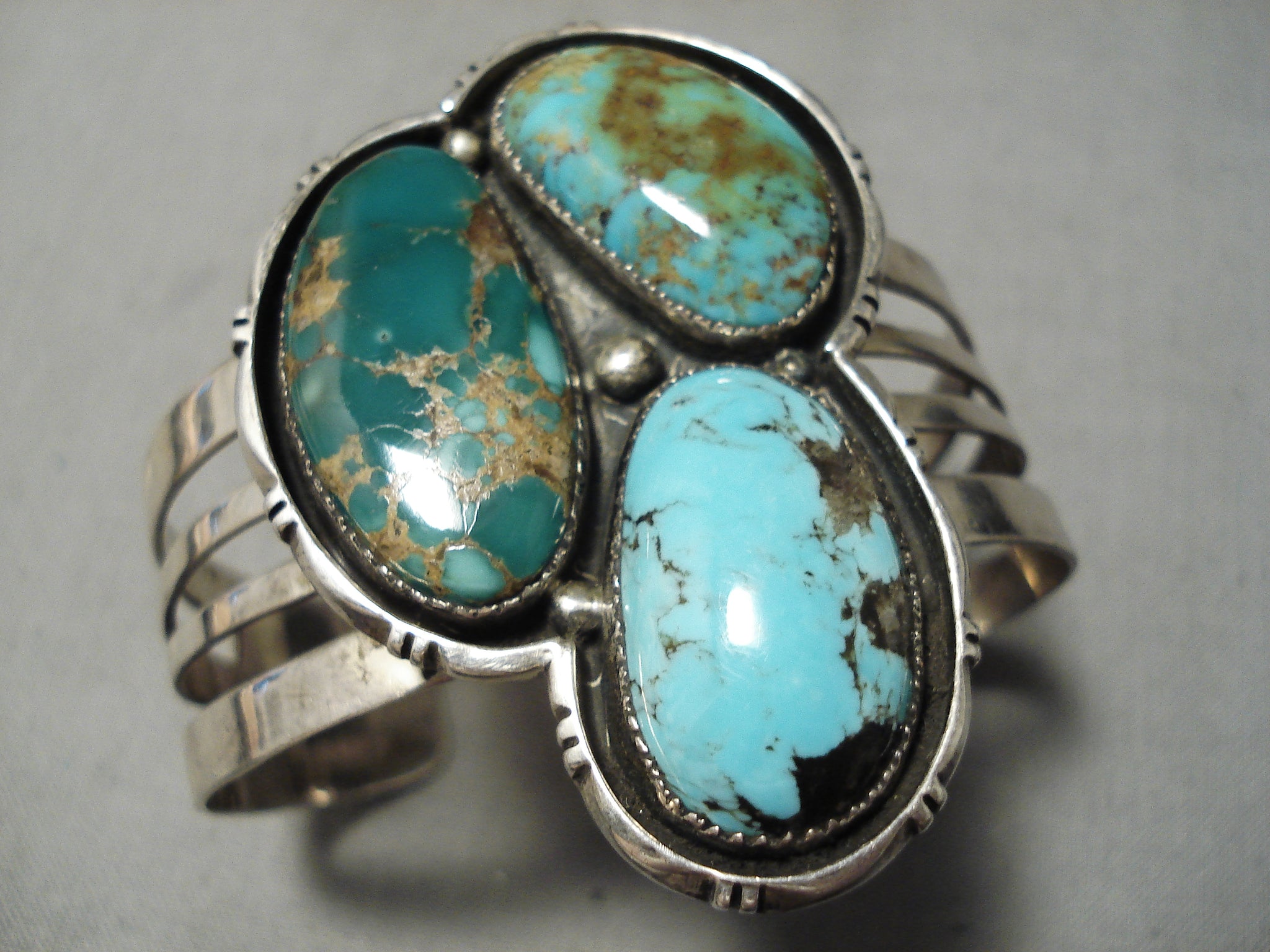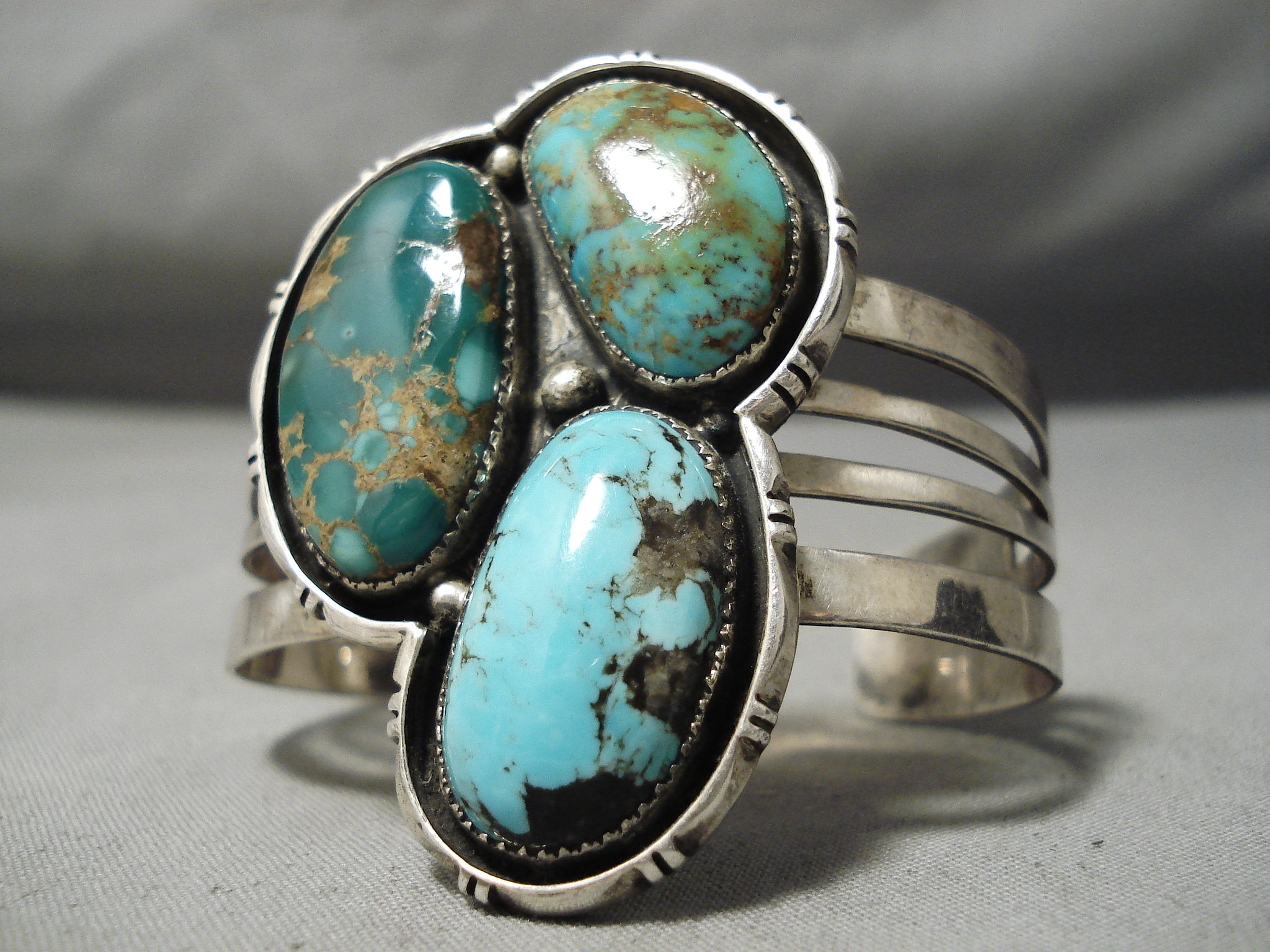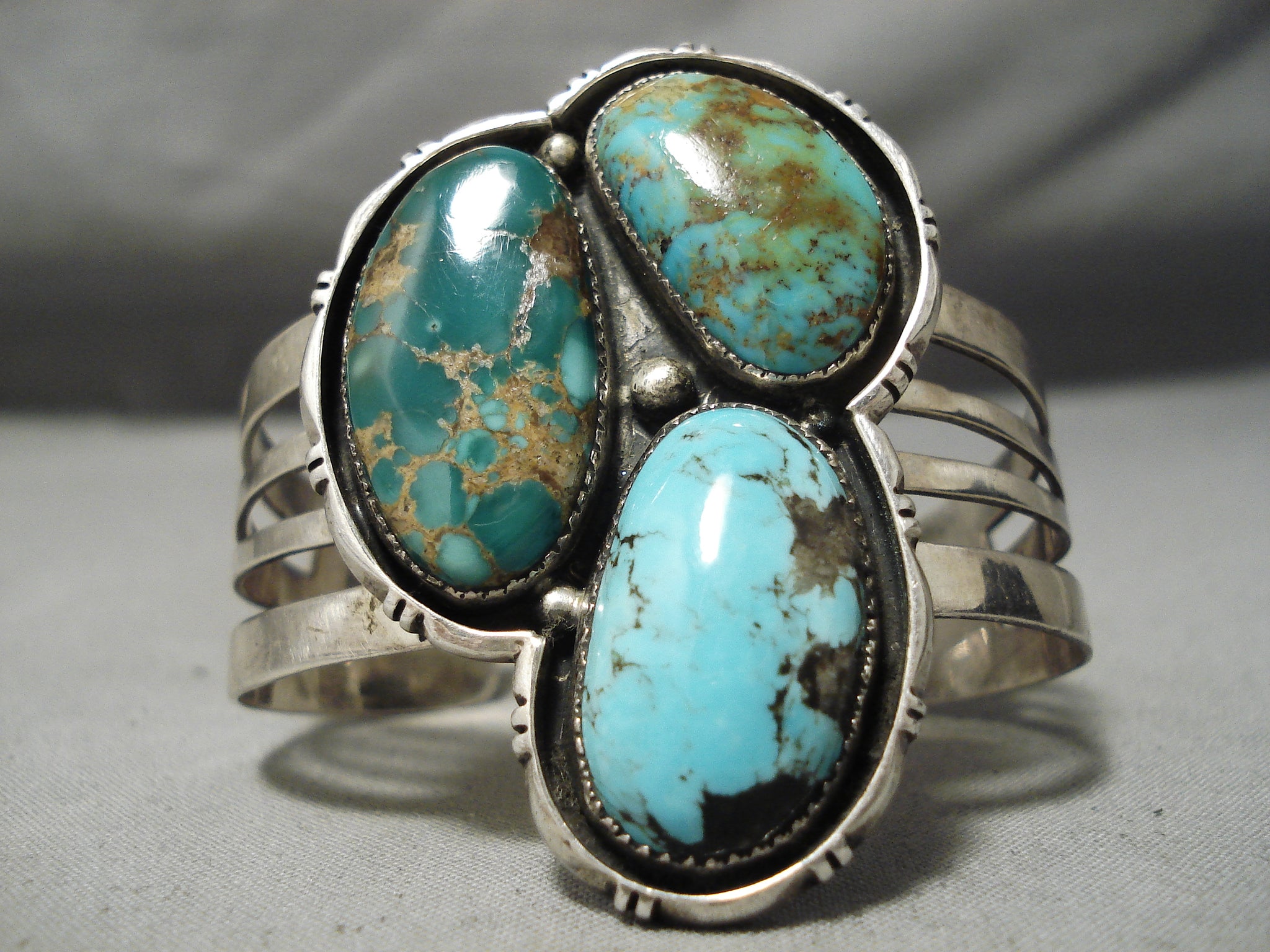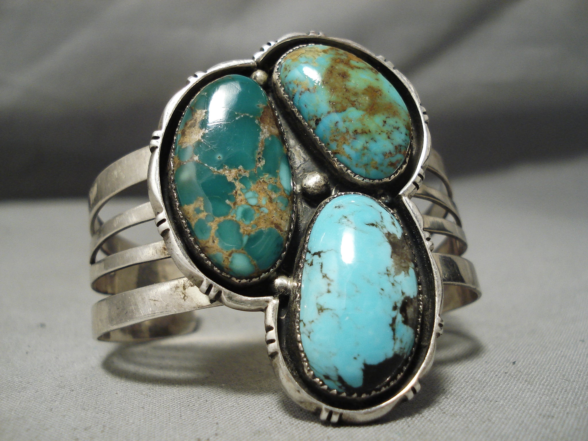 Lakes Of Turquoise Vintage Native American Navajo Sterling Silver Bracelet