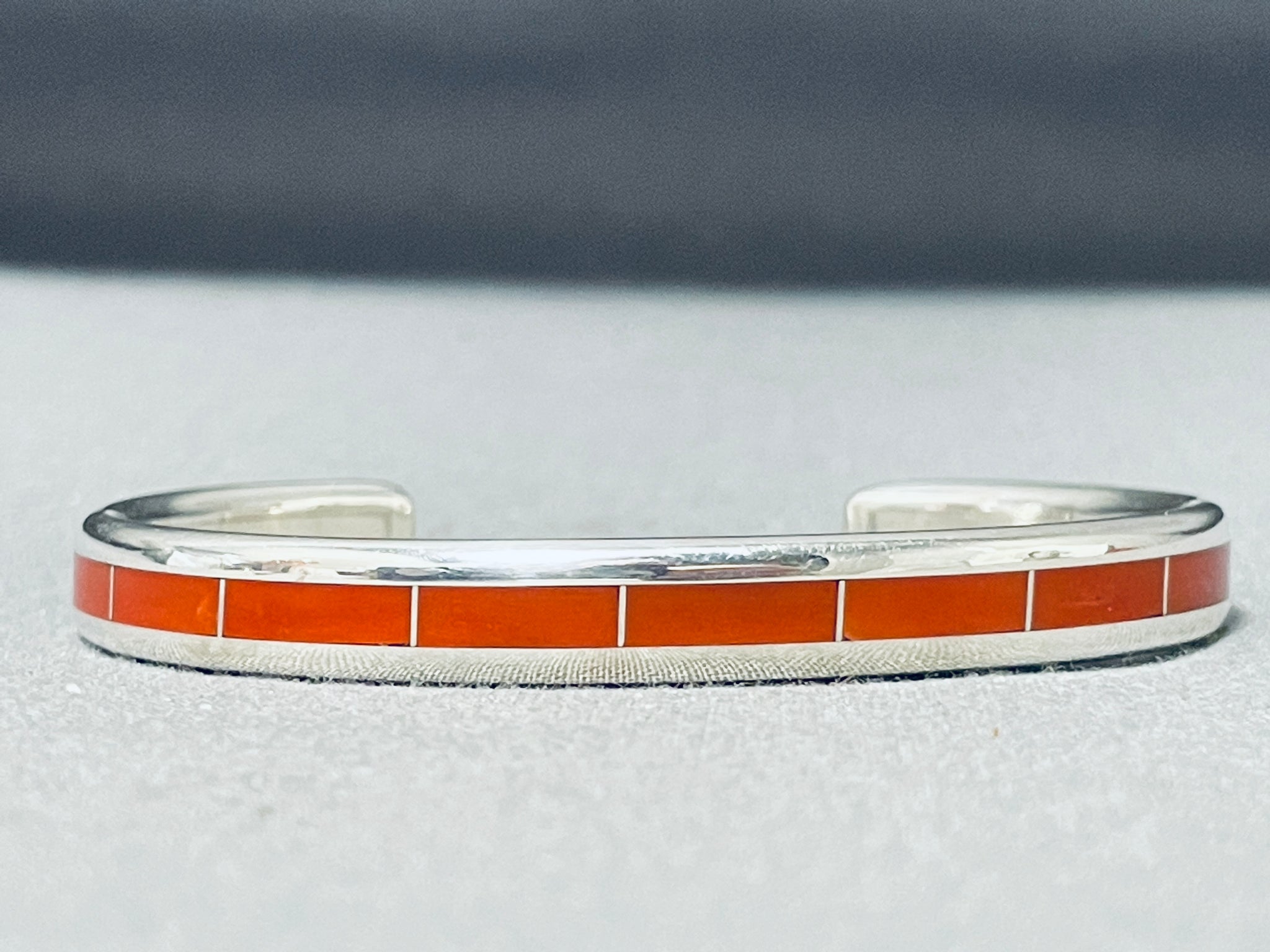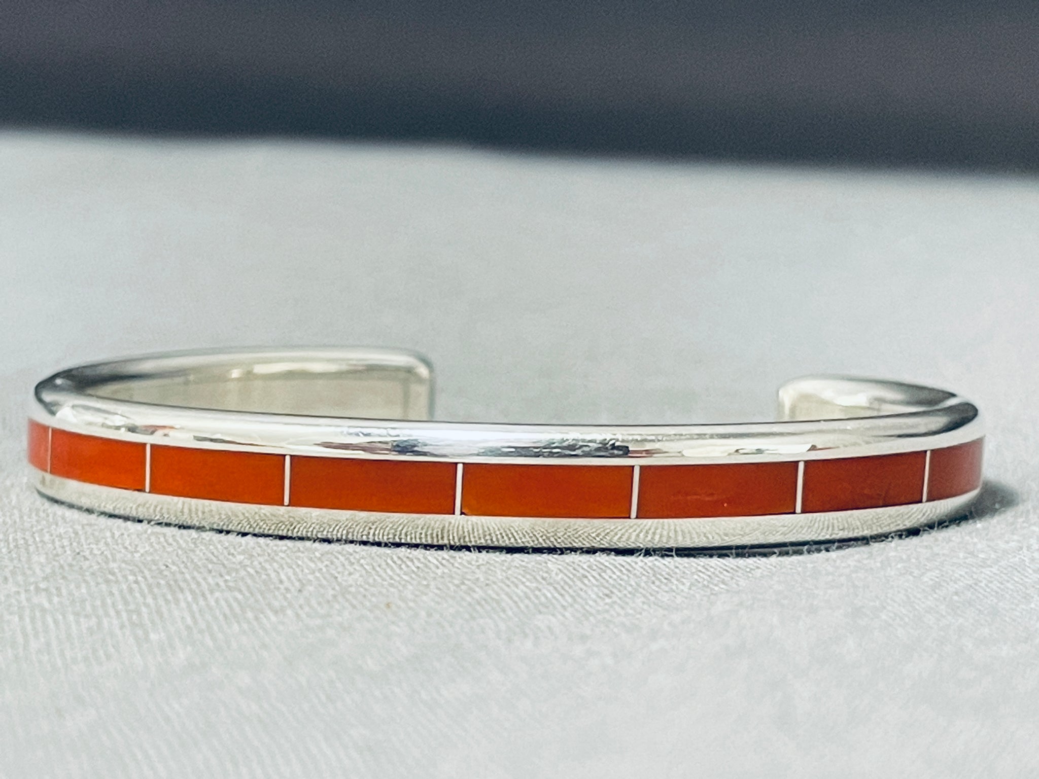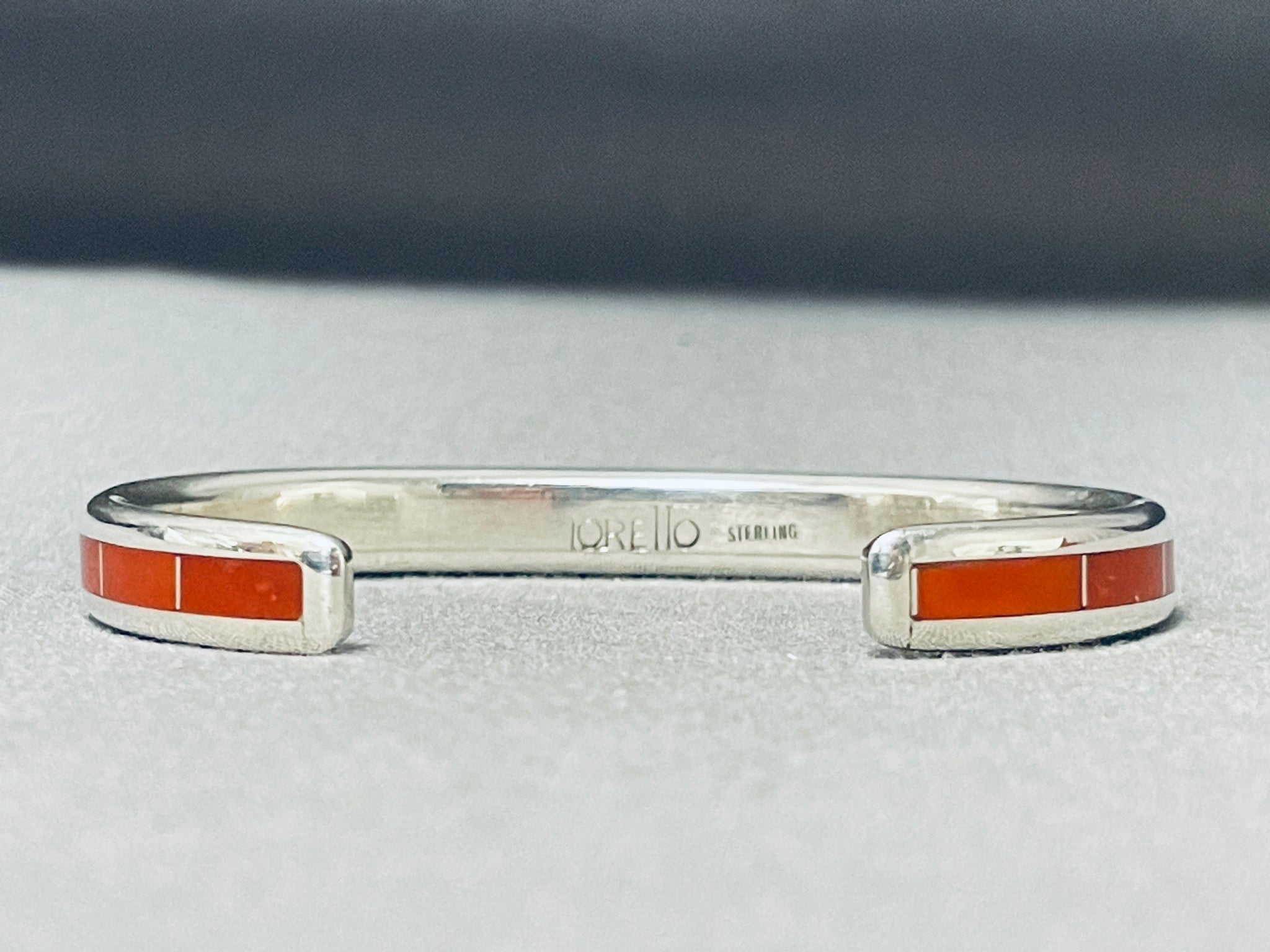 Larry Loretto Signed Stunning Native American Zuni Coral Sterling Silver Bracelet
