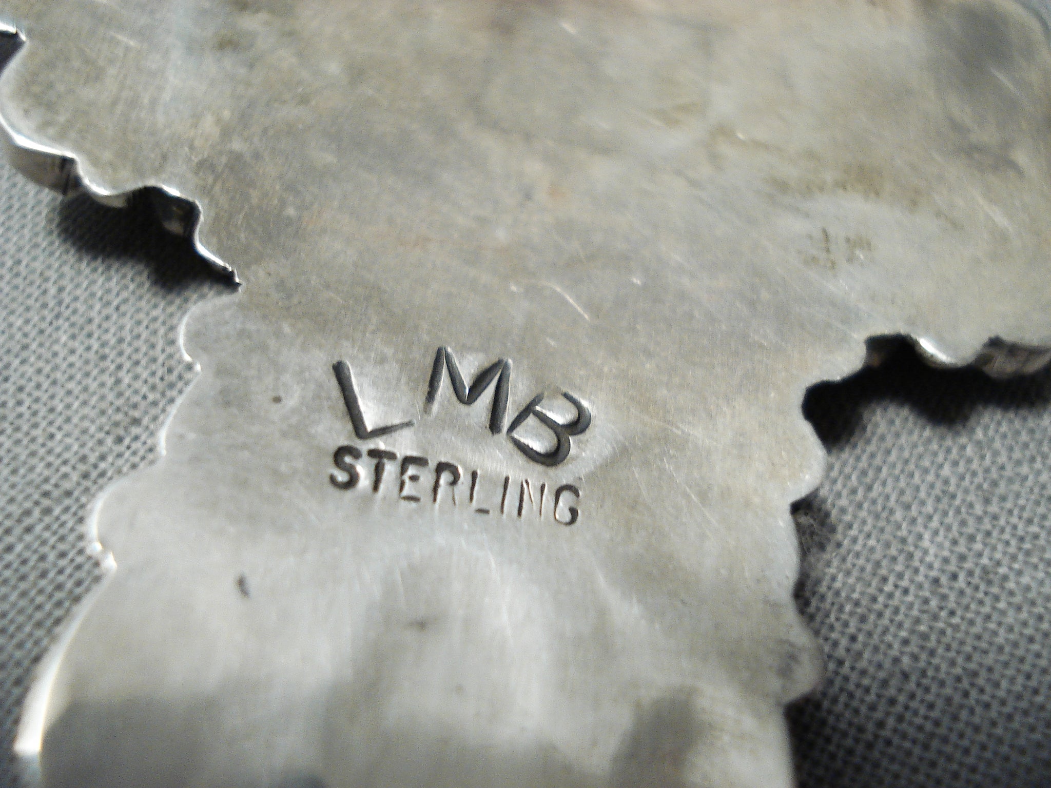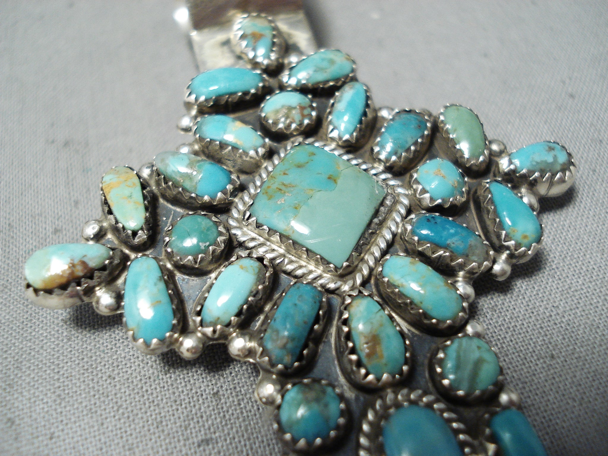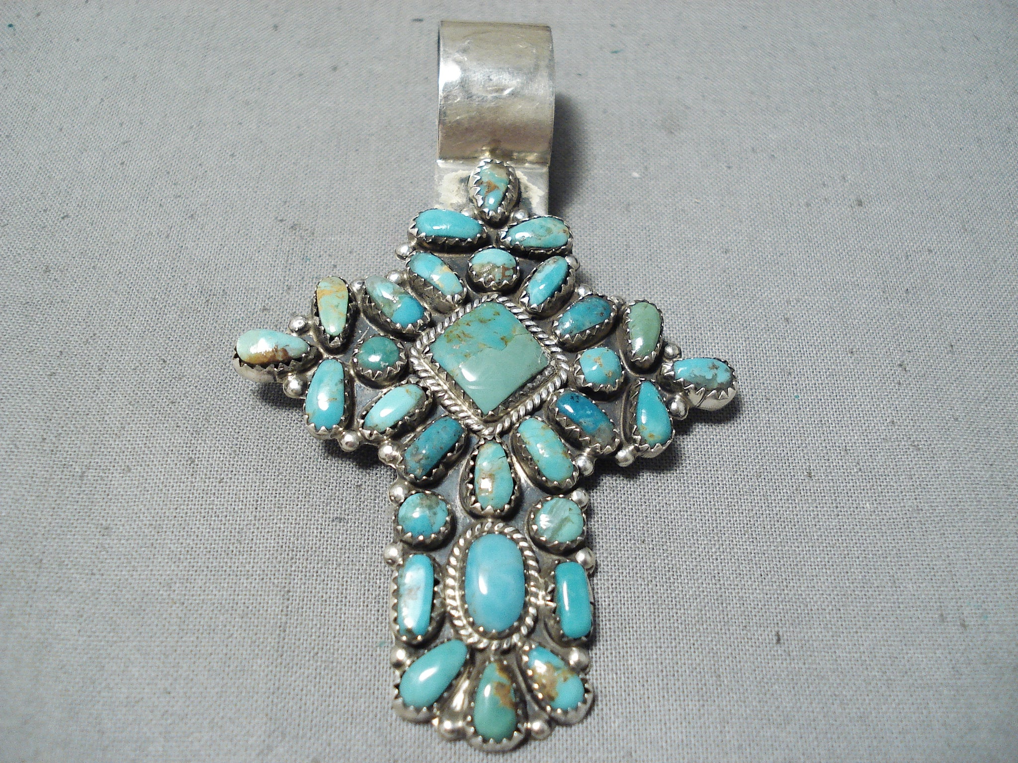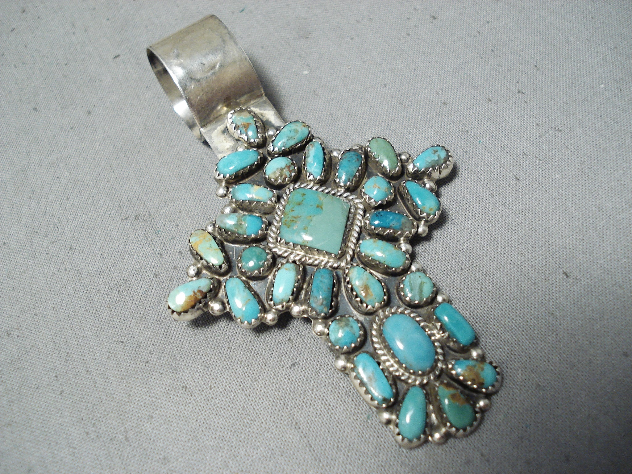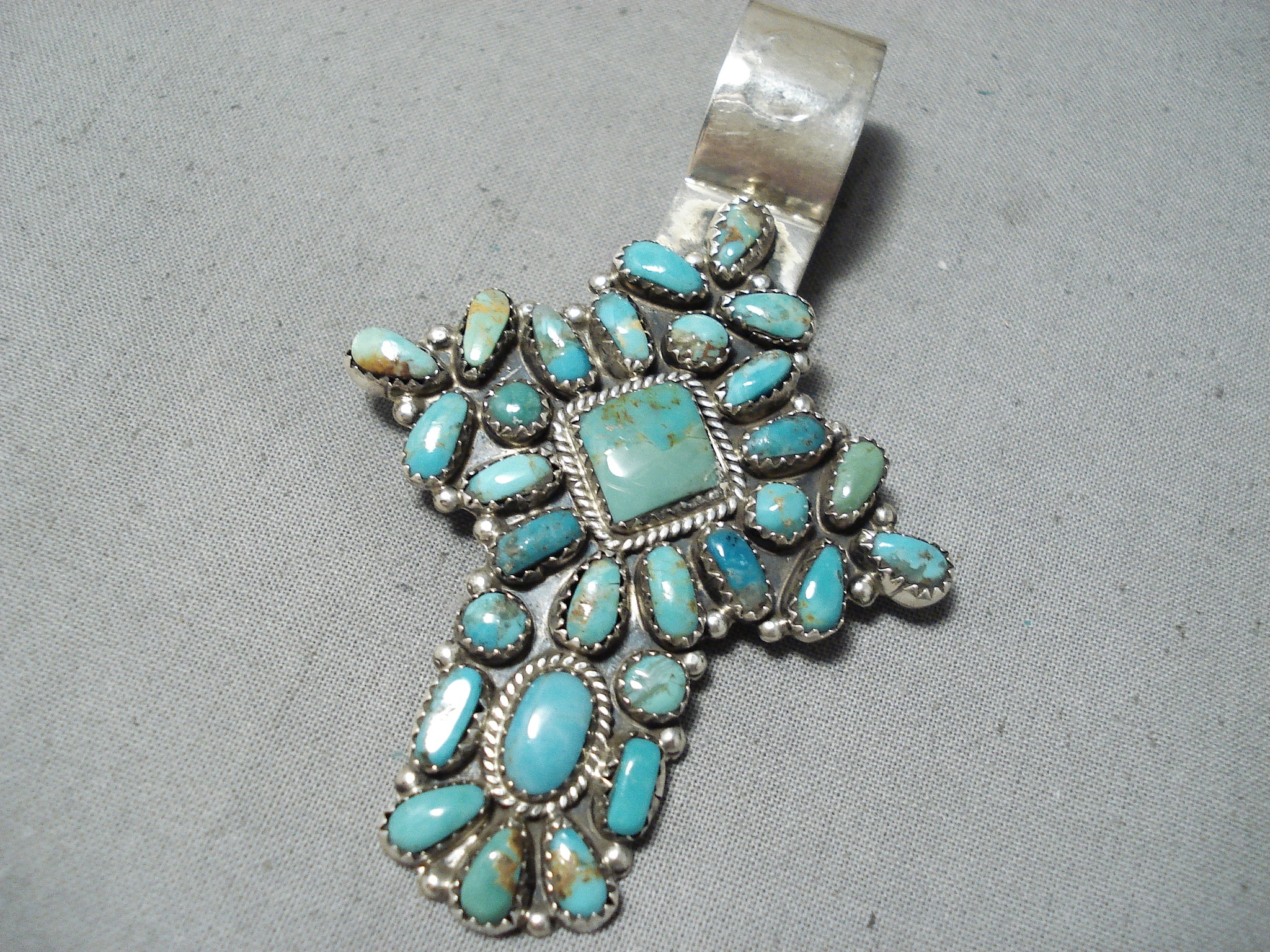 Larry Moses Begay Vintage Native American Navajo Turquoise Cross Sterling Silver Pendant