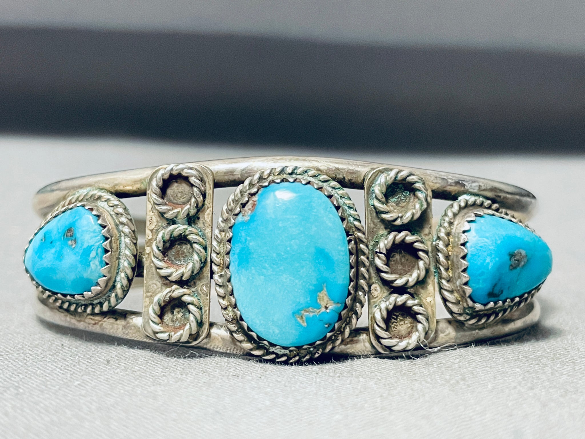 Lasso Love Vintage Native American Navajo Turquoise Sterling Silver Bracelet Old