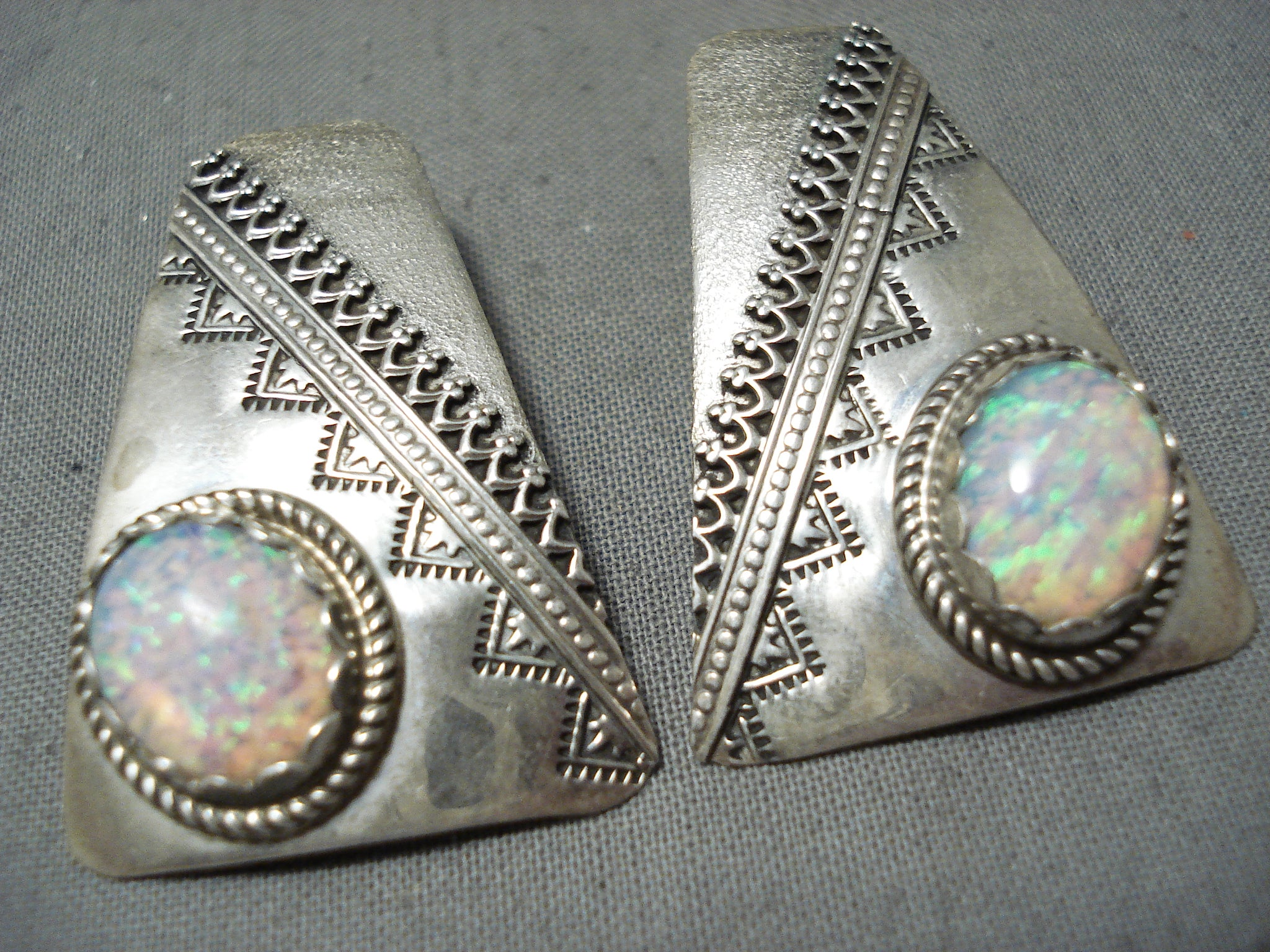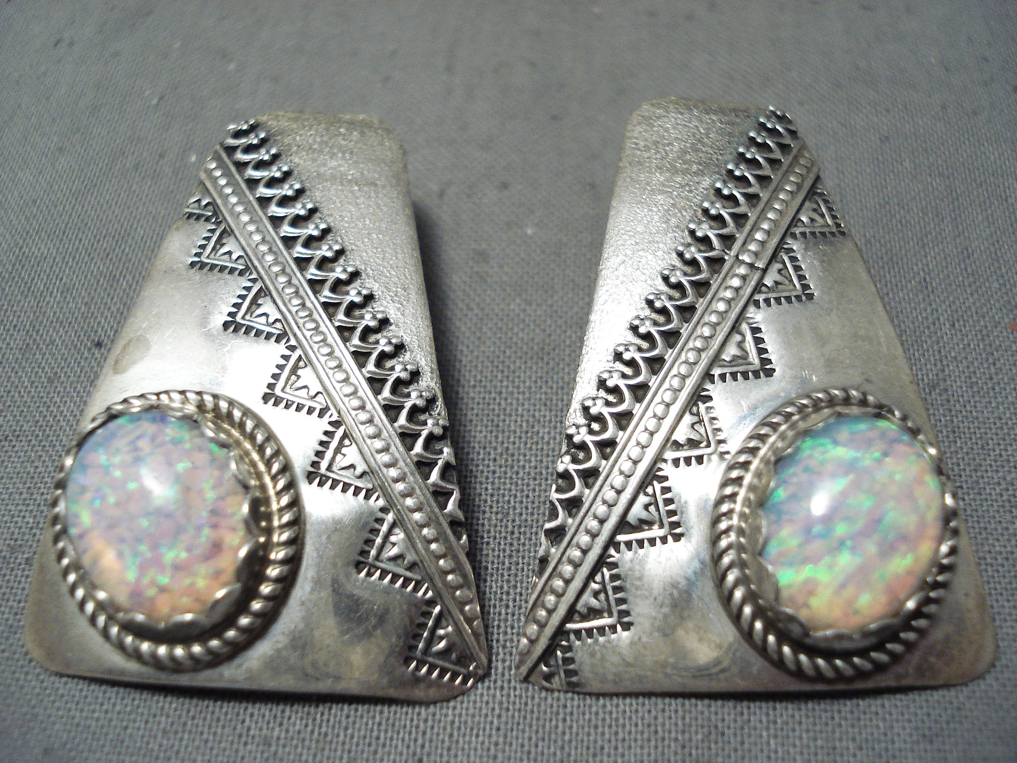 Lea Damon Stunning Navajo Opal Sterling Silver Earrings Native American