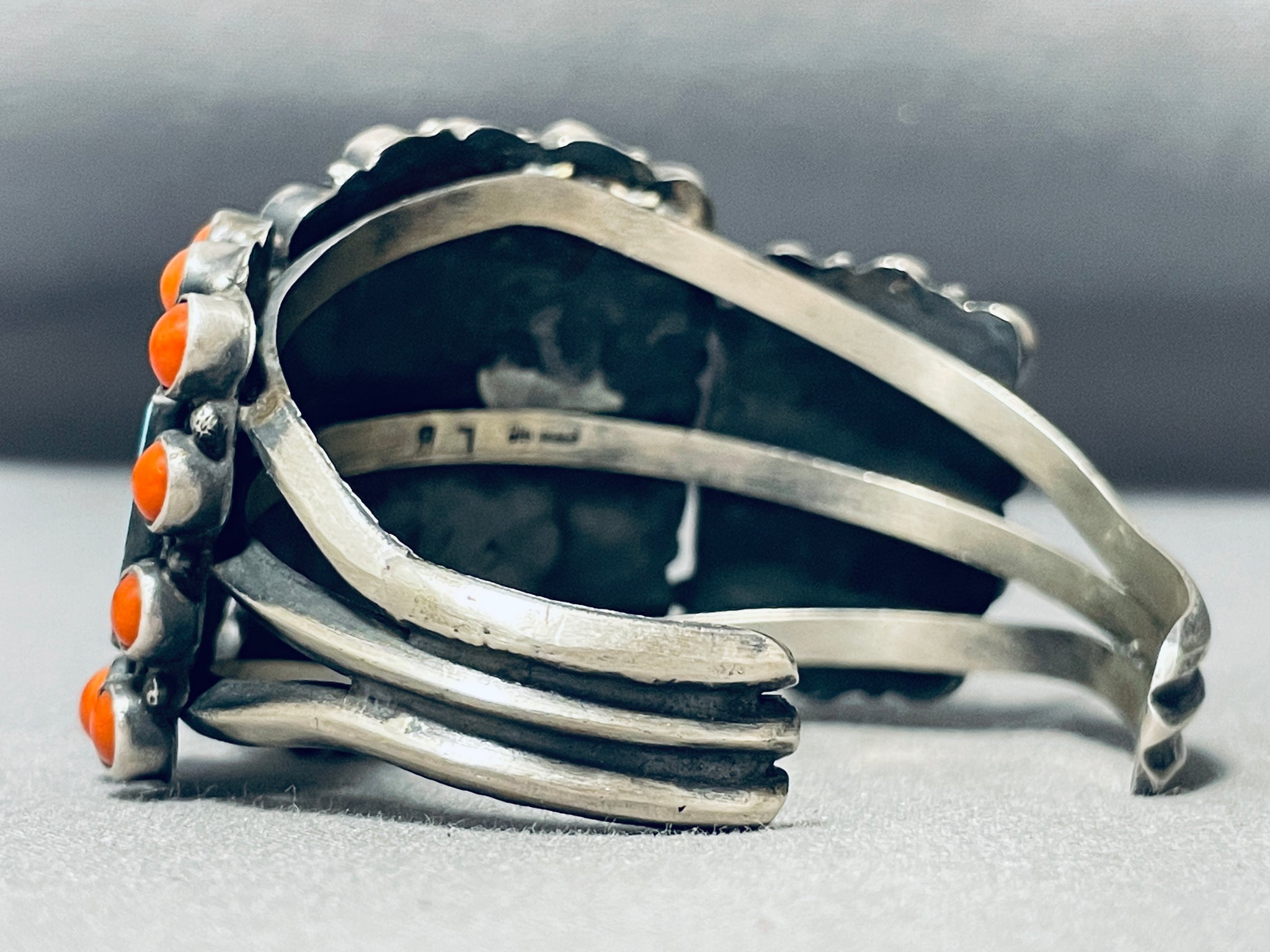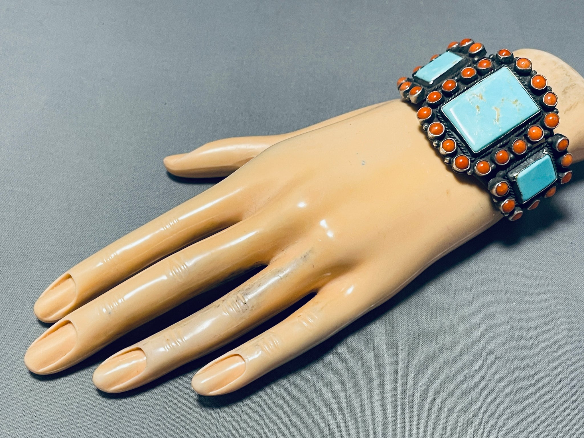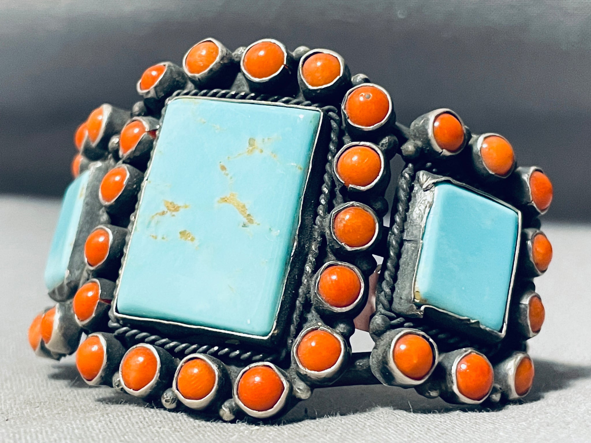 Lee Brown Vintage Native American Navajo Squared #8 Turquoise Sterling Silver Bracelet