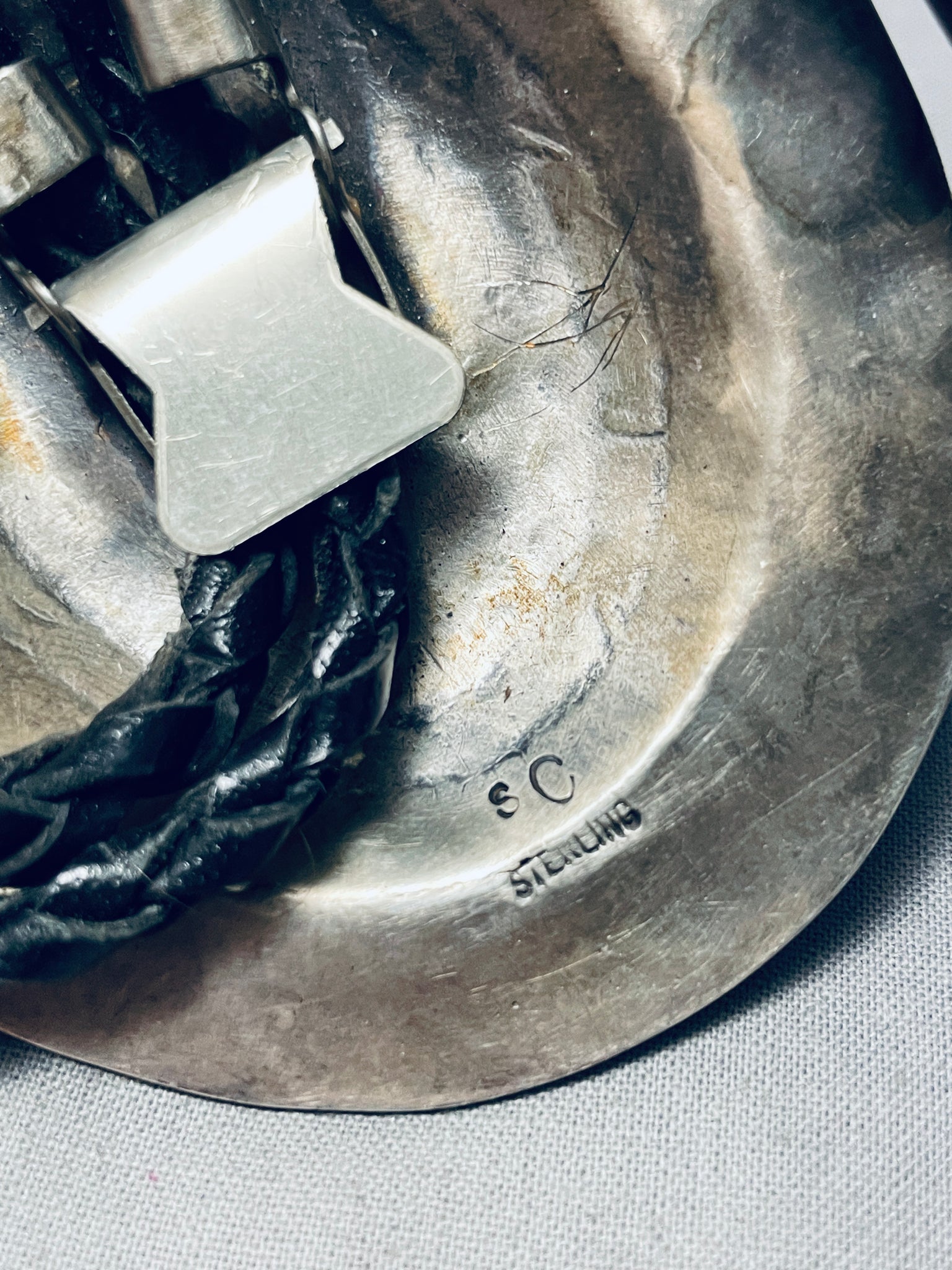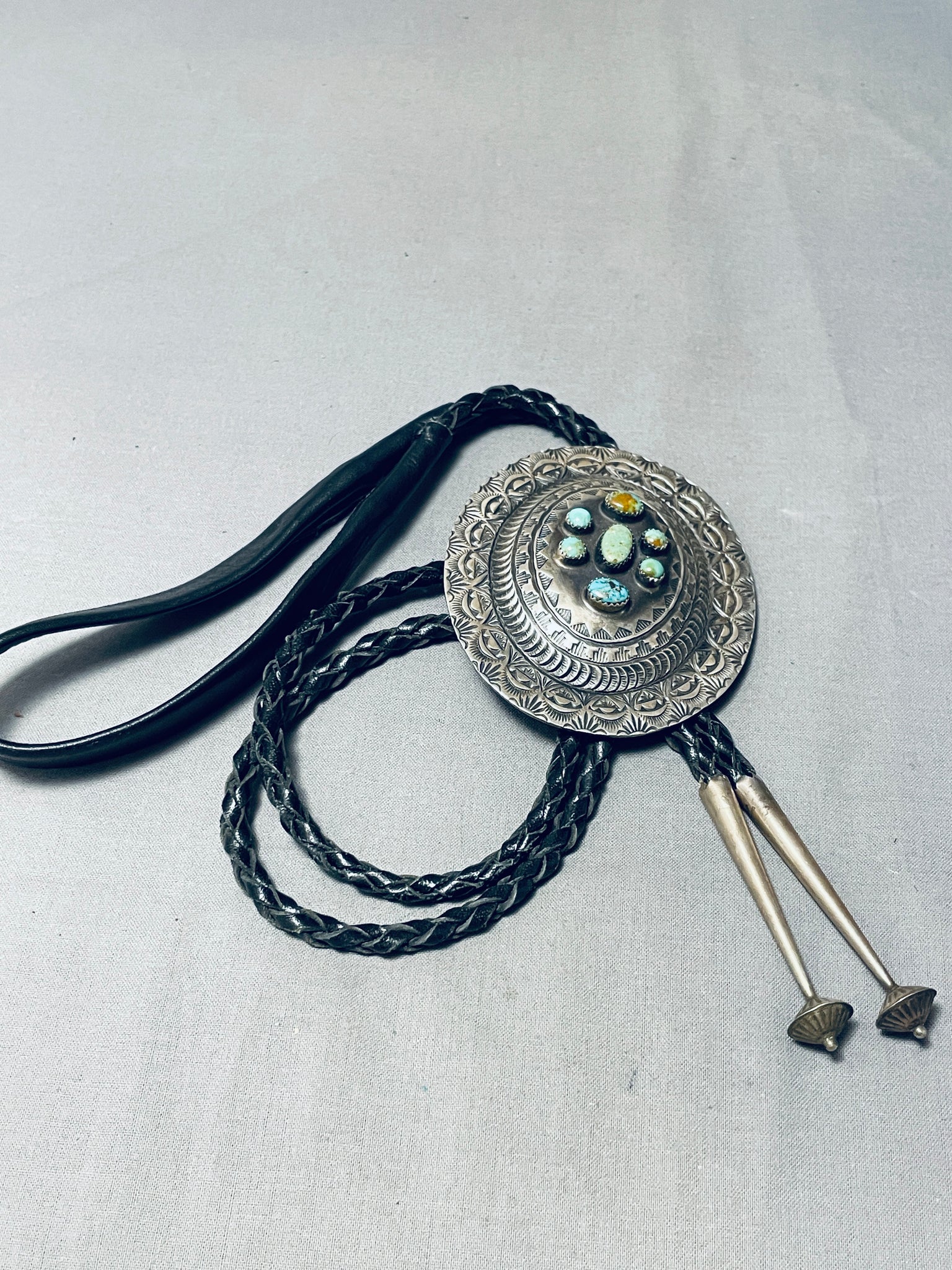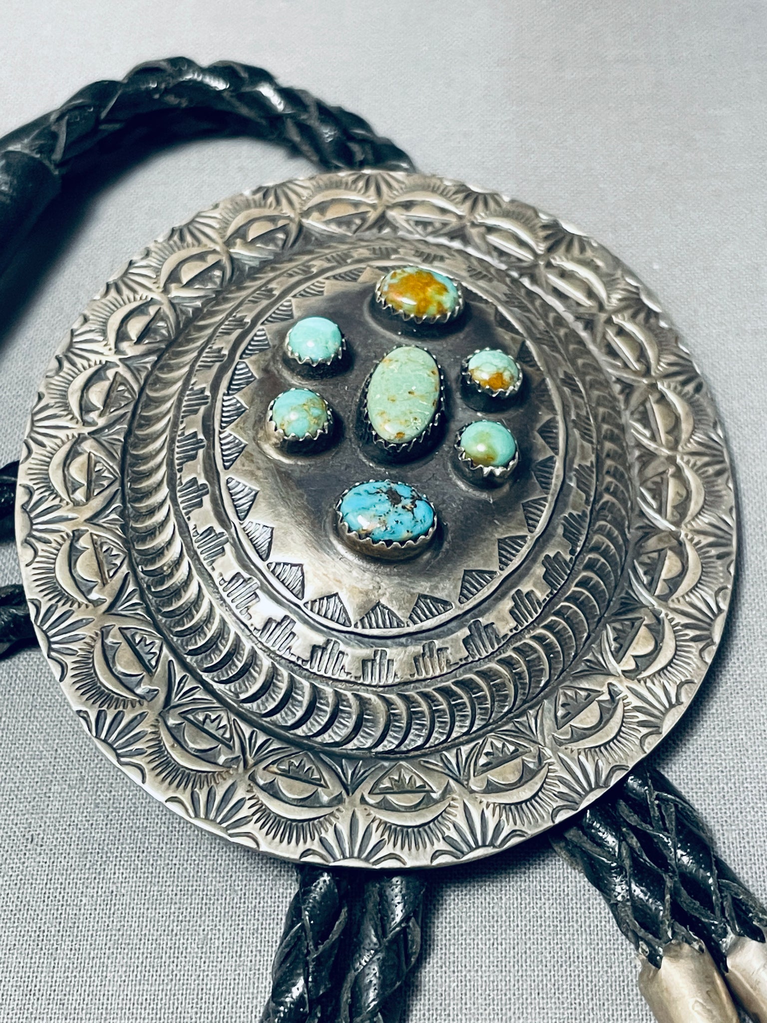 Level Above Concho Vintage Native American Navajo Green Turquoise Sterling Silver Bolo Tie