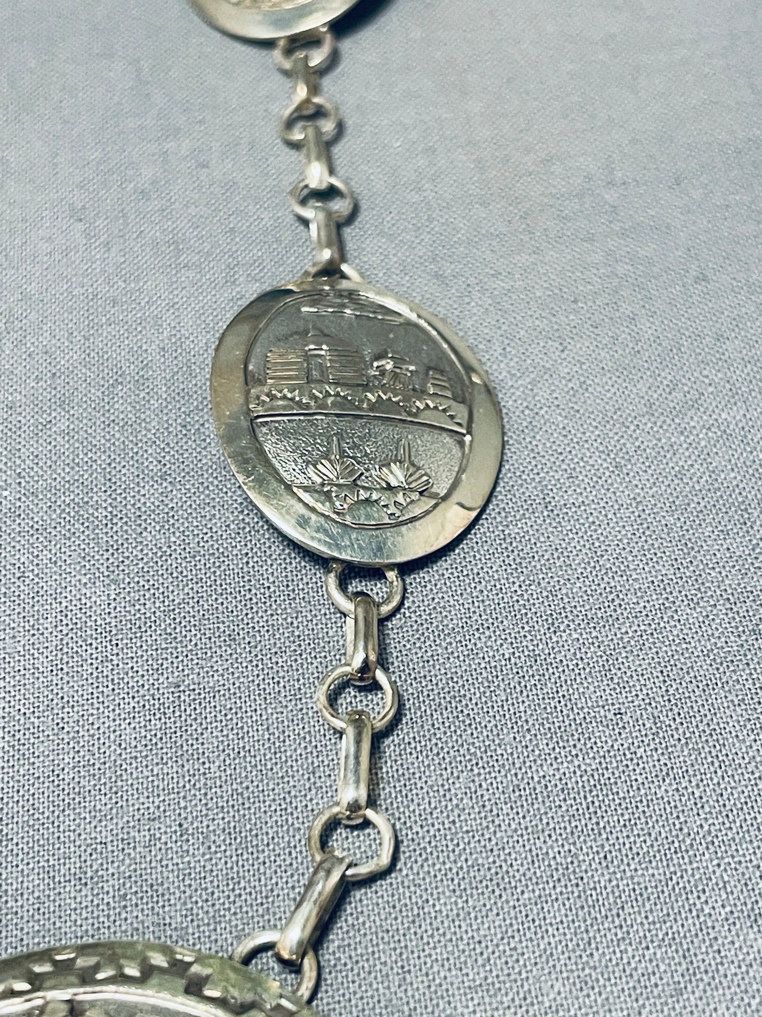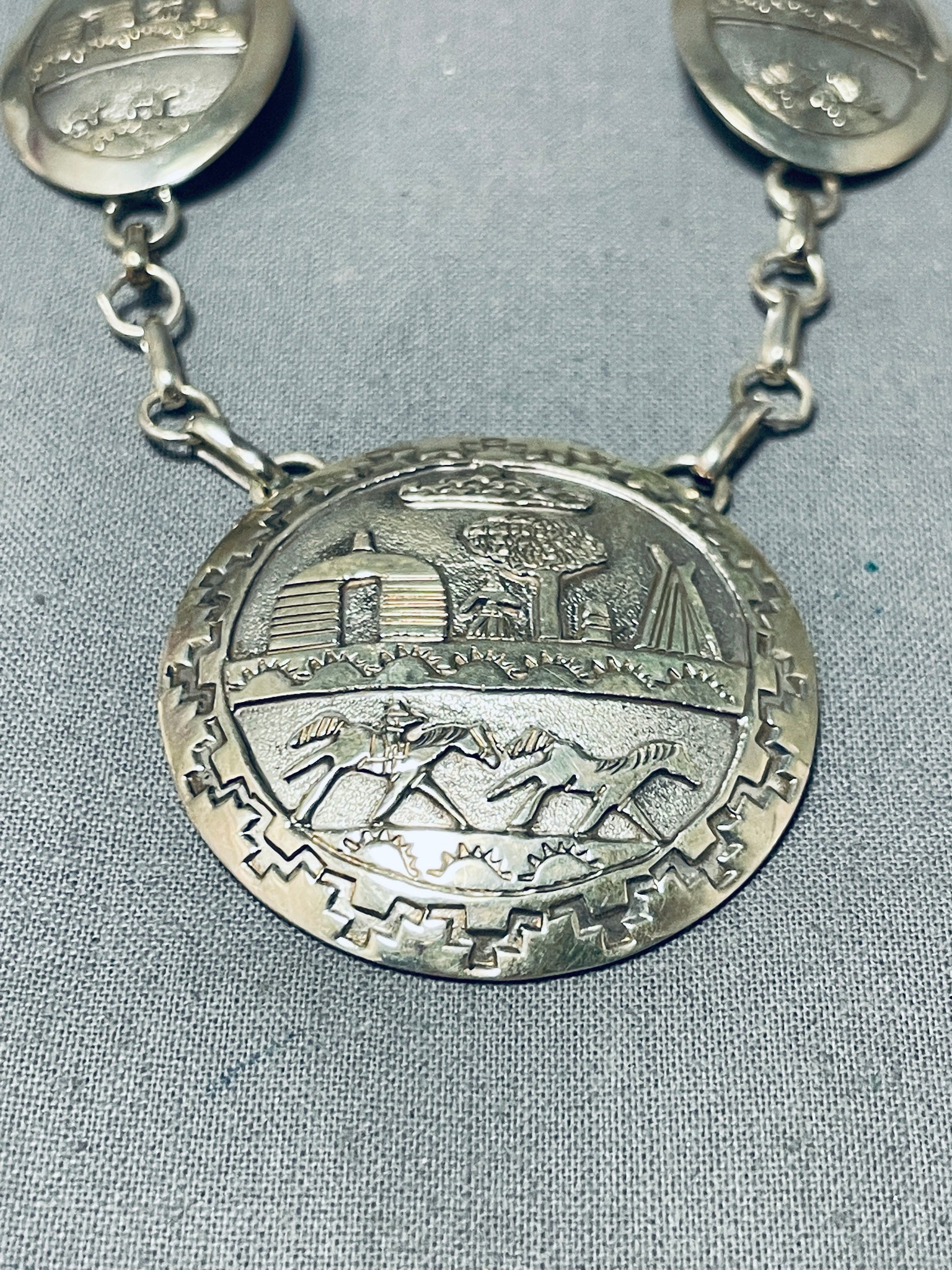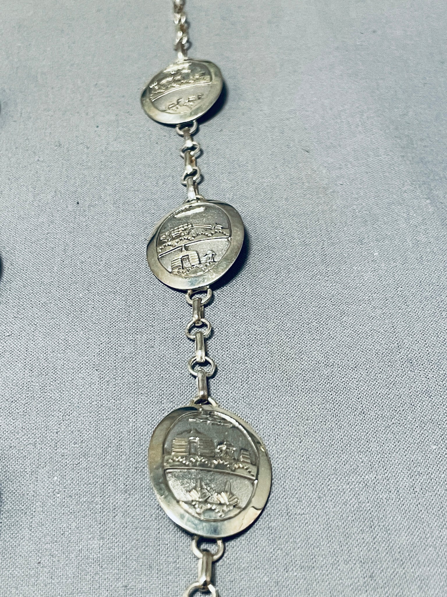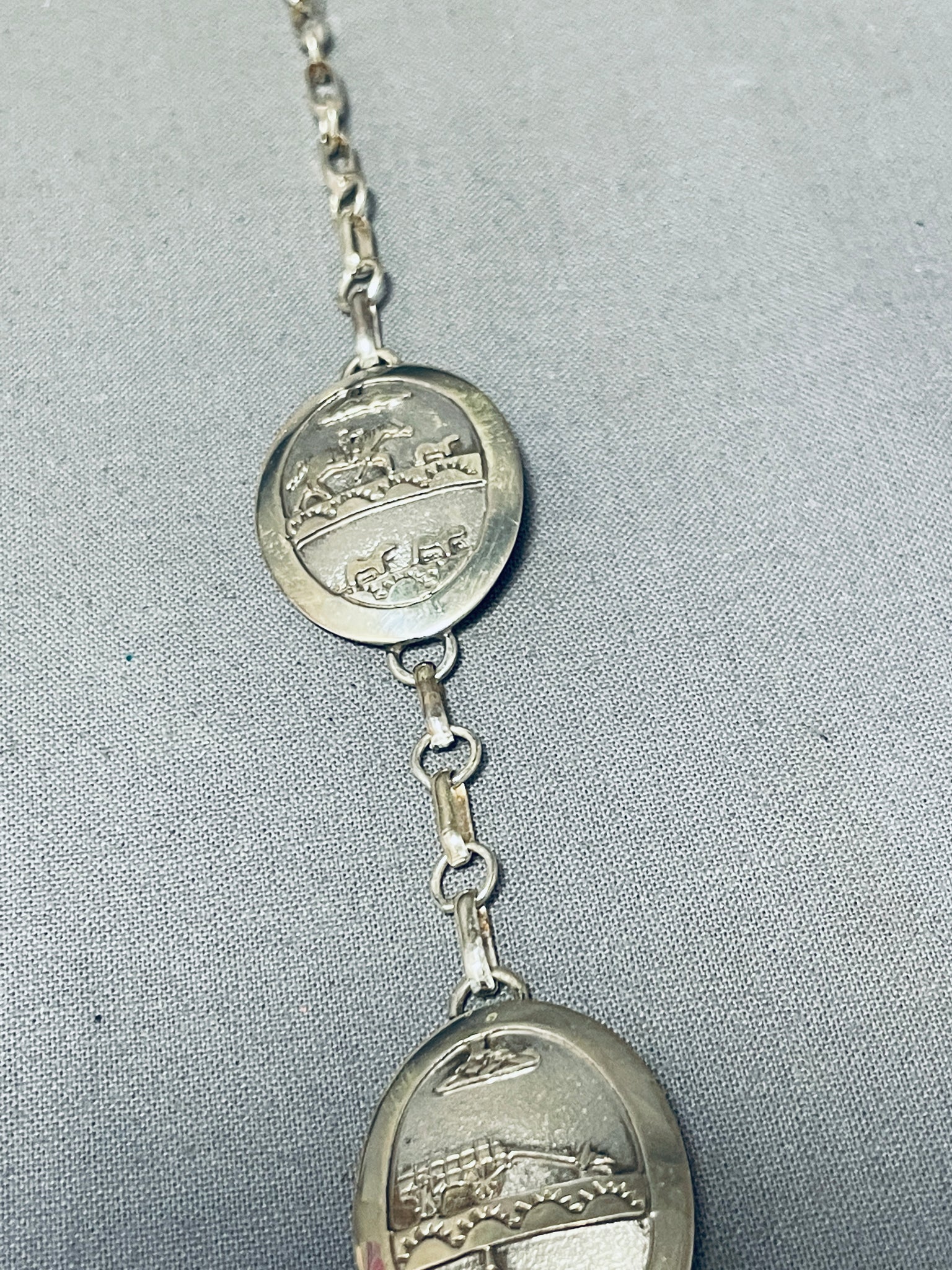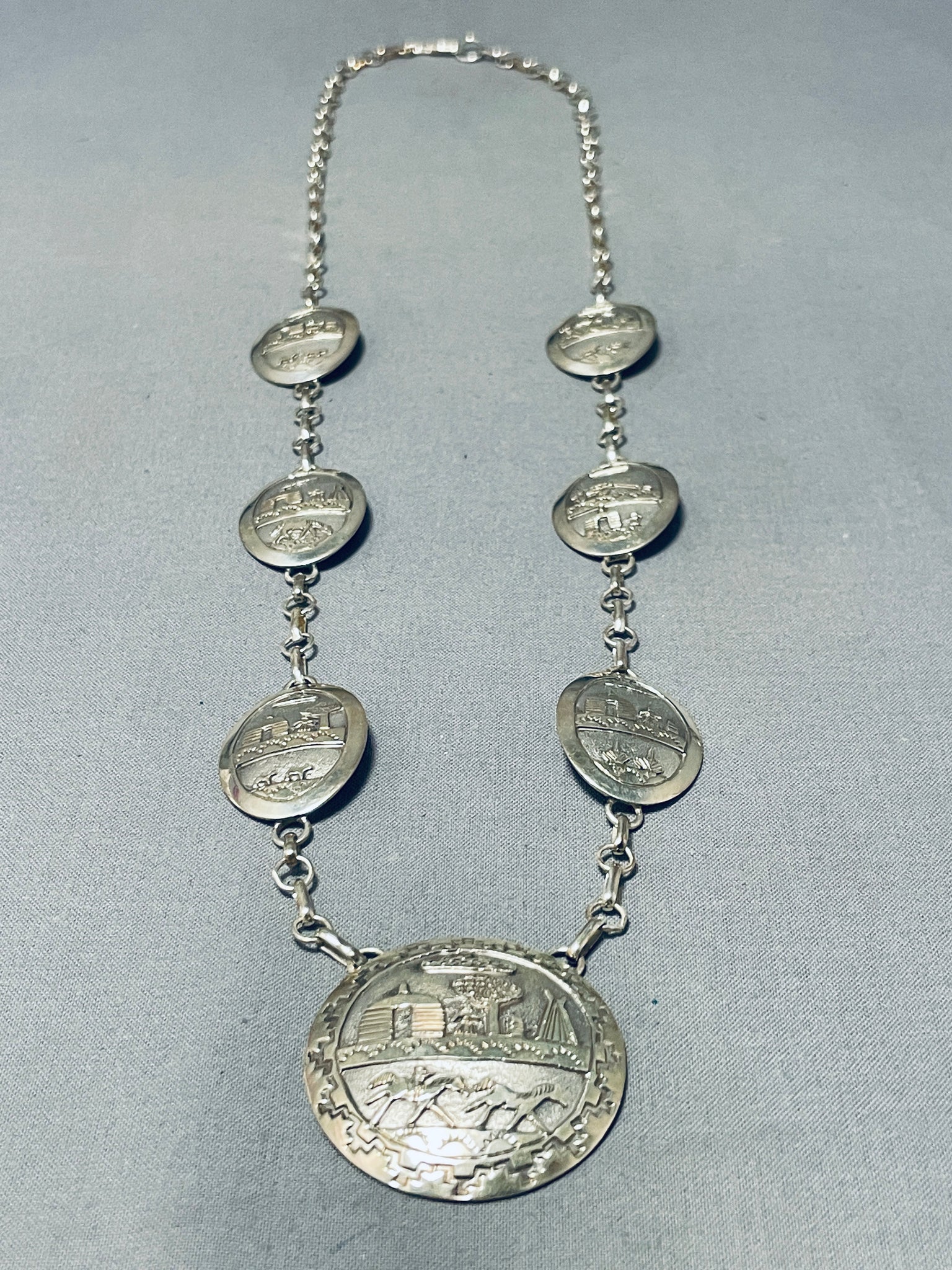 Longer Quite Detailed Vintage Native American Navajo Sterling Silver Necklace- Amazing