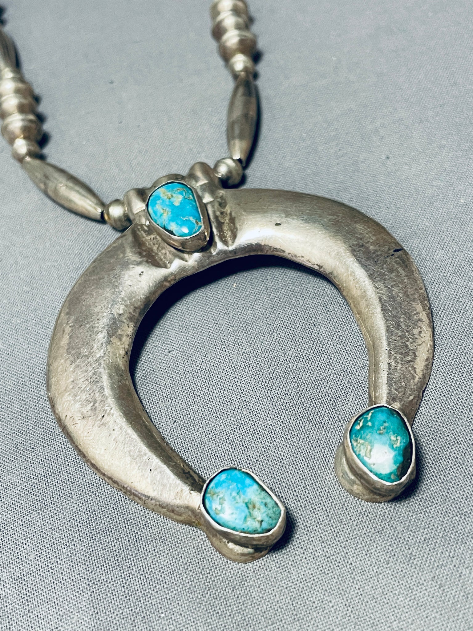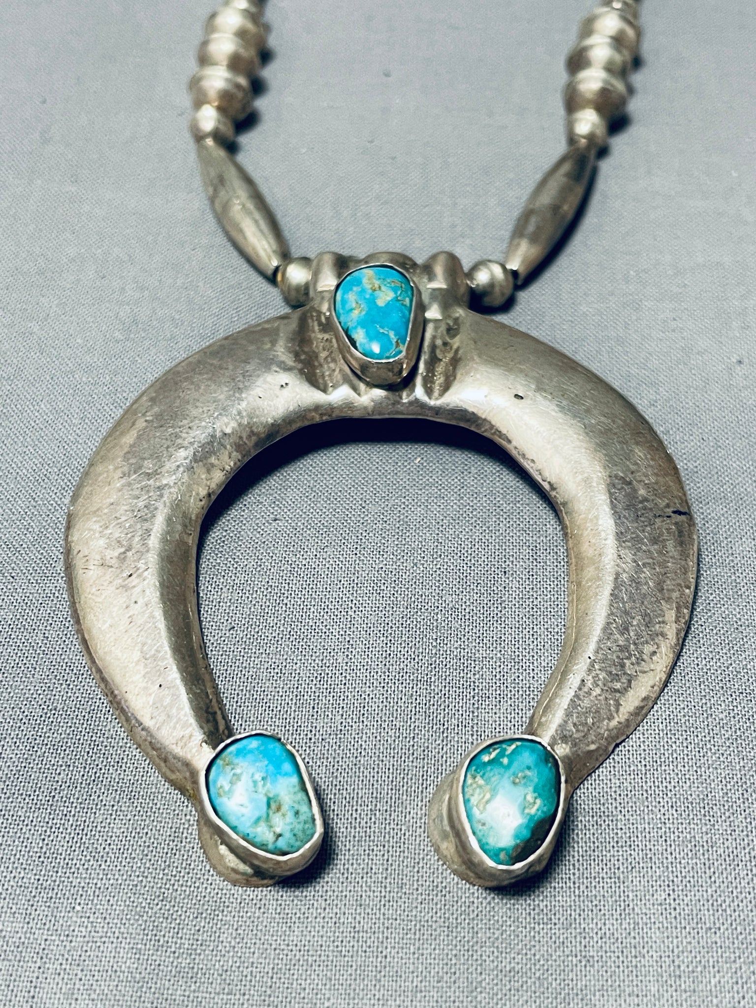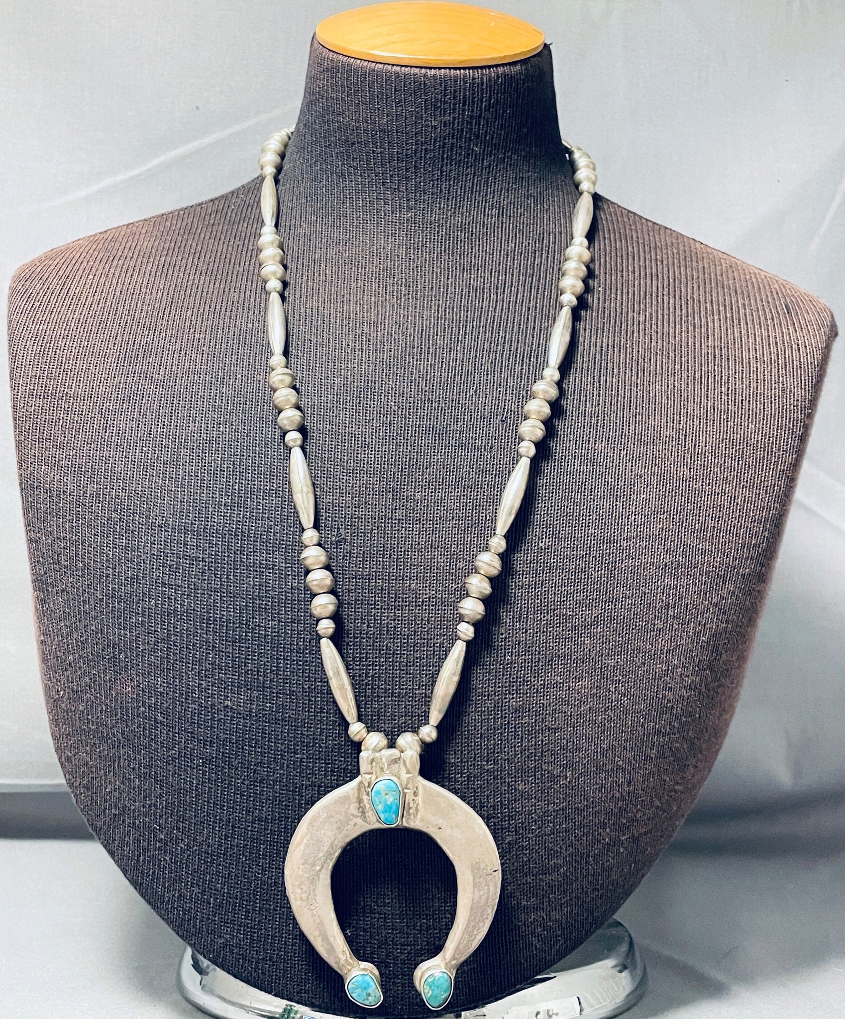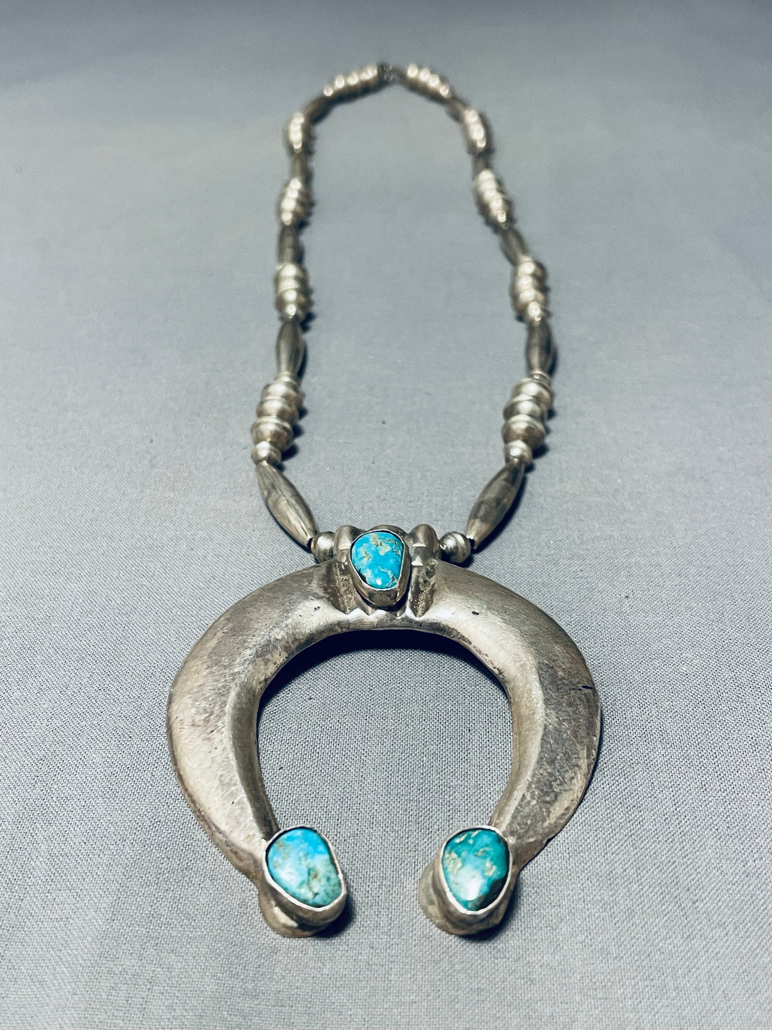 Longer Vintage Native American Navajo Turquoise Sterling Silver Necklace