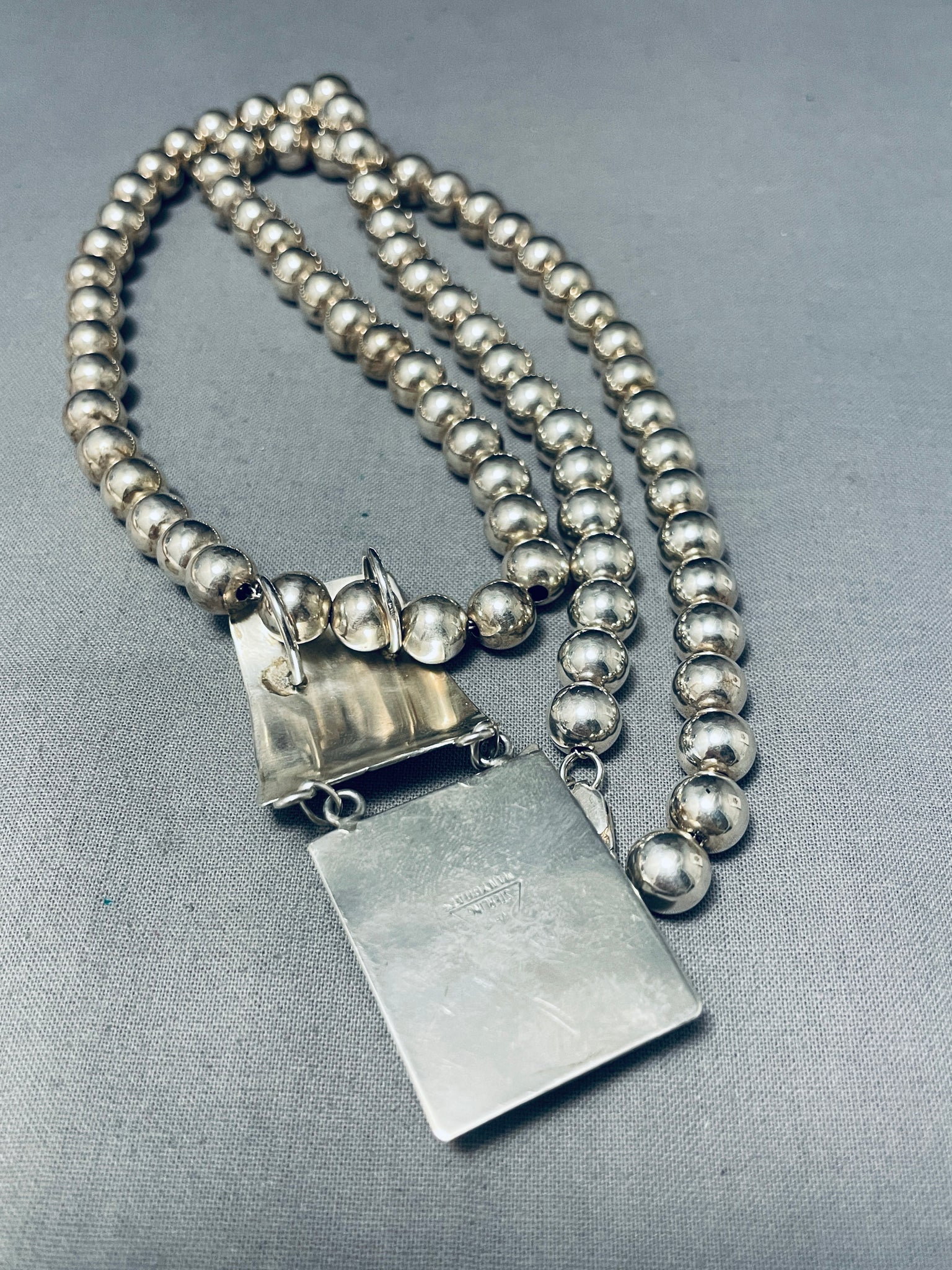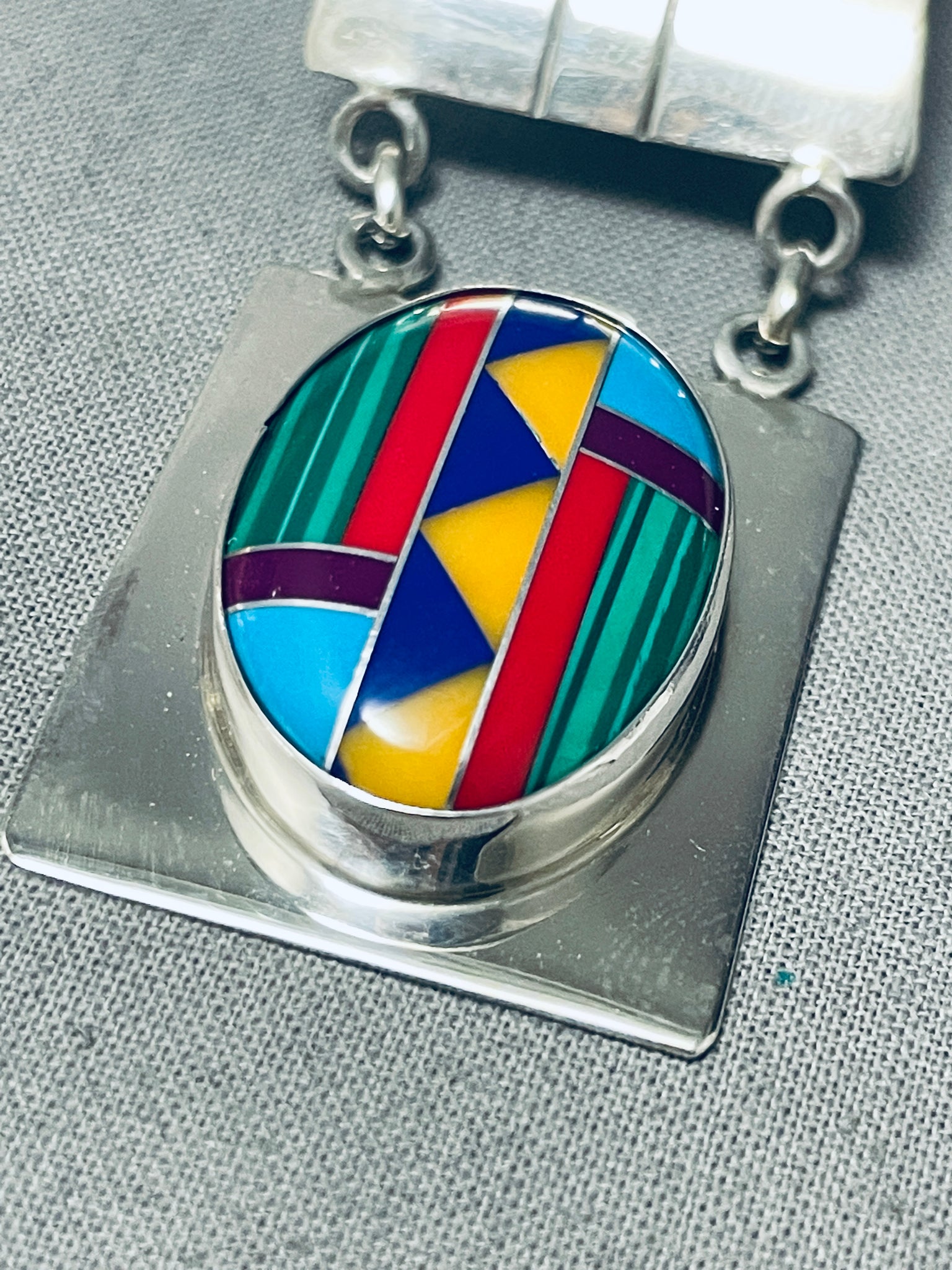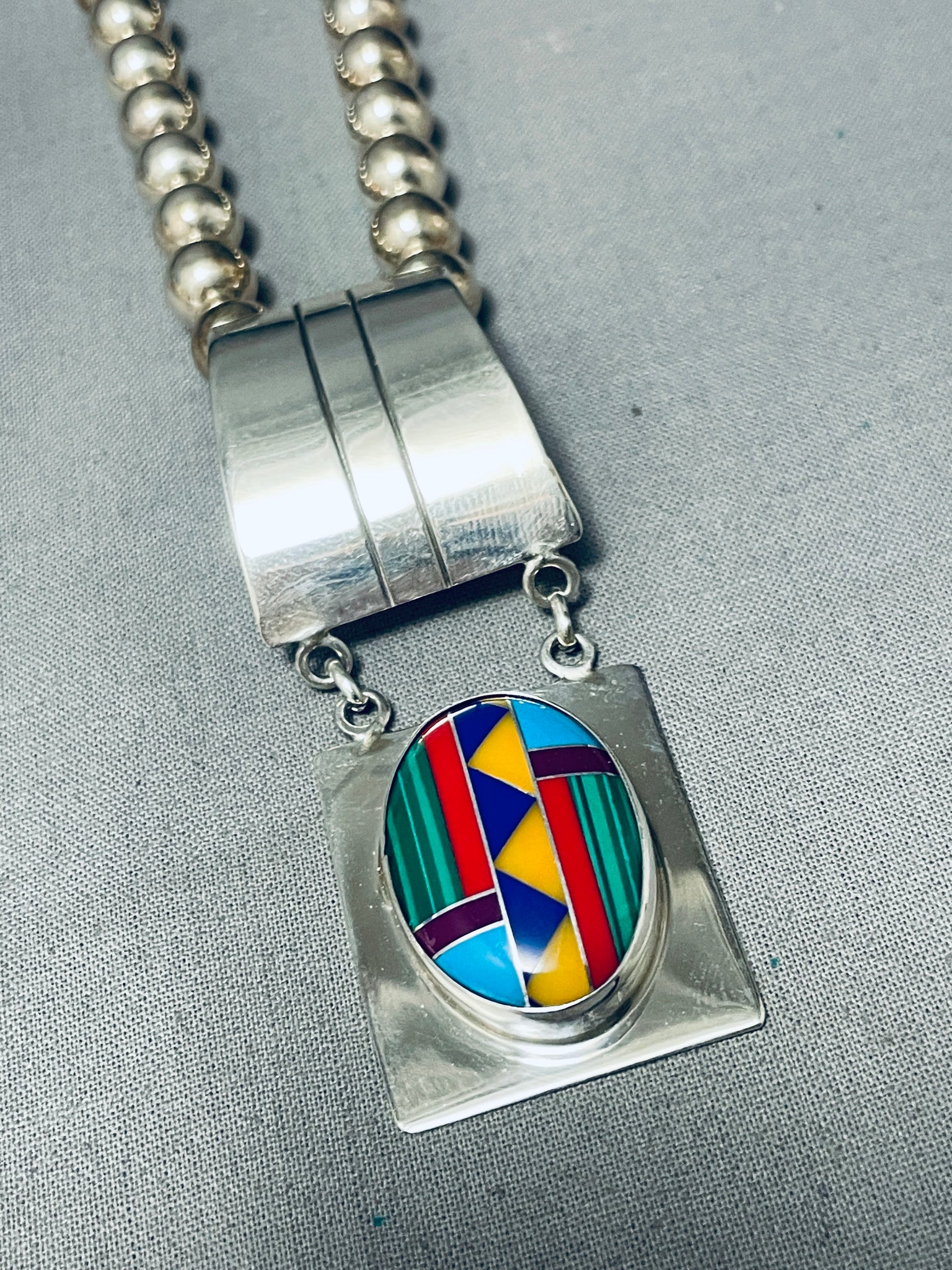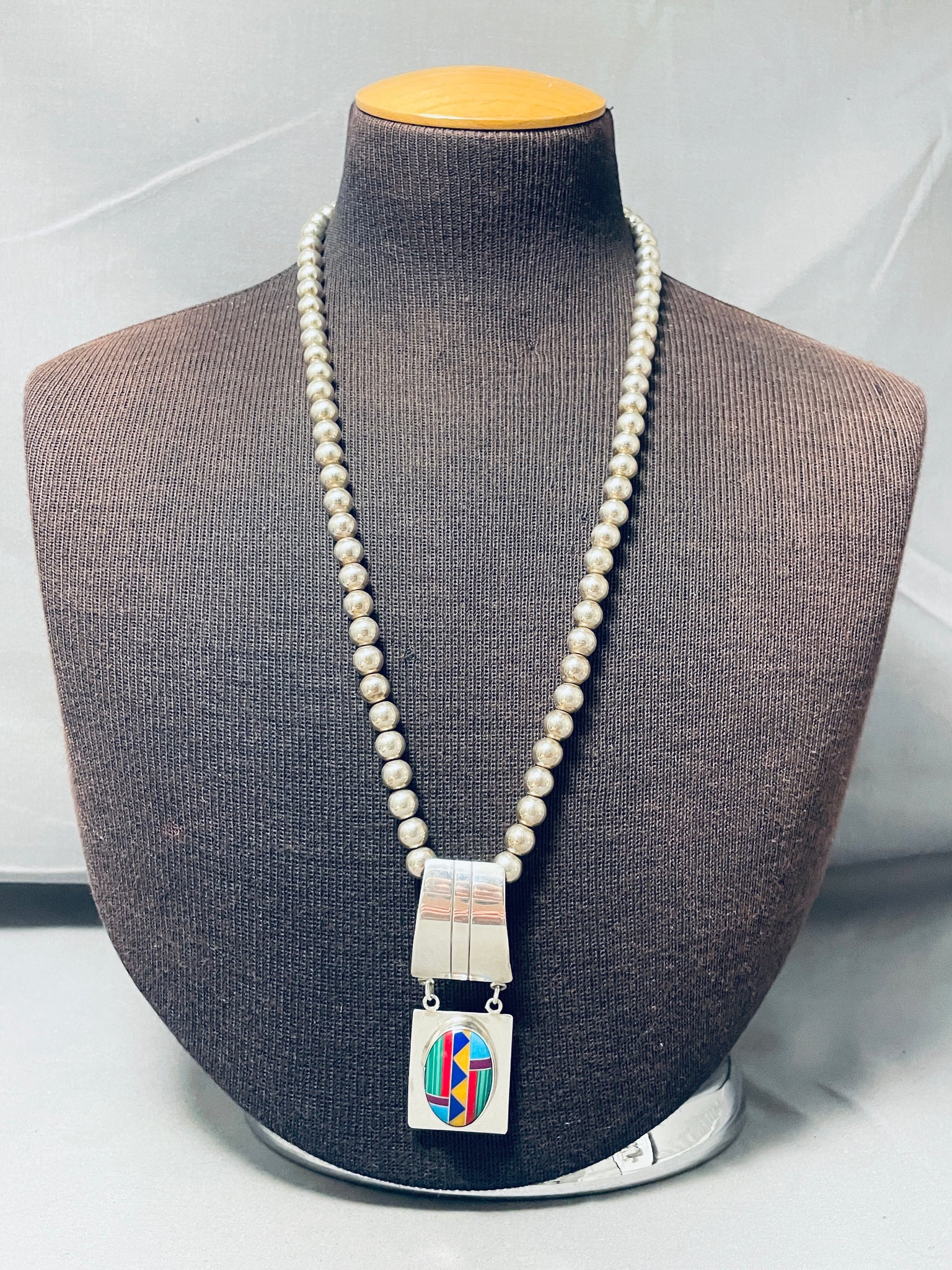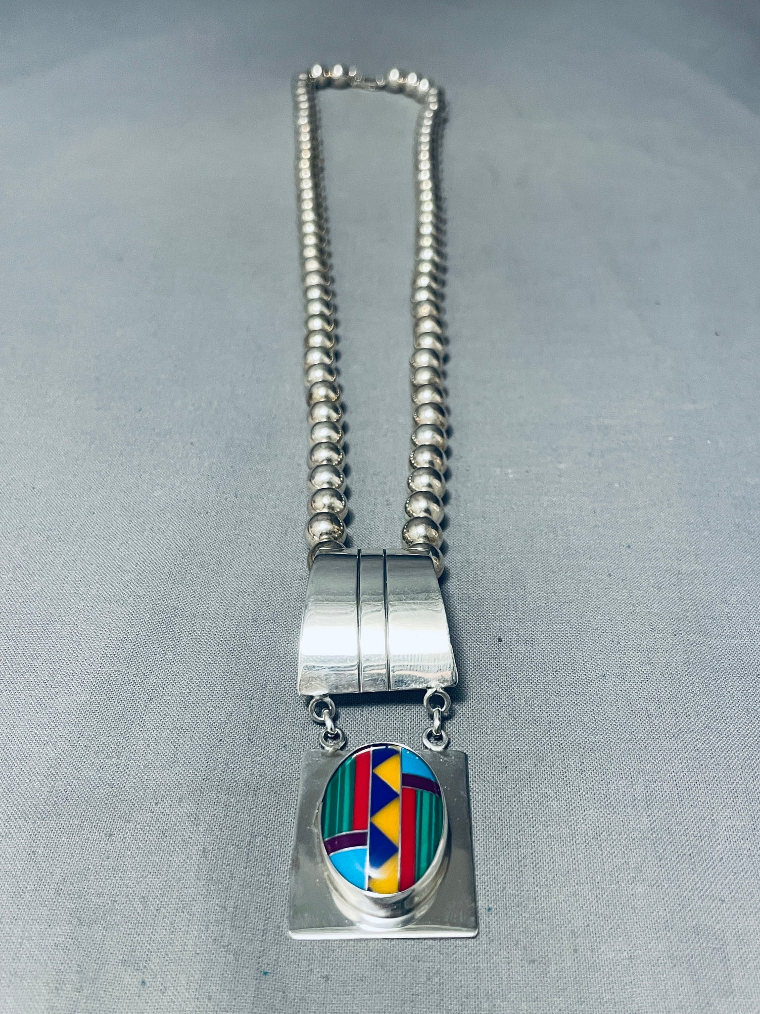 Longer Vintage Southwest Turquoise Inlay Sterling Silver Necklace