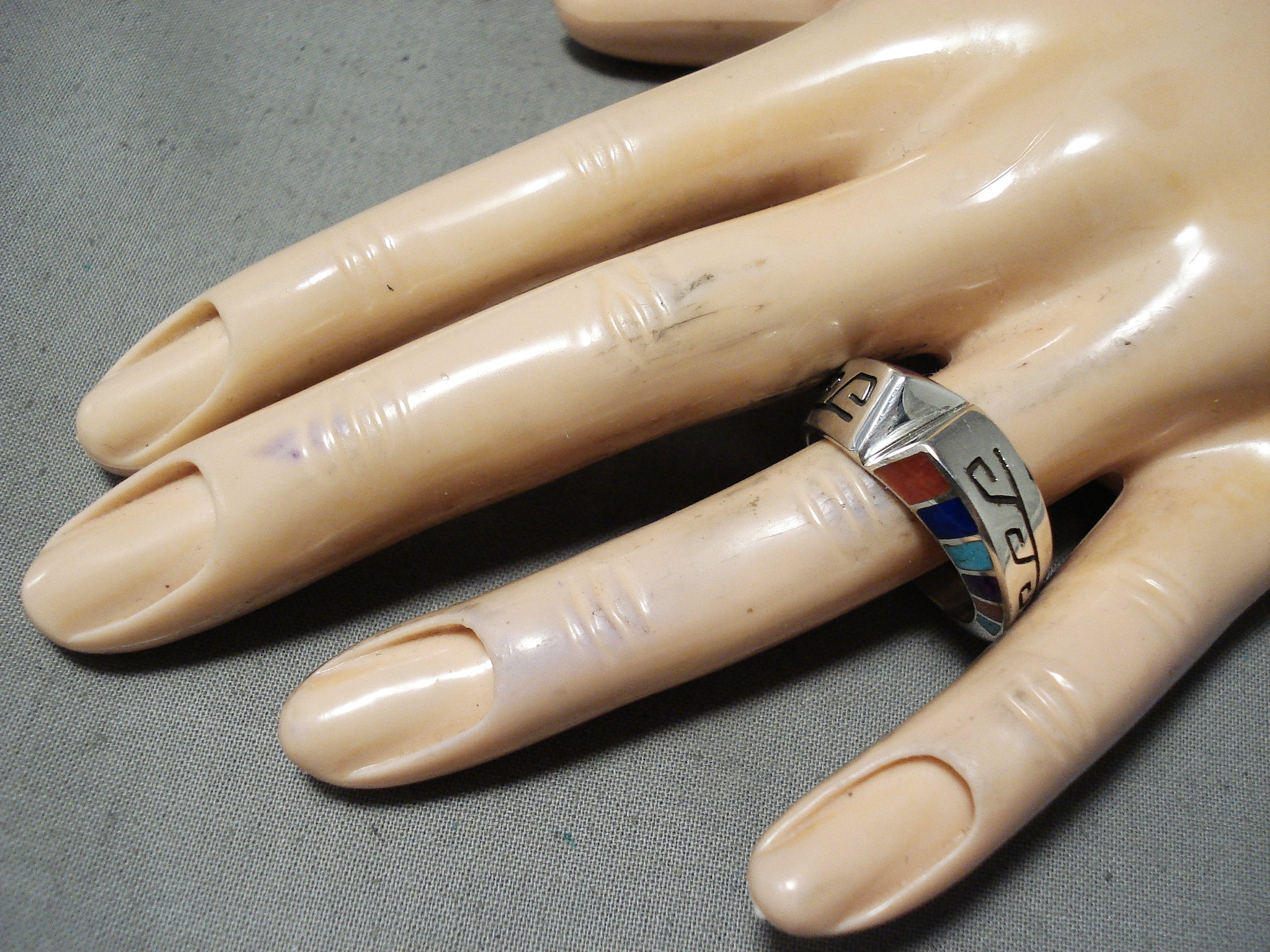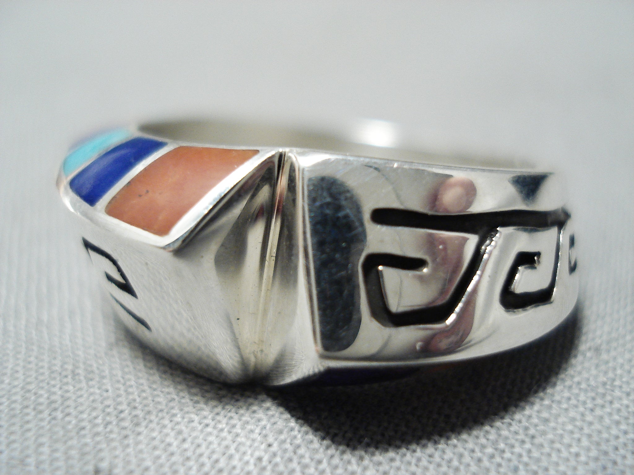 Lonn Parker Native American Navajo Inlay Turquoise Lapis Coral Sterling Silver Ring