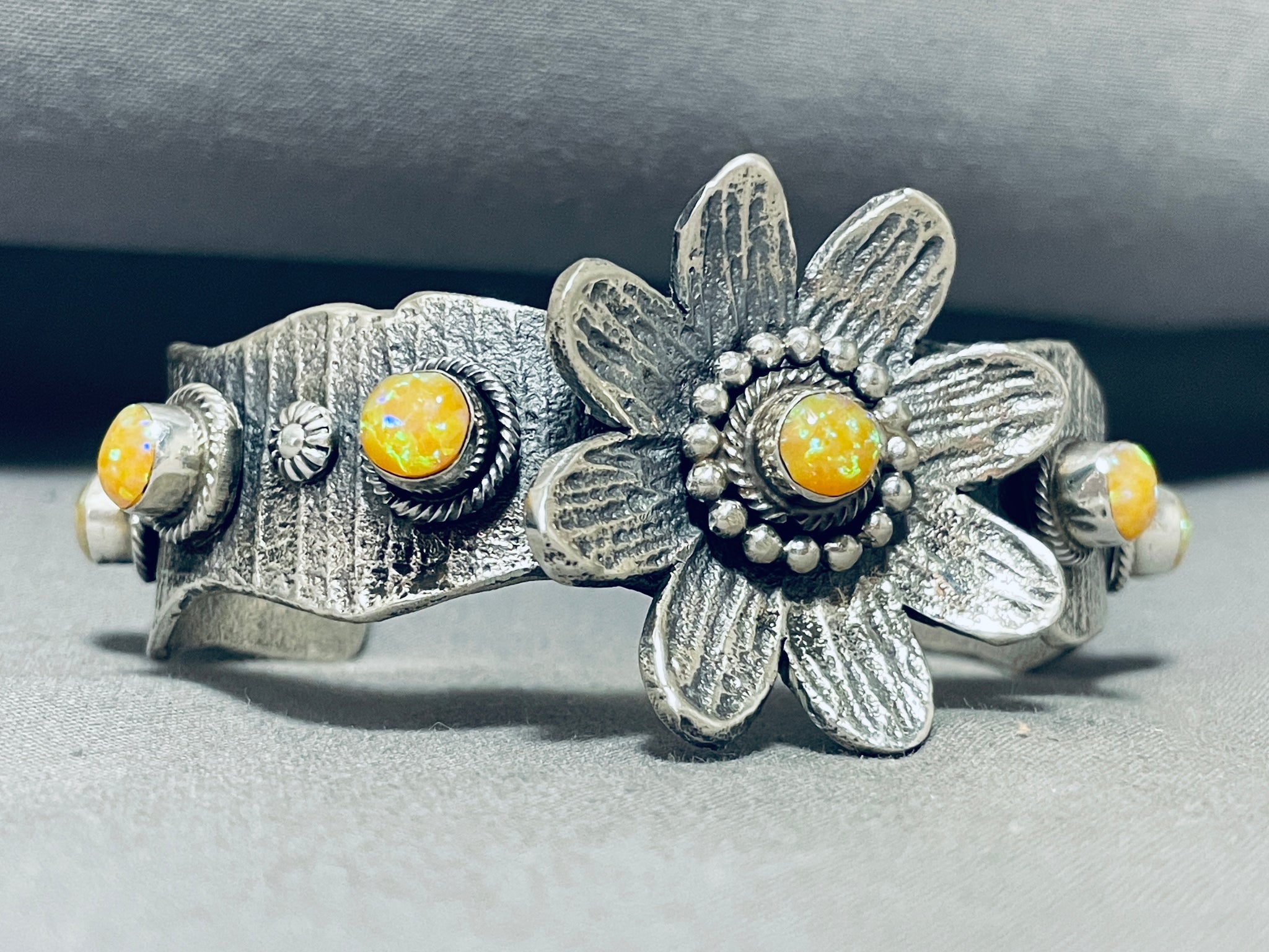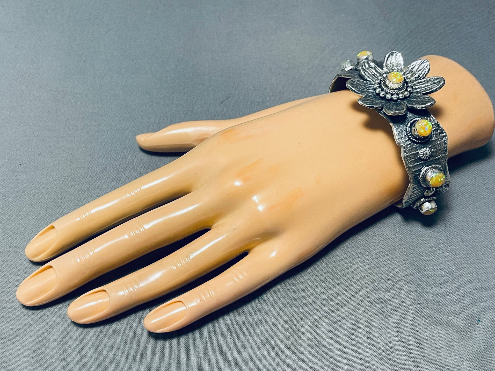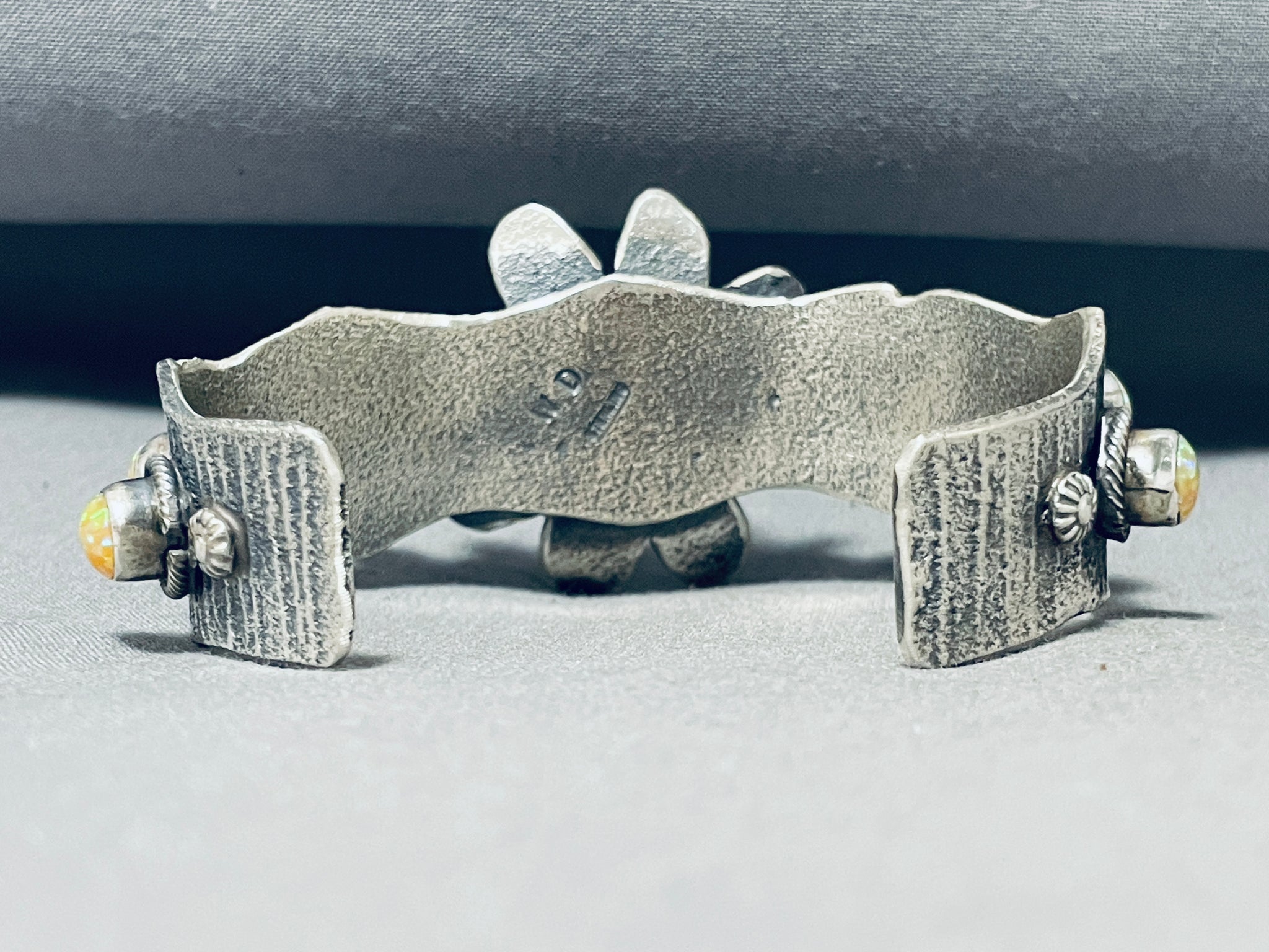 Lovely Native American Navajo Opal Sterling Silver Flower Bracelet