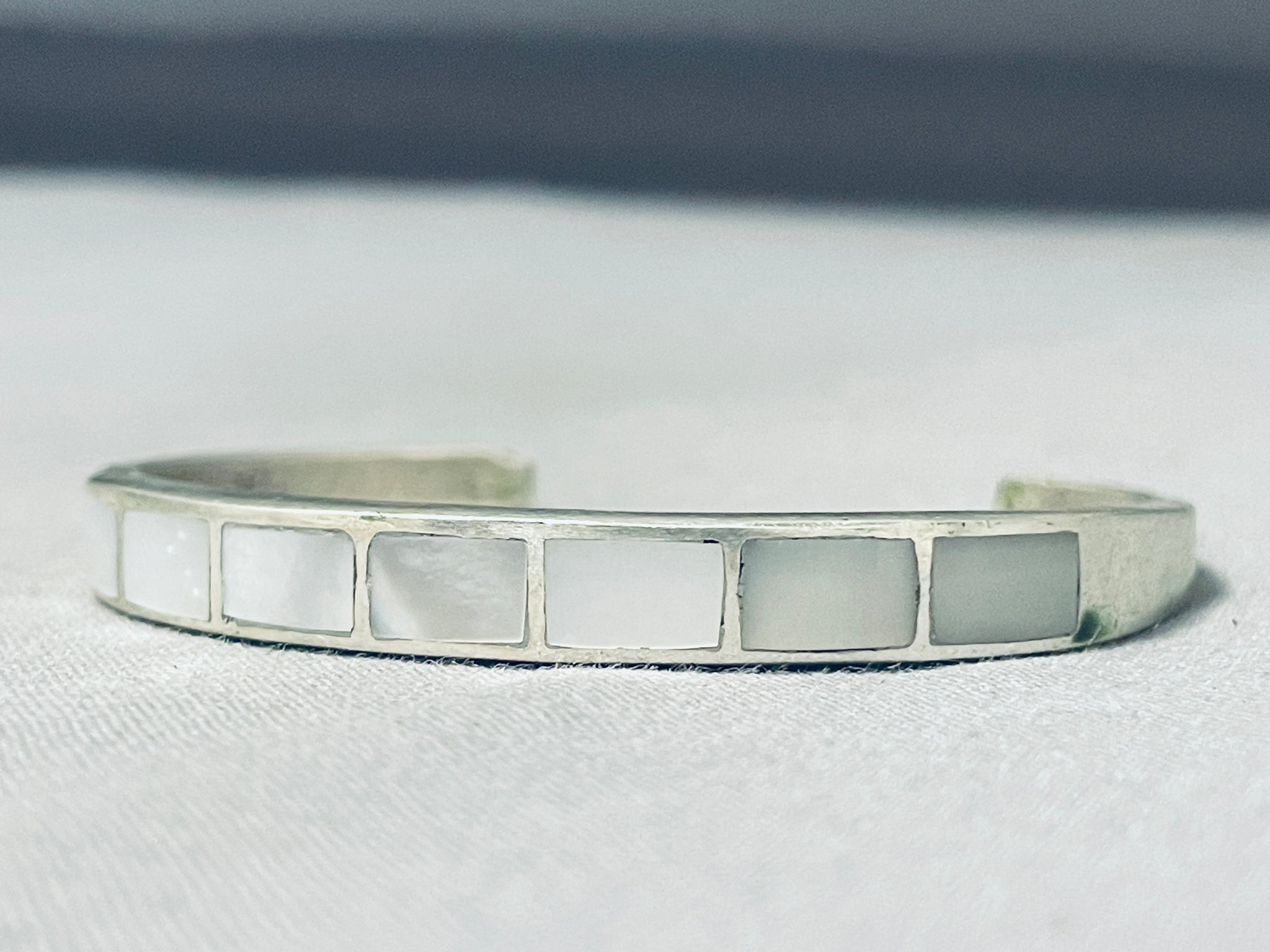 Lovely Vintage Native American Navajo Mother Of Pearl Inlay Sterling Silver Bracelet