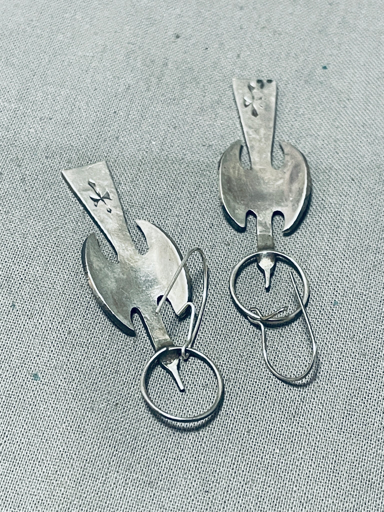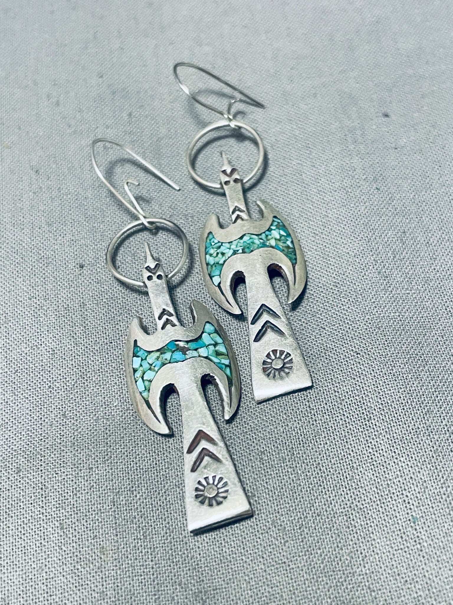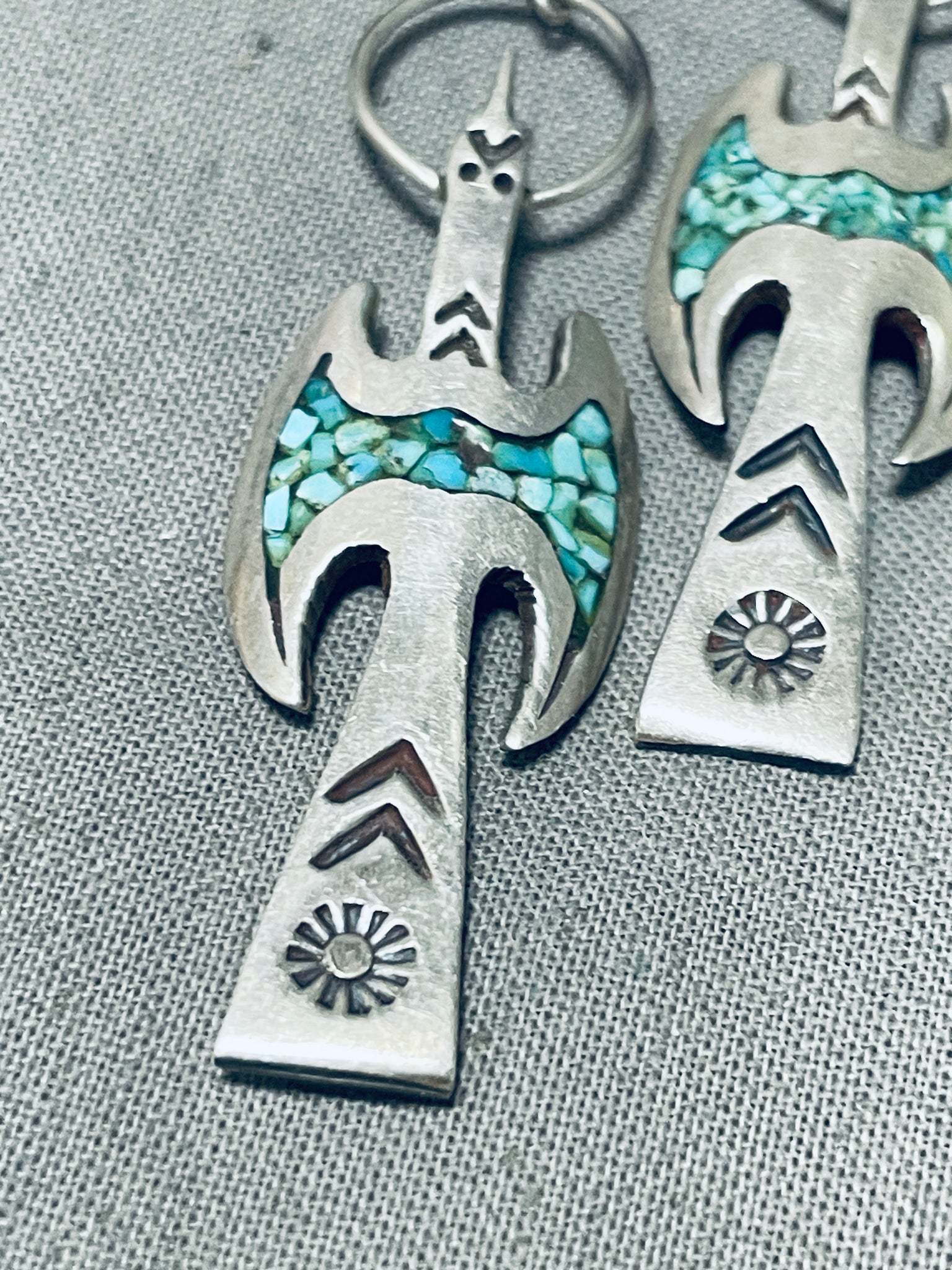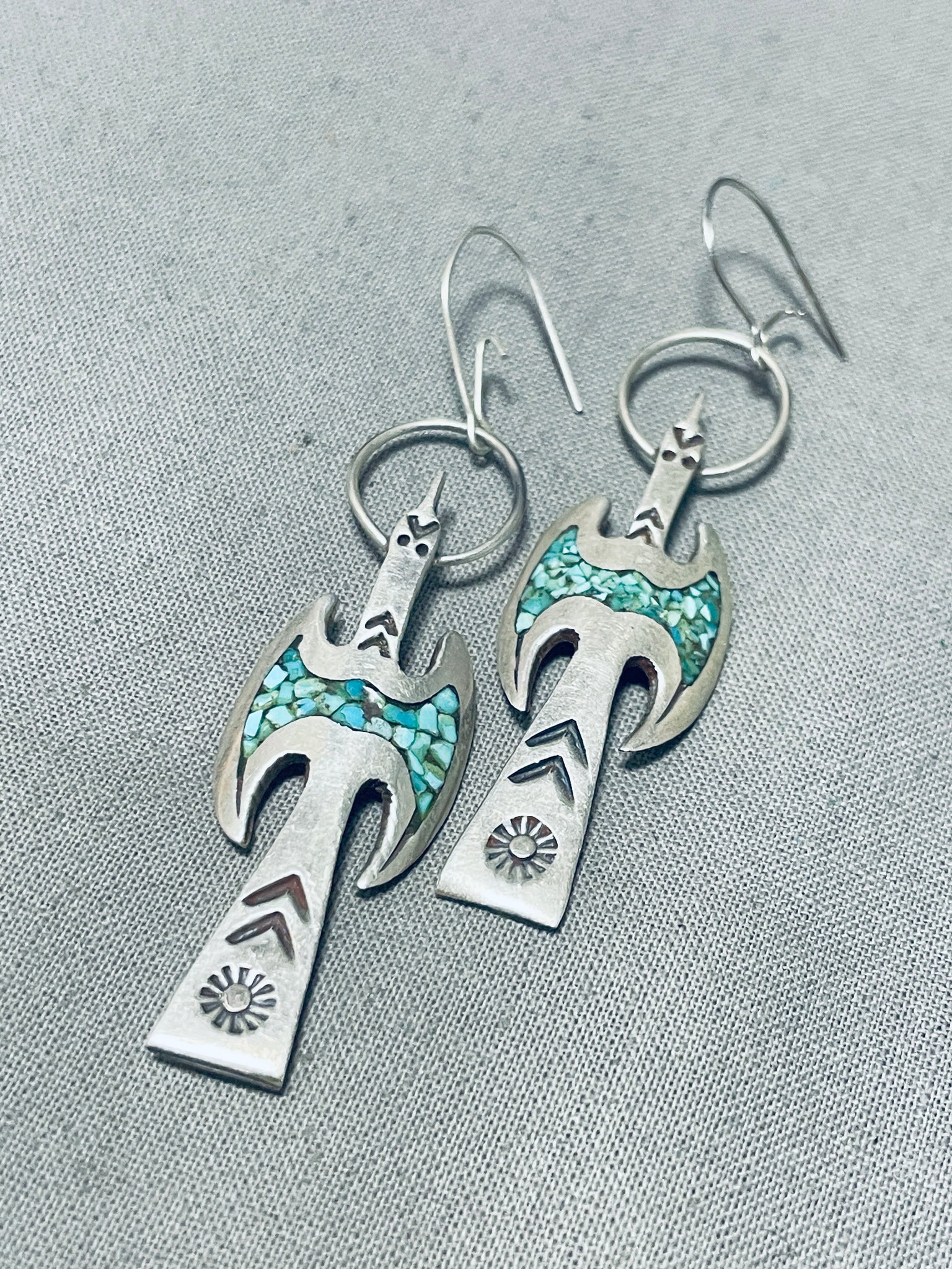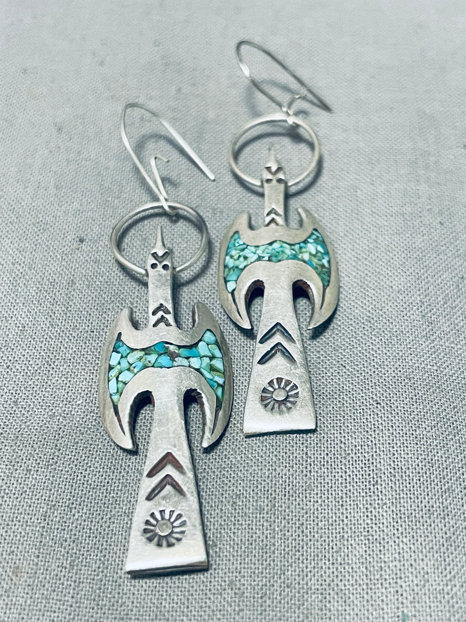 Lovely Vintage Native American Navajo Turquoise Chip Inlay Sterling Silver Waterbird Earrings
