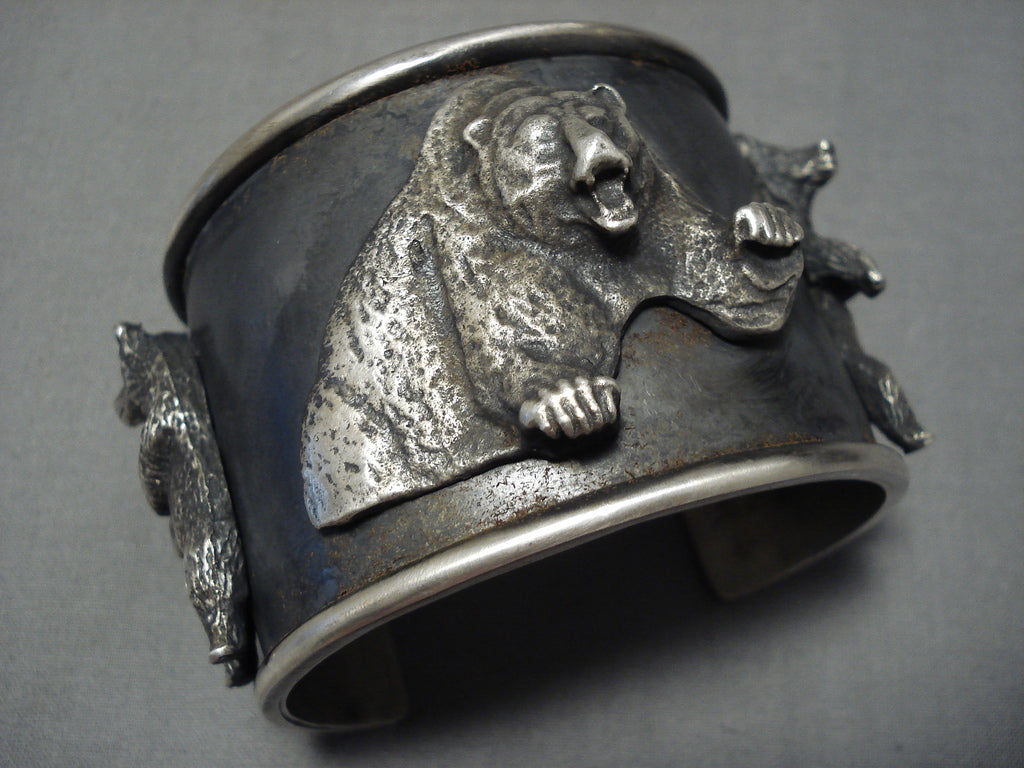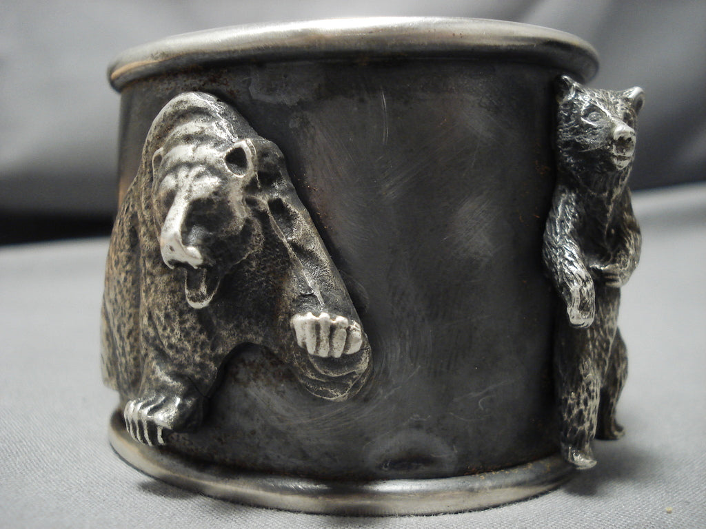 Magnificent Huge Bear Cuff Sterling Silver Bracelet Old