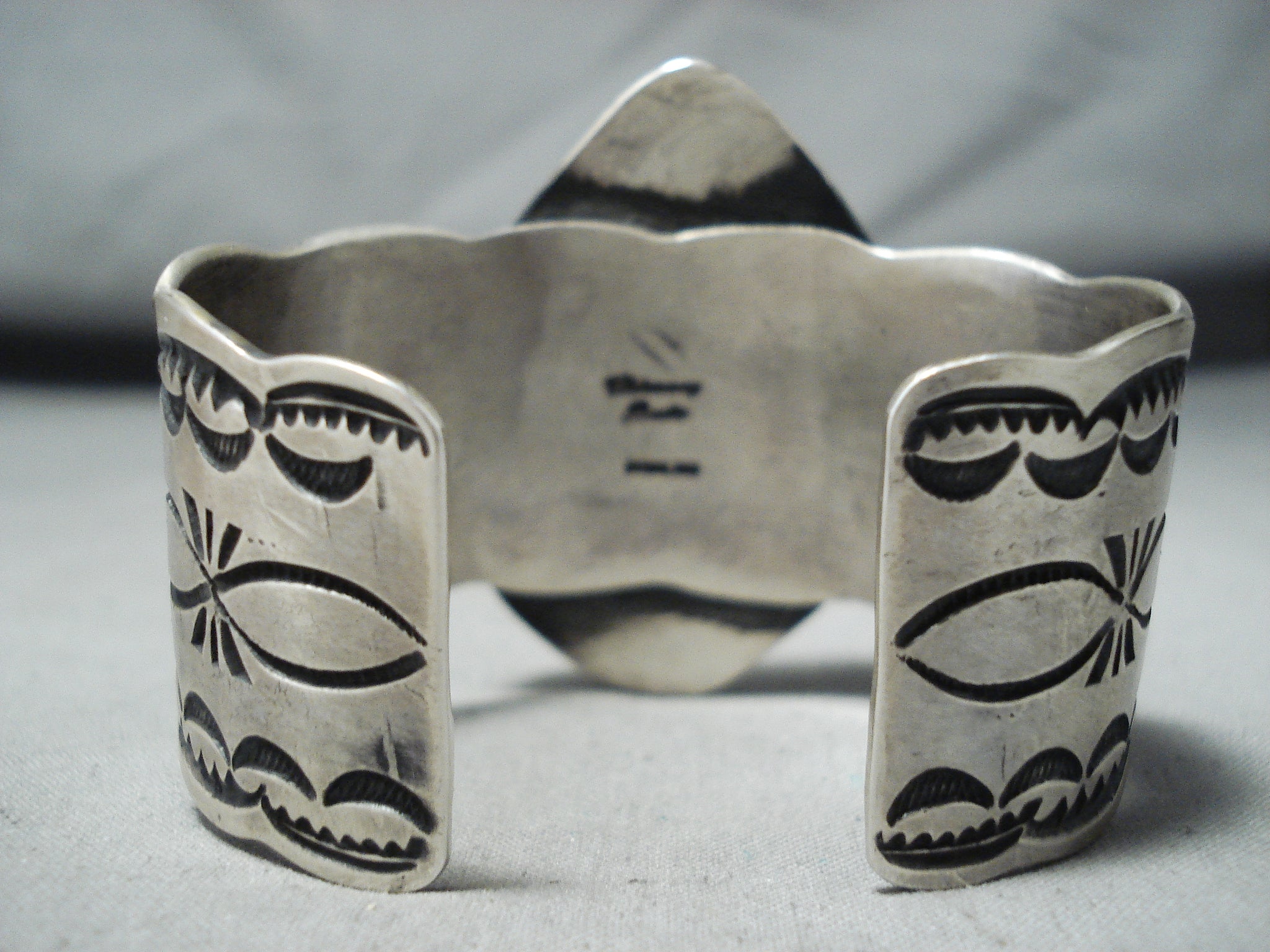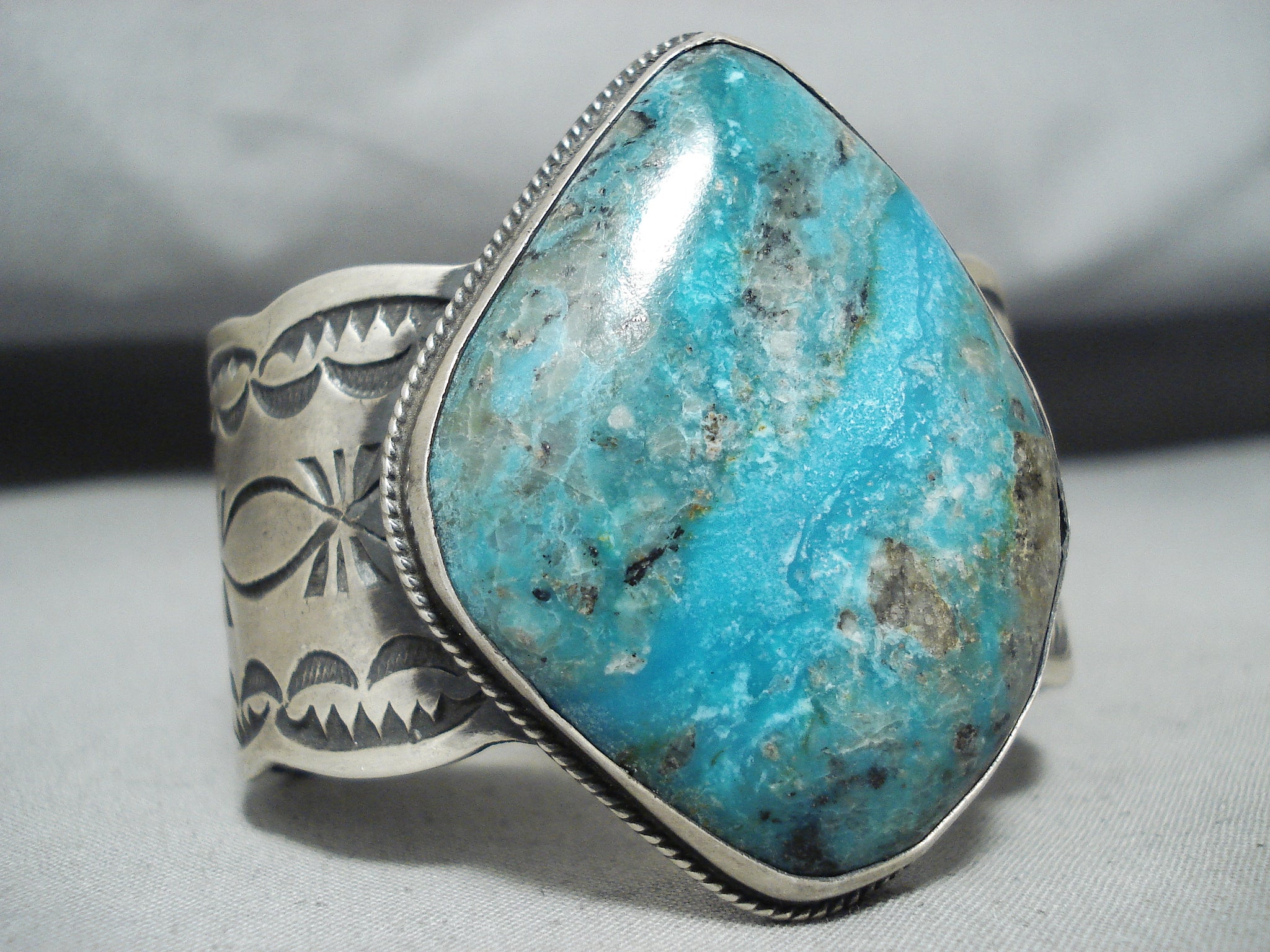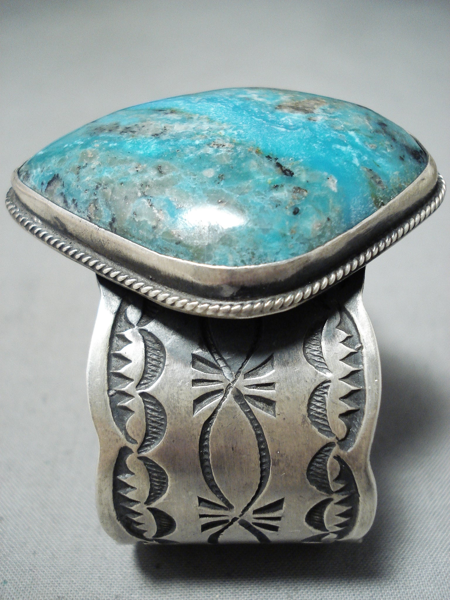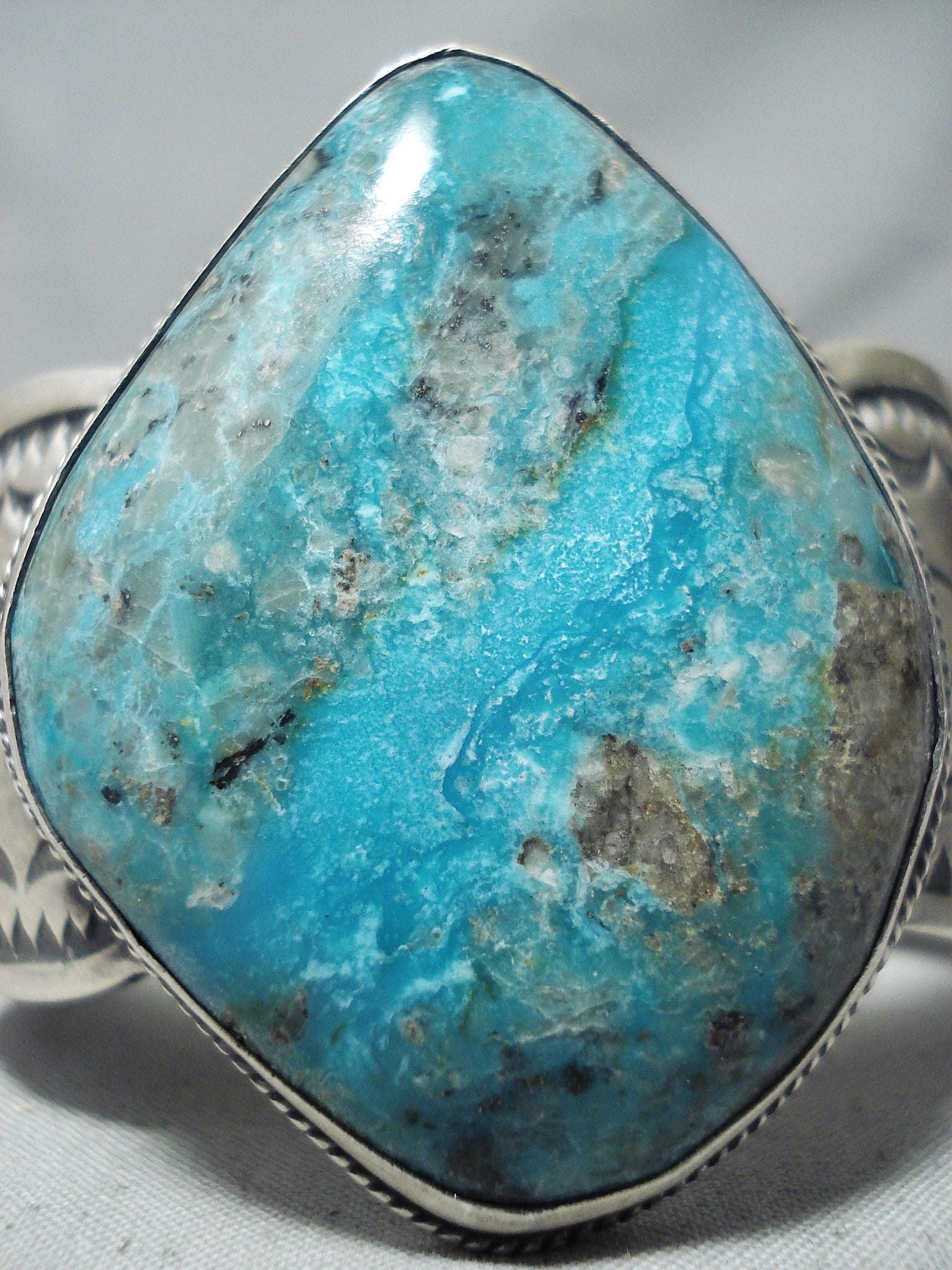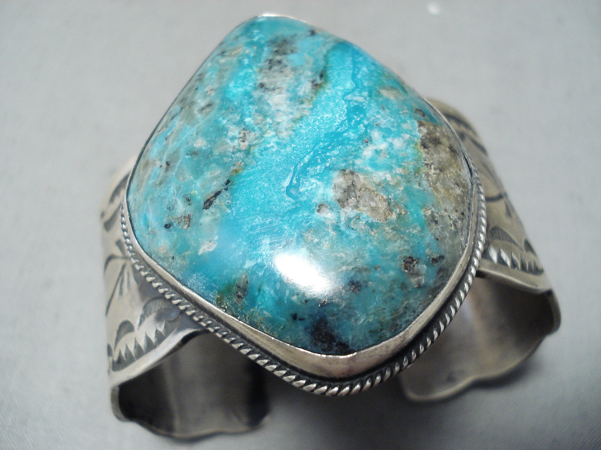 Magnificent Native American Navajo Pilot Mountain Turquoise Sterling Silver Bracelet Signed