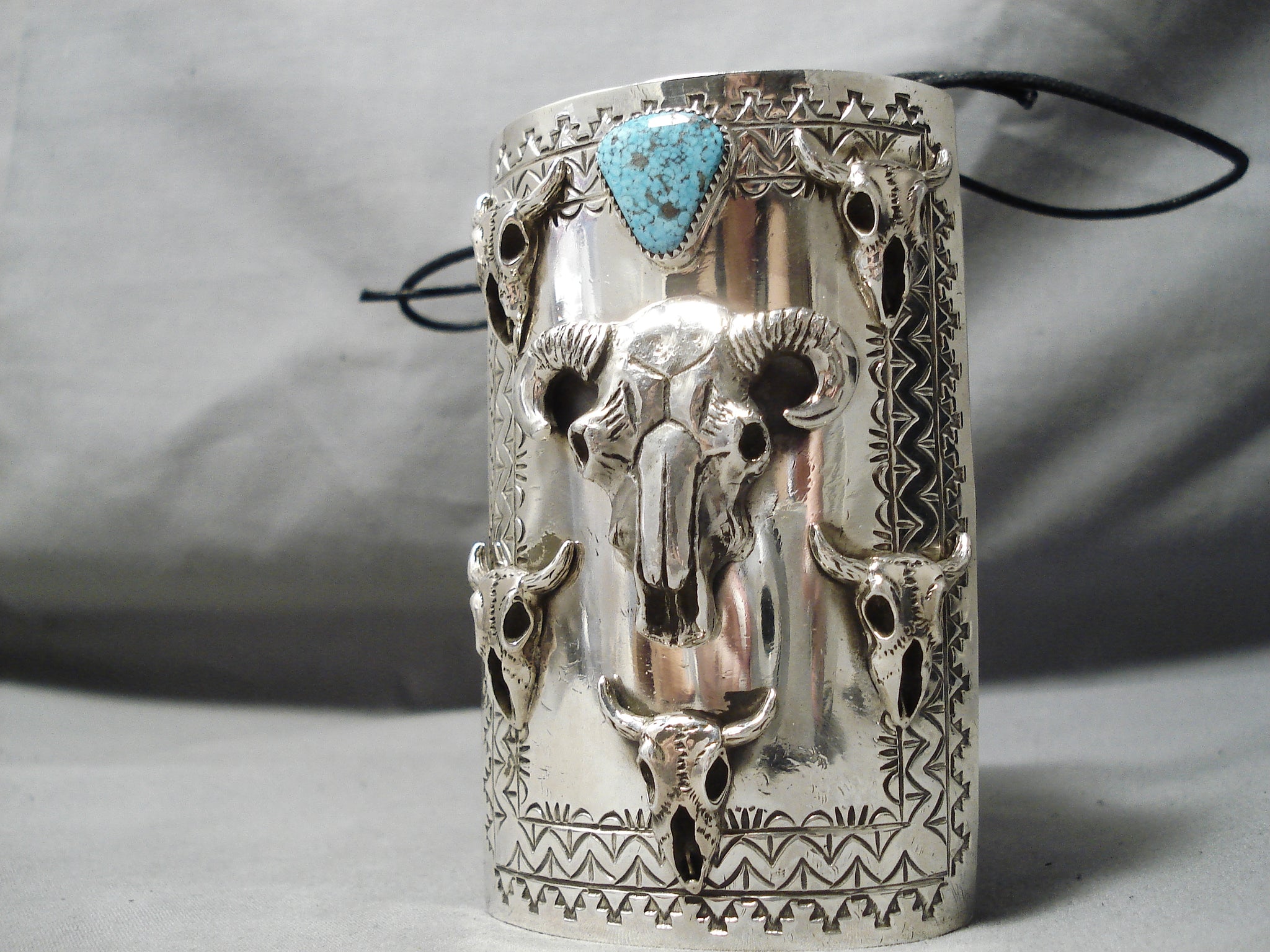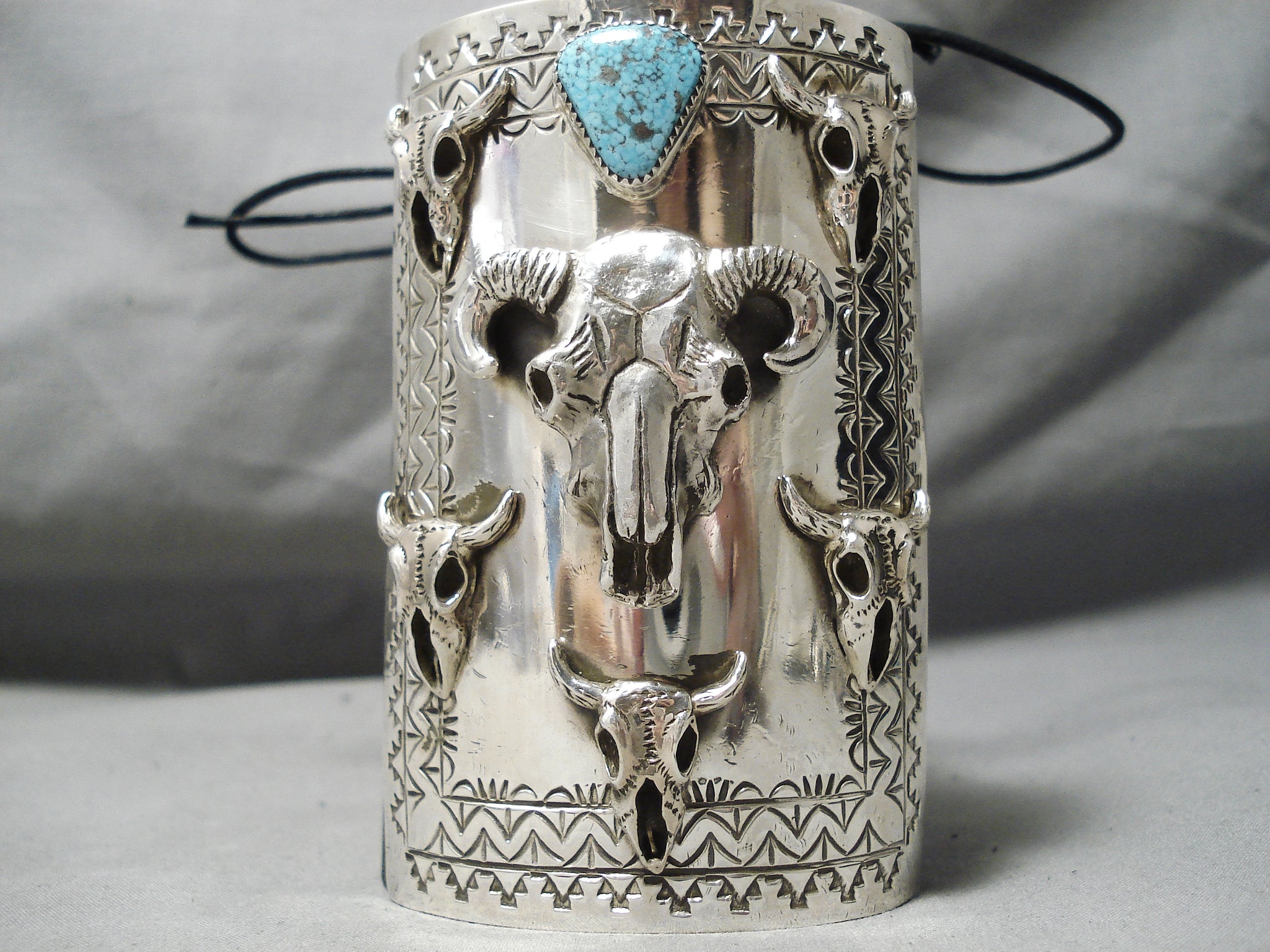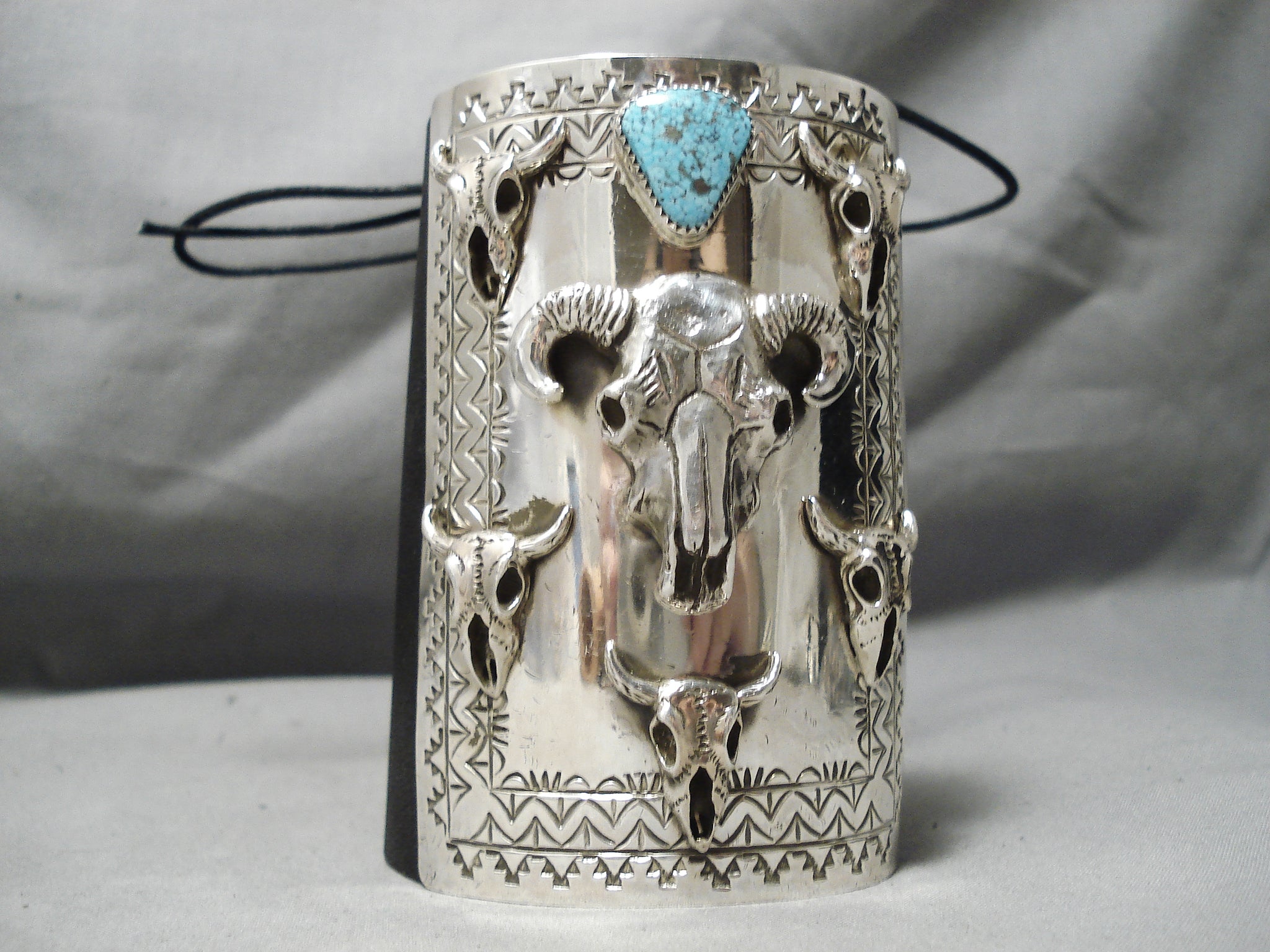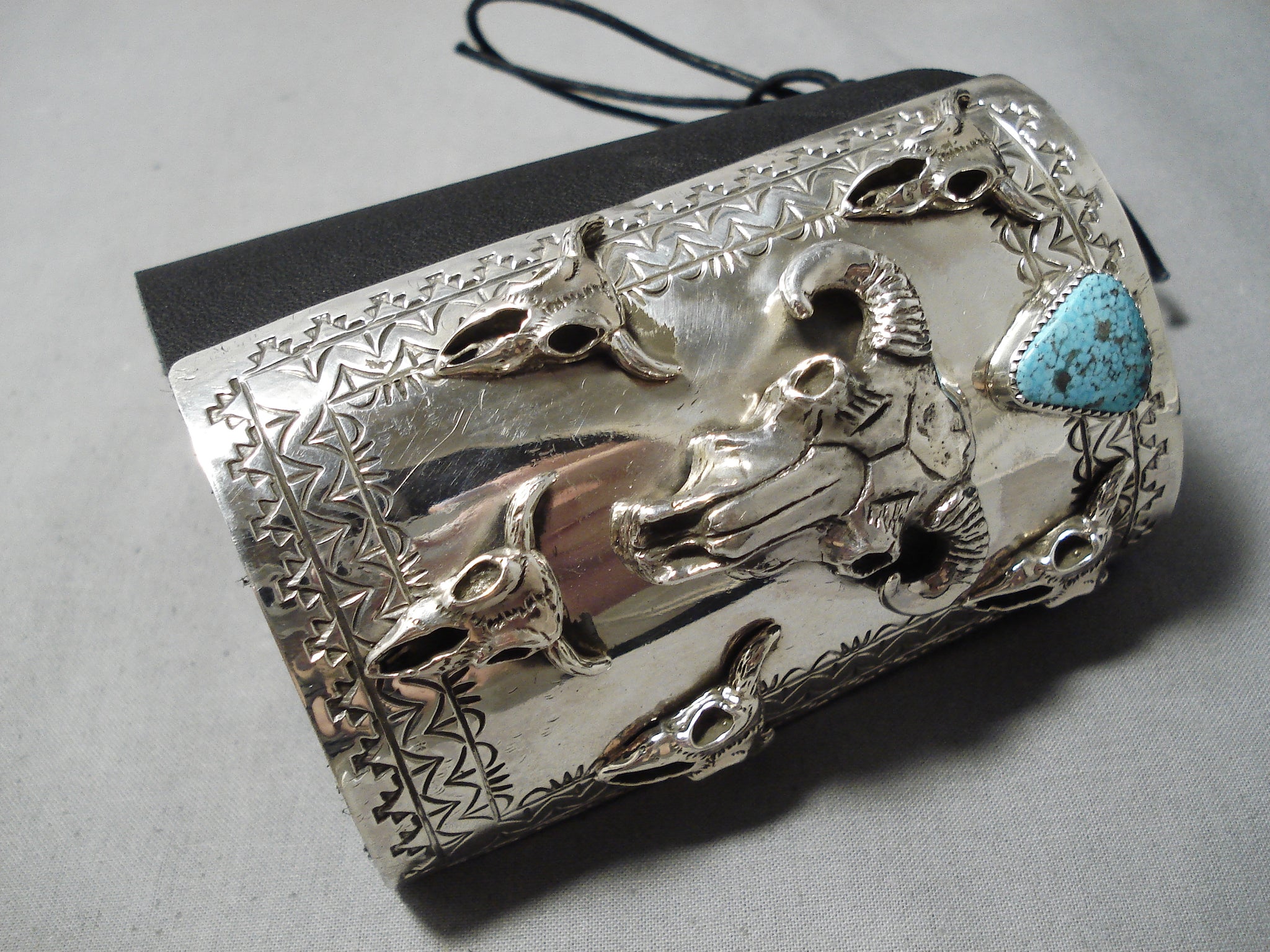 Magnificent Native American Navajo Spiderweb Turquoise Sterling Silver Bowguard