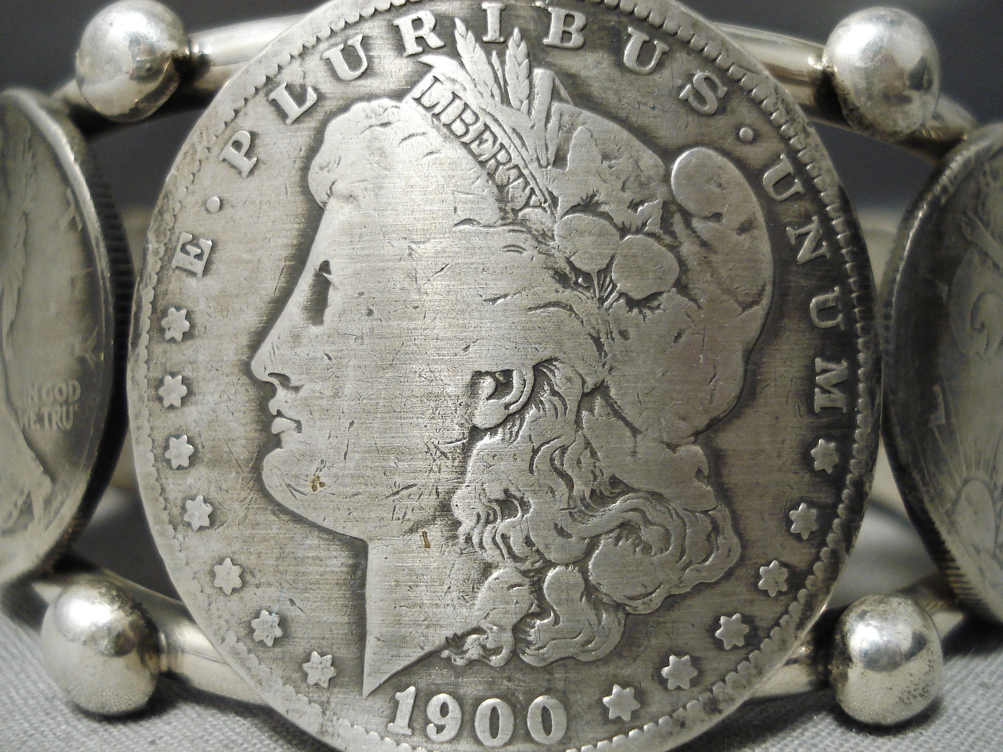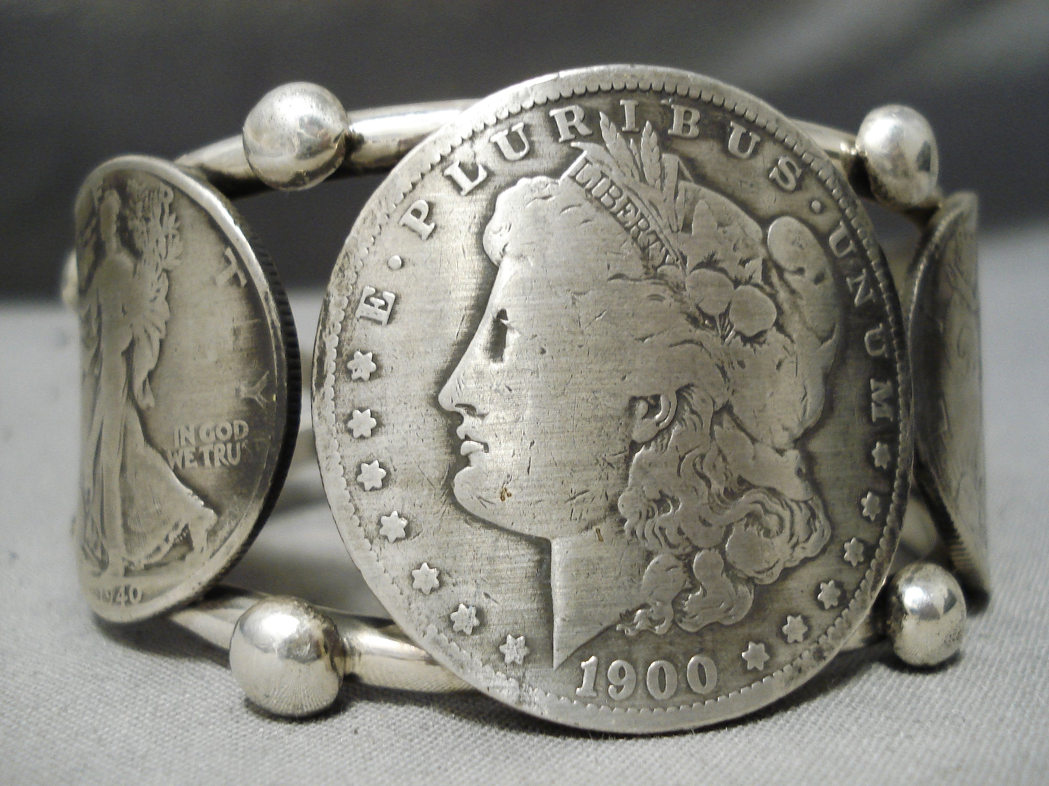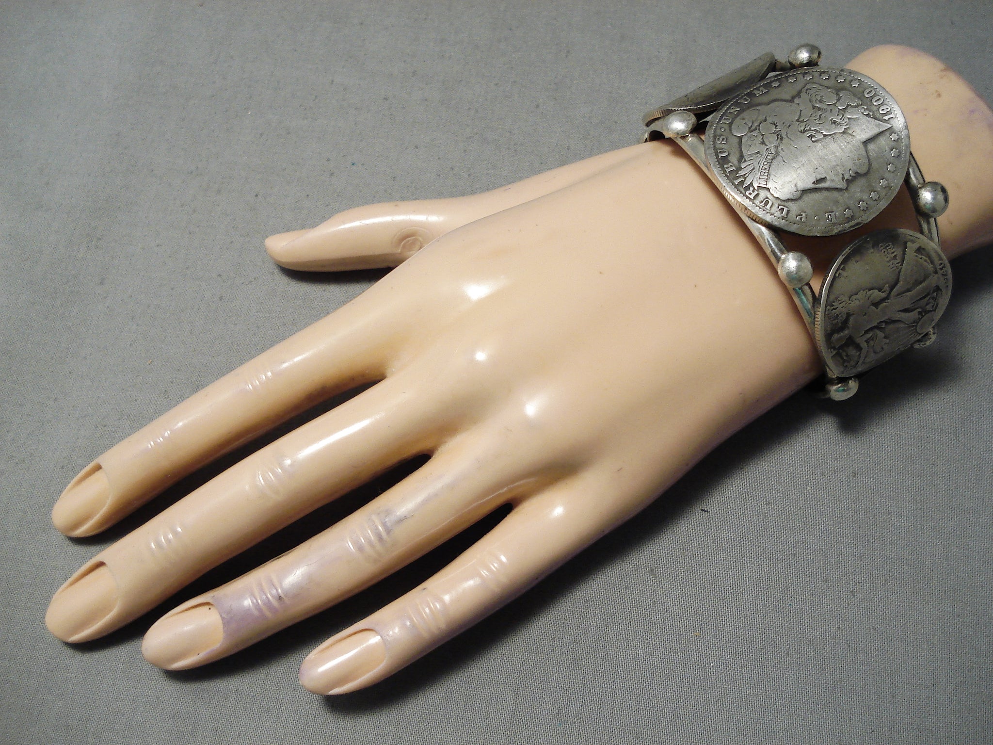 Magnificent San Felipe Sterling Silver Coins Bracelet Native American