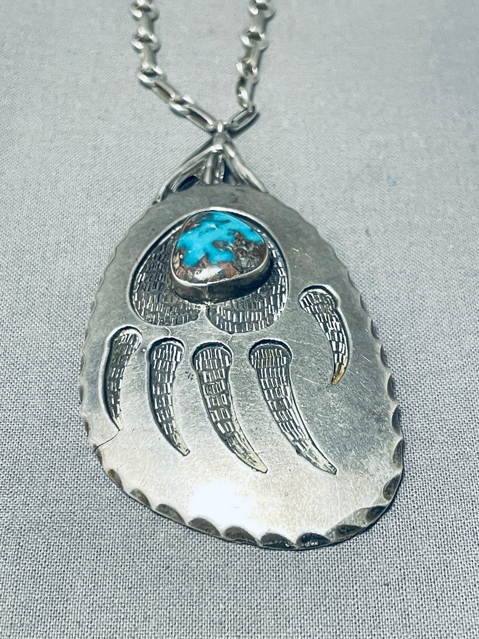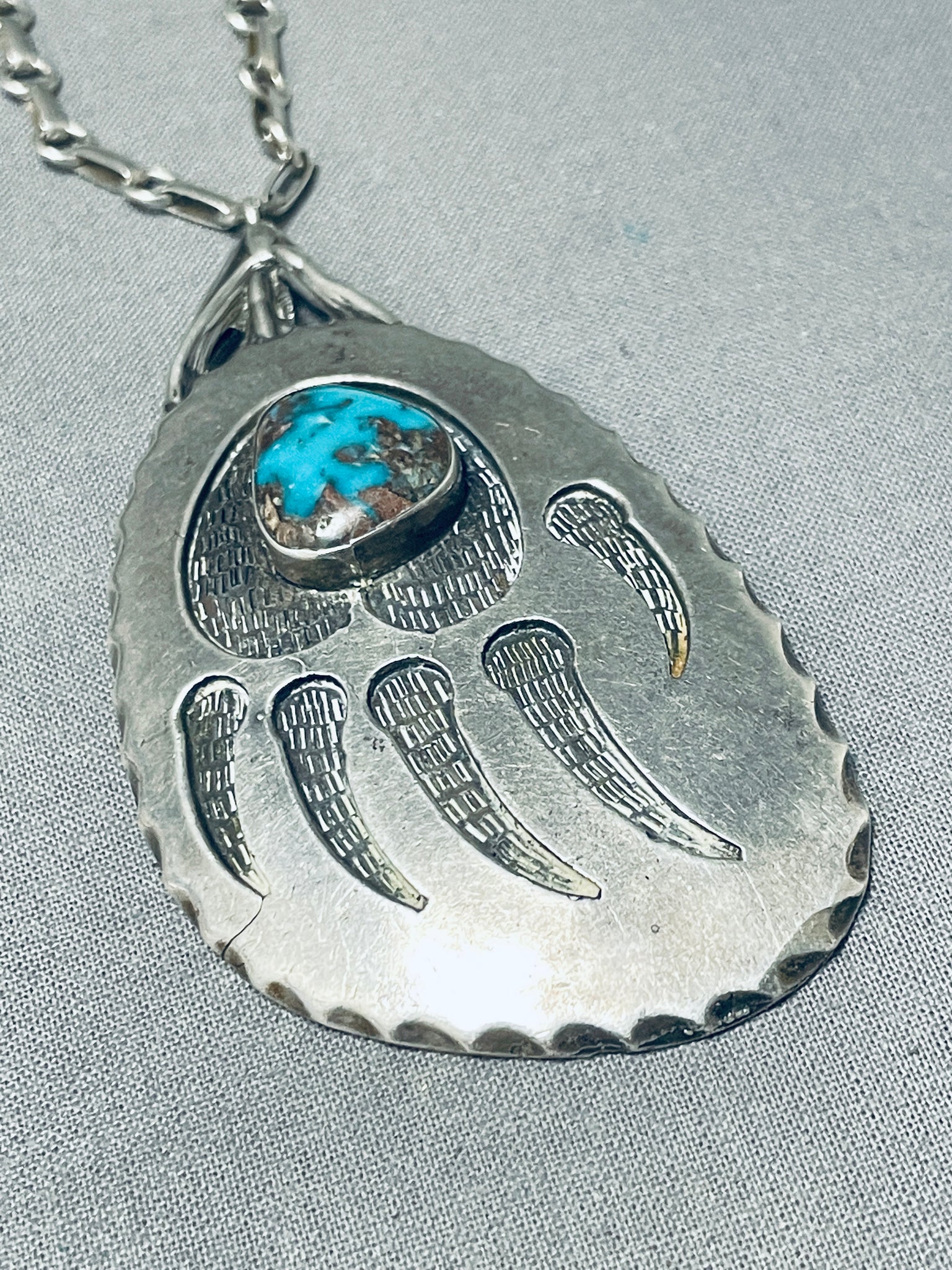 Magnificent Vintage Native American Hopi Bisbee Turquoise Sterling Silver Necklace
